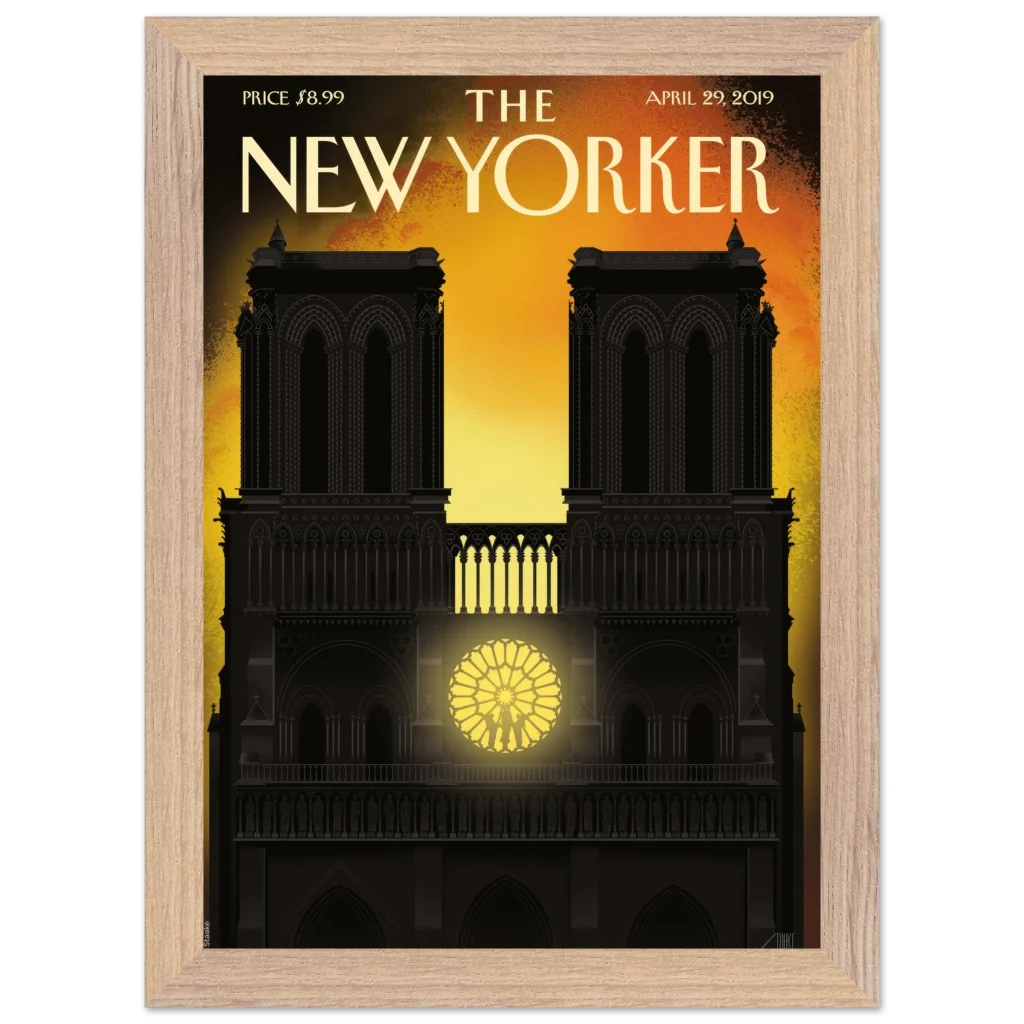 Parisian Glow: Notre Dame Rose Window Art Print – Elegant Architecture Wall Art Premium Wooden Framed Poster