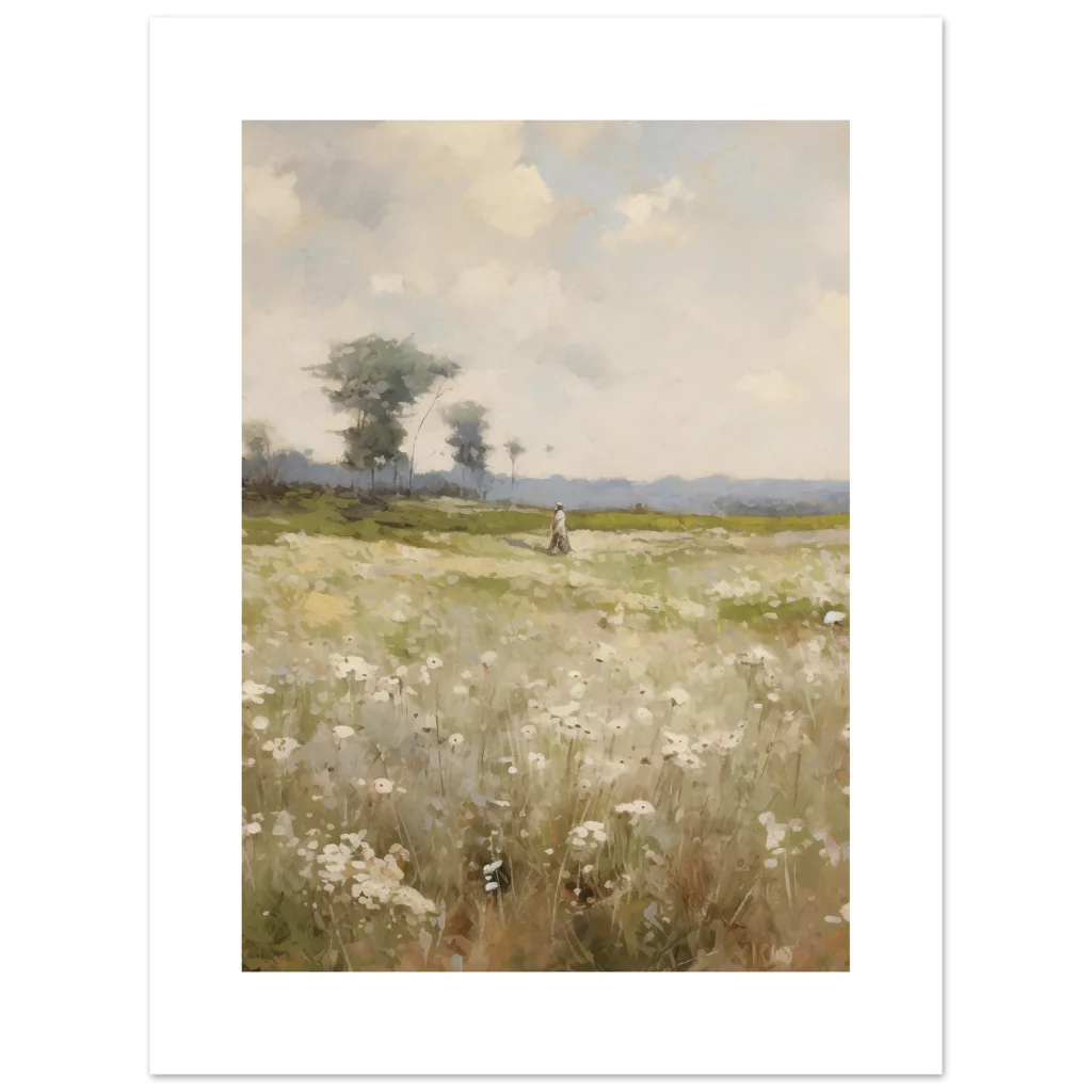 Pastoral Meadow Stroll Art Print: Premium Matte Paper Poster in Multiple Sizes