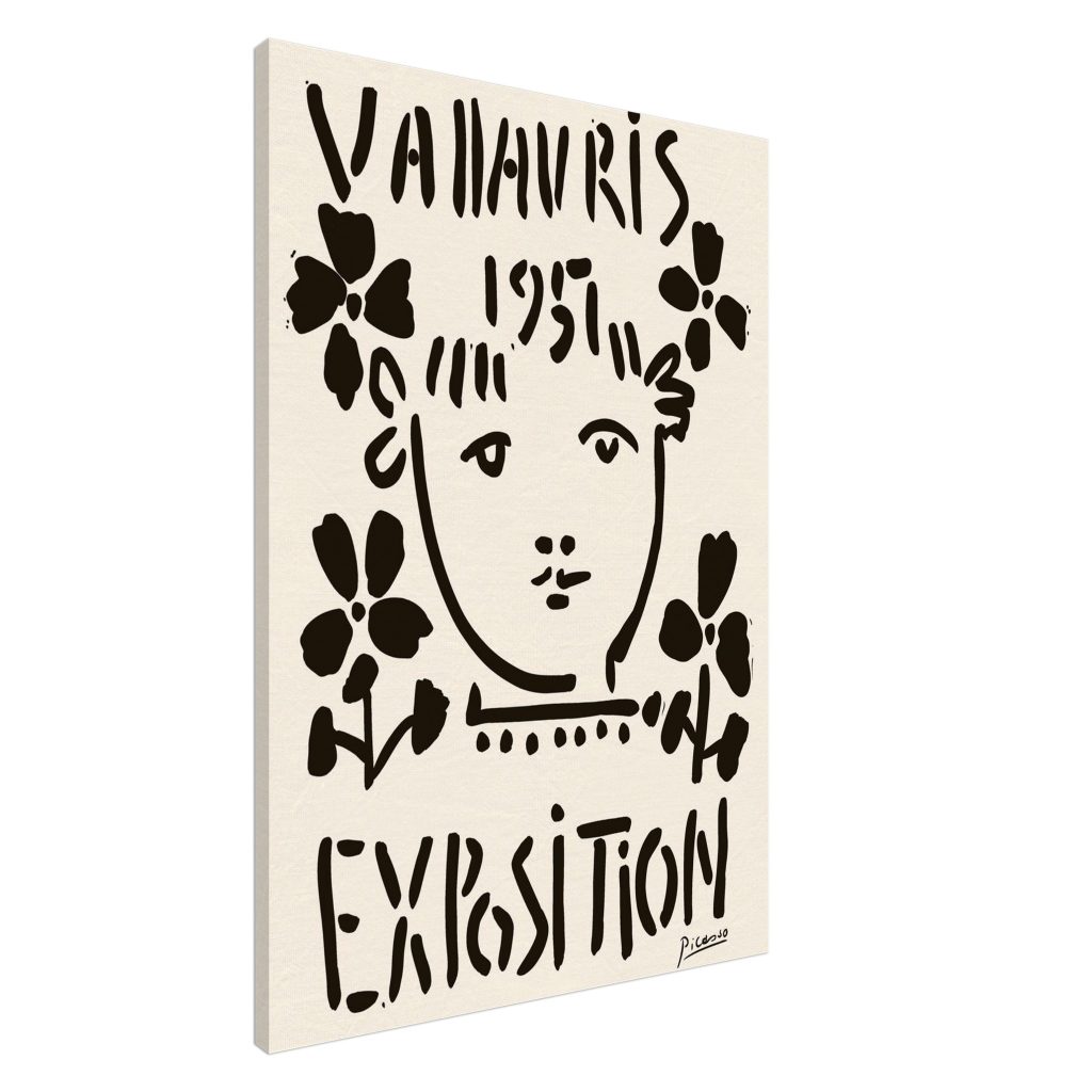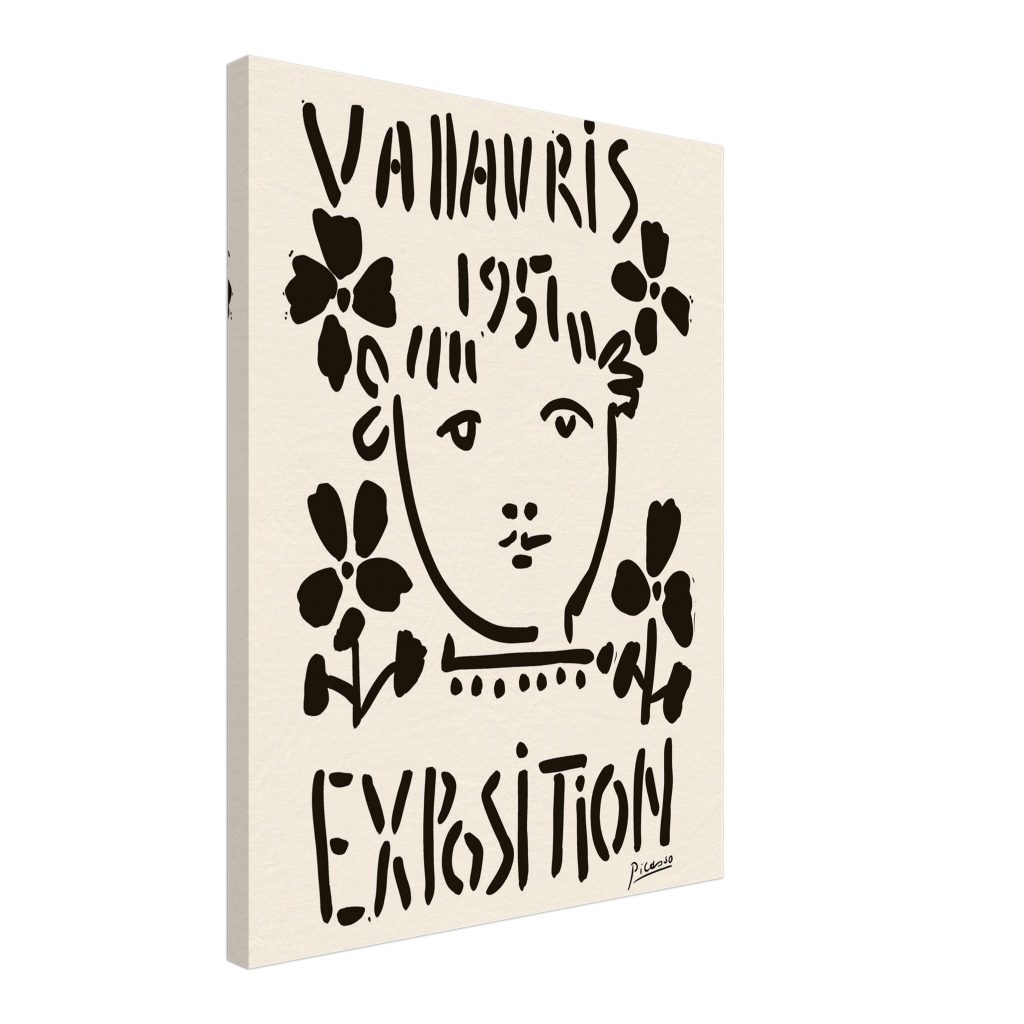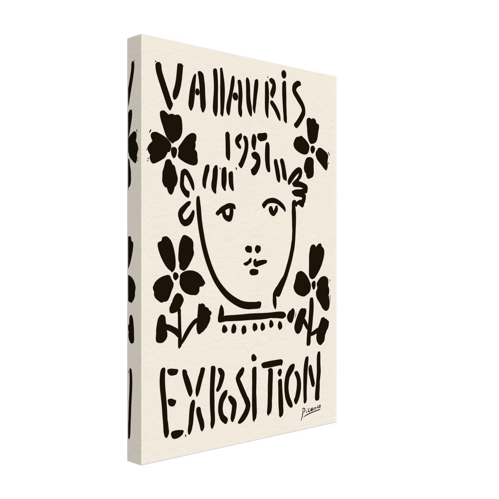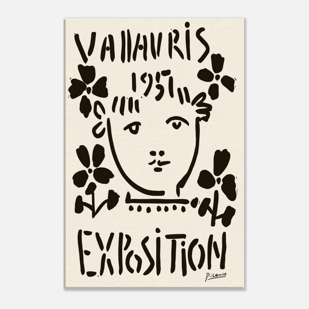 Immerse your space in the timeless charm of mid-century art with our Picasso-inspired Vallauris 1957 Exhibition Poster. This captivating black-on-cream print, featuring a whimsical face framed by stylized flowers and bold typography, brings a touch of artistic heritage and playful elegance to any room. Crafted on a premium canvas, the enhanced texture brings this iconic design to life, creating a truly immersive and sophisticated art experience that celebrates artistic mastery.