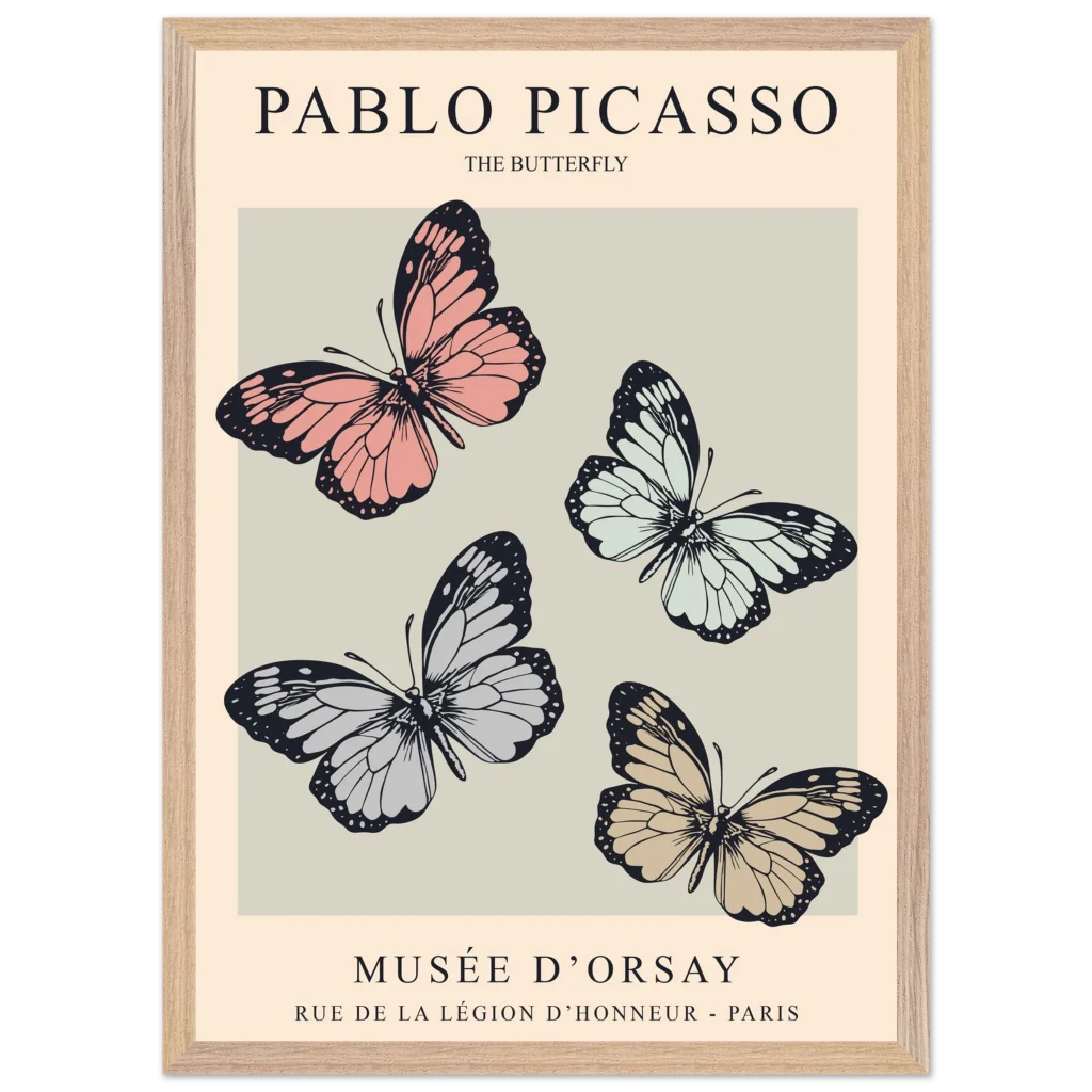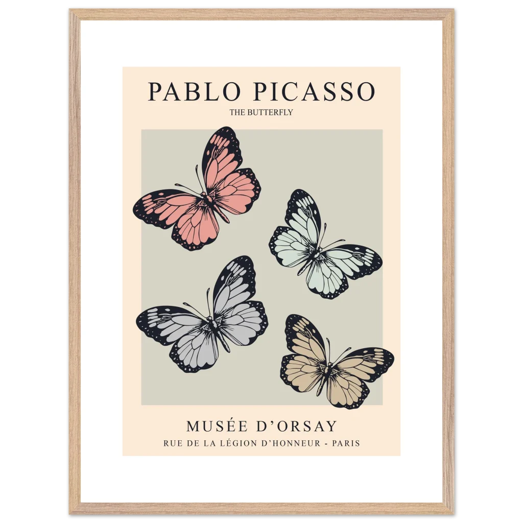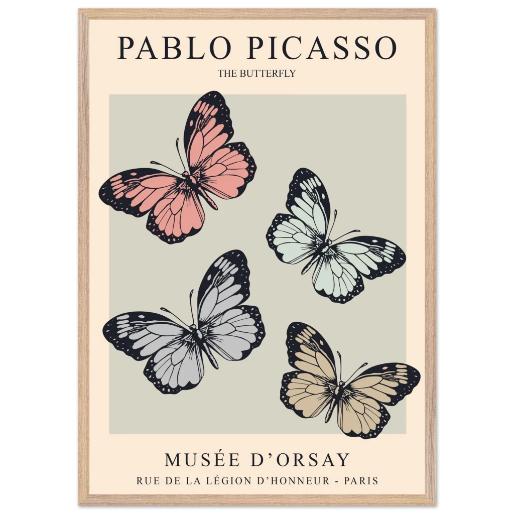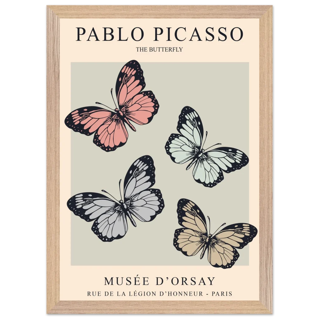Picasso’s The Butterfly – Elegant Line Art Print with Subtle Hues & Premium Wooden Frame