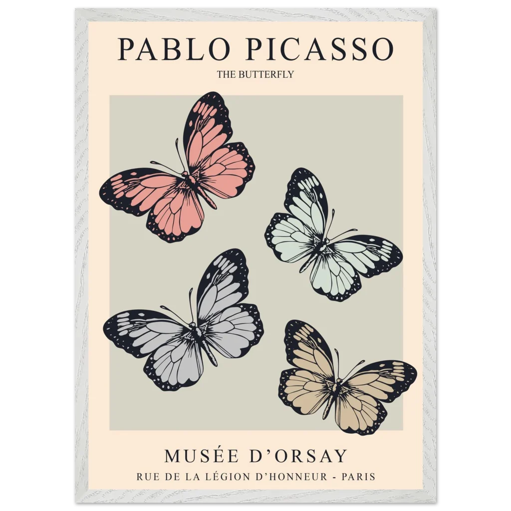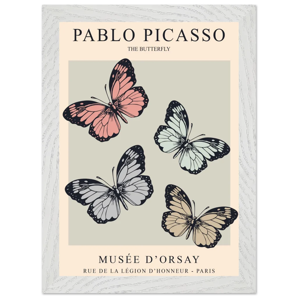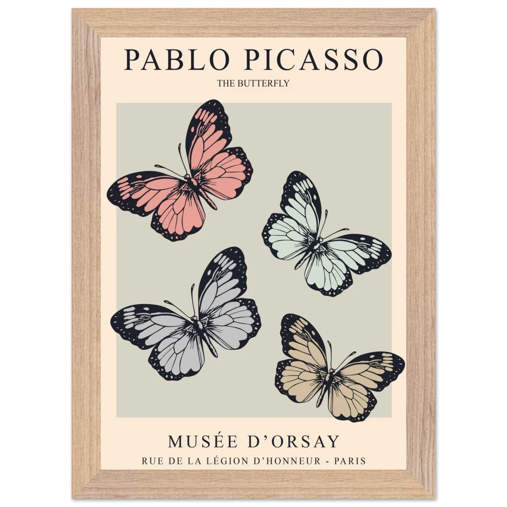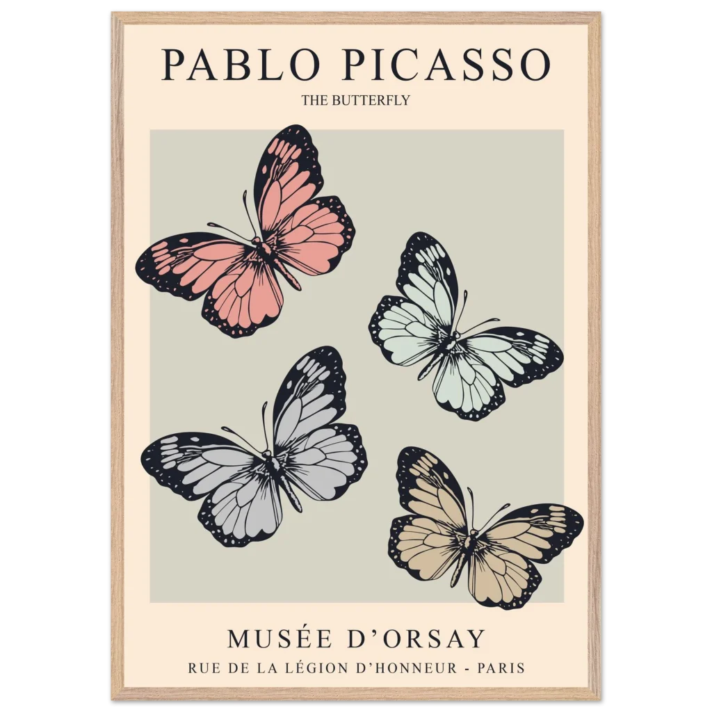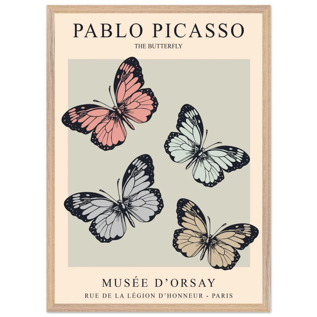 Picasso’s The Butterfly – Elegant Line Art Print with Subtle Hues & Premium Wooden Frame
