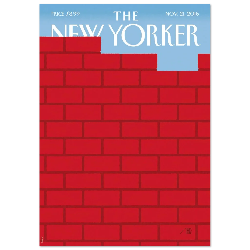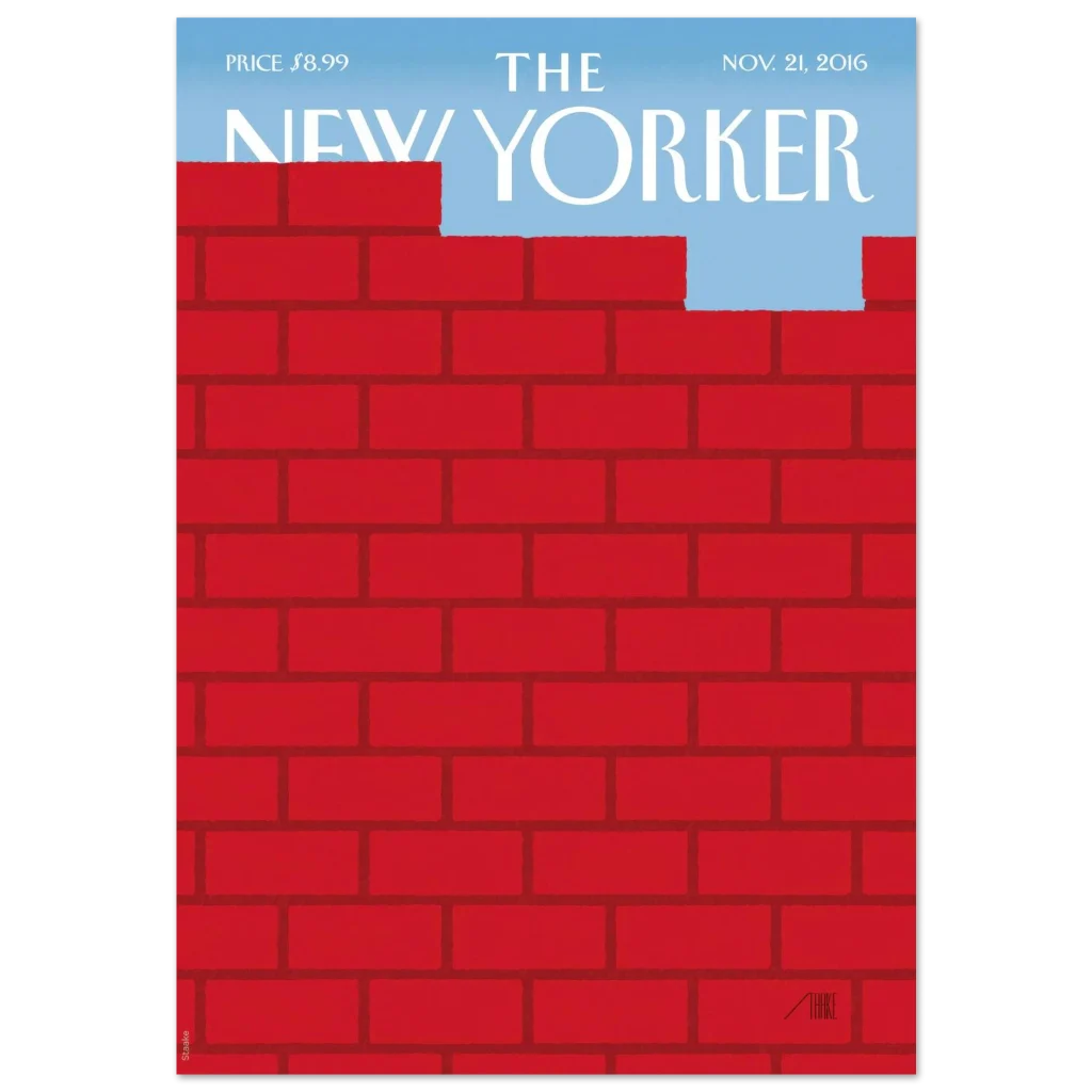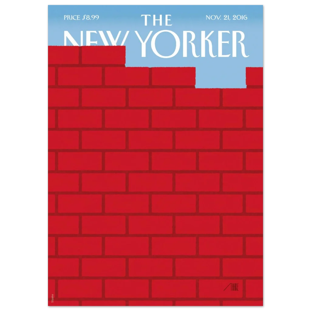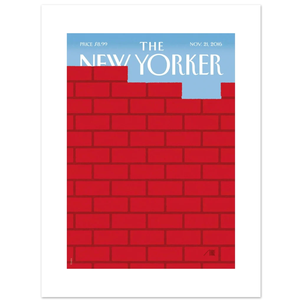Capture a moment of poignant reflection and hope with our ‘Red Brick Wall Freedom’ poster. This artwork, reminiscent of classic magazine covers, powerfully symbolizes overcoming barriers to reveal a serene blue sky. It’s a striking piece that sparks conversation and adds a layer of sophisticated narrative to any room.