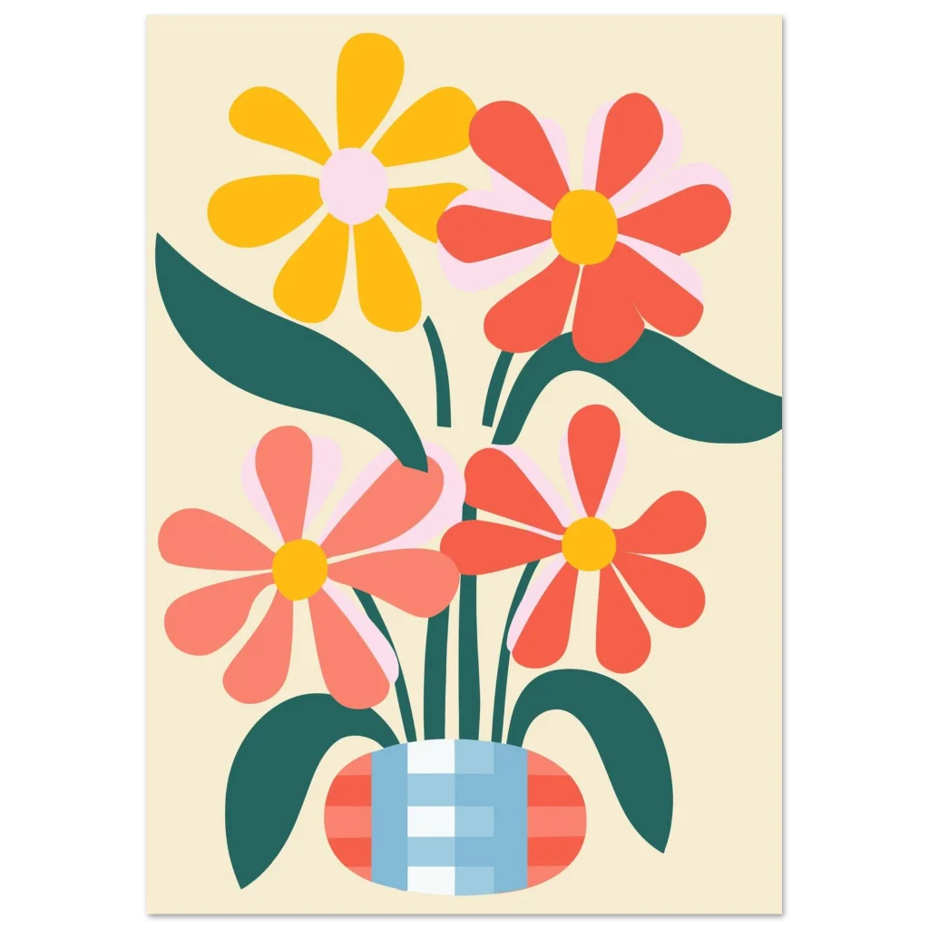 Retro Floral Bouquet Semi-Glossy Paper Poster – Vibrant Mid-Century Modern Art Print