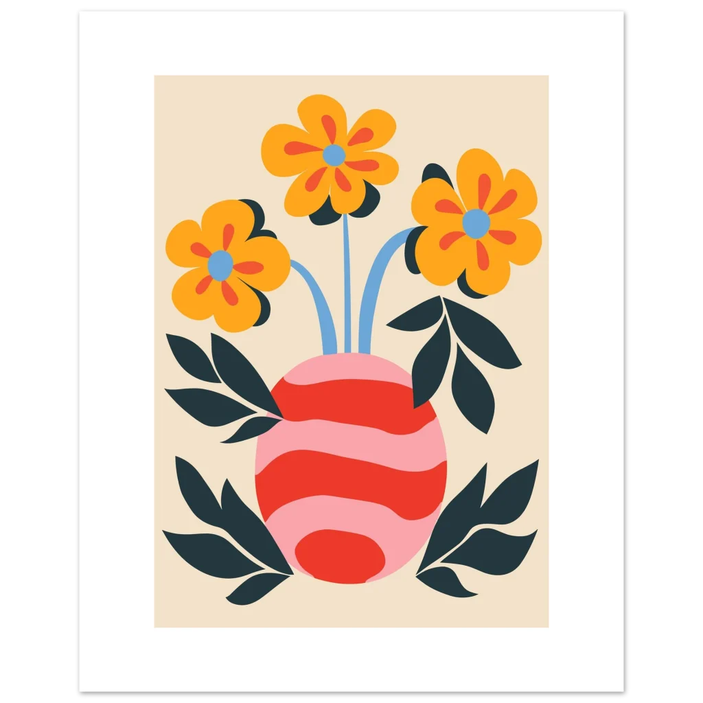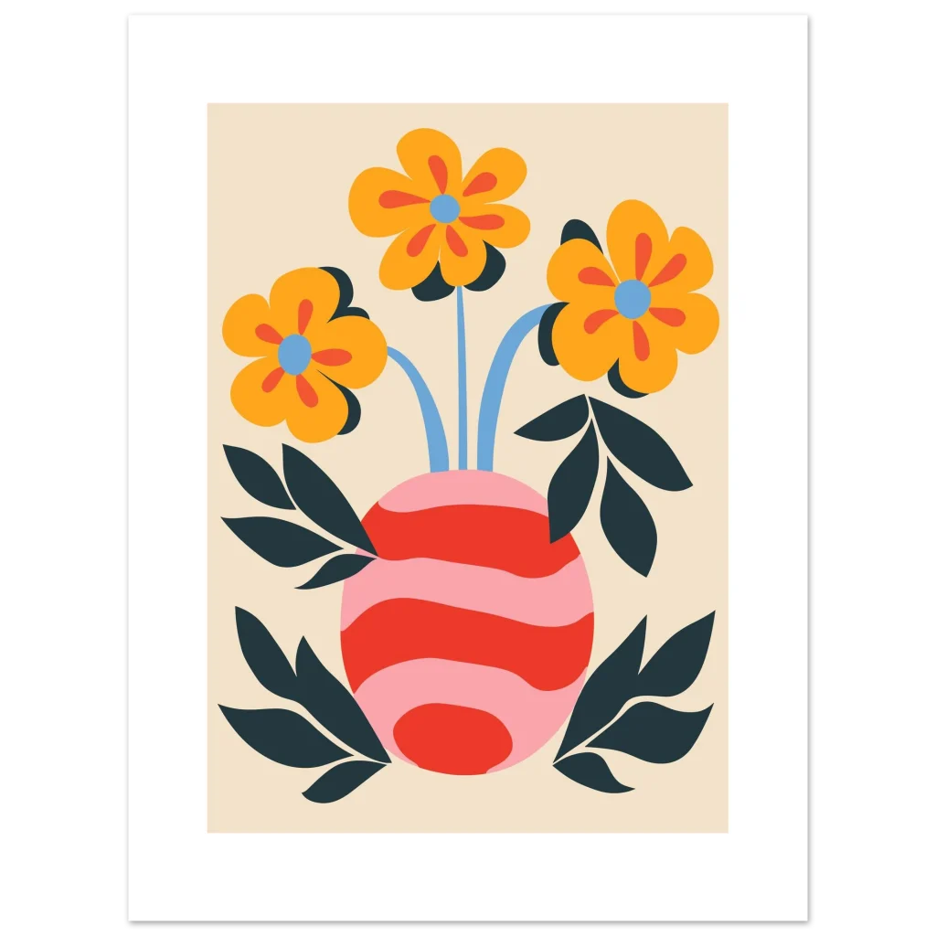 Retro Floral Vase Art Print – Classic Semi-Glossy Paper Poster in Your Choice of Size