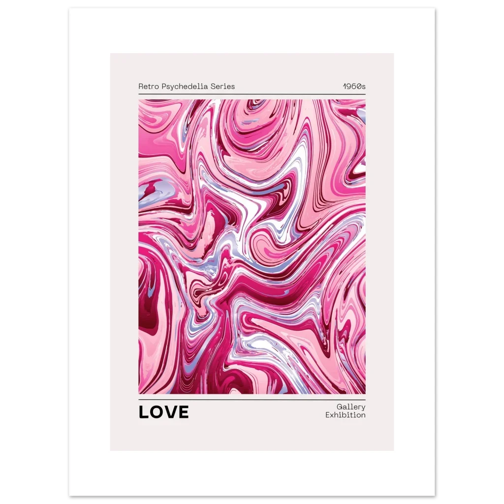 Retro Psychedelia ‘Love’ Poster: Abstract Pink Marble Art, Classic Semi-Glossy Paper