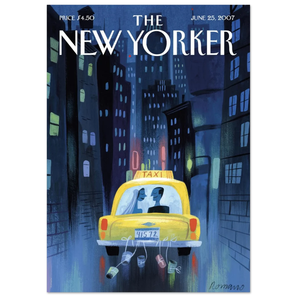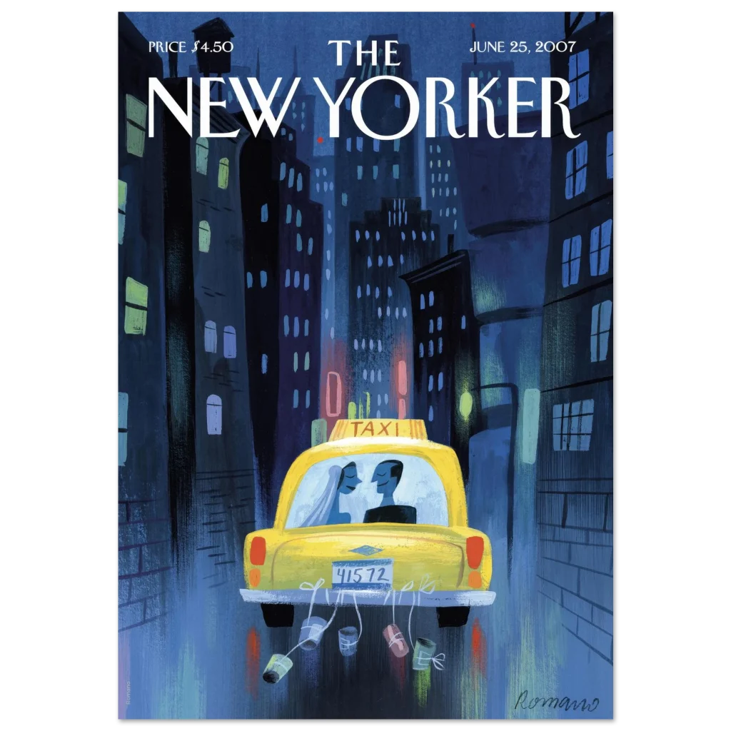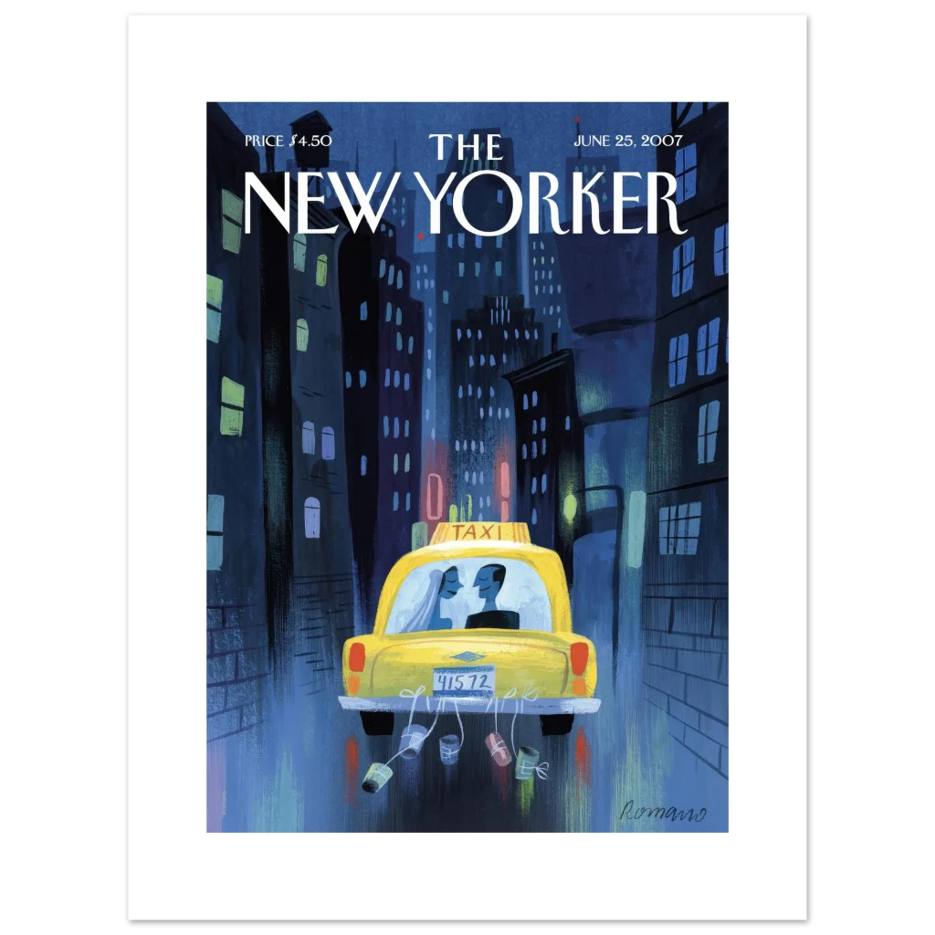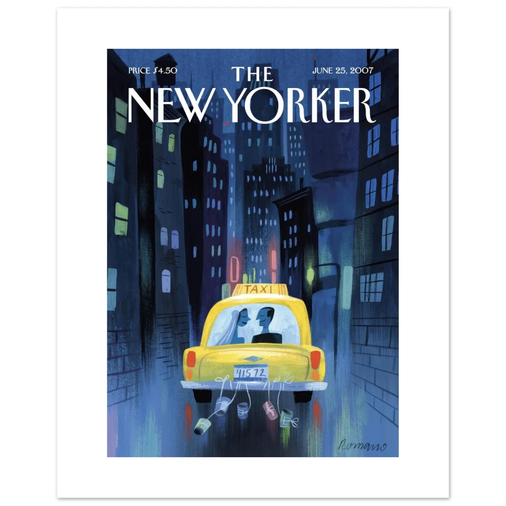 Capture the timeless romance of a New York City evening with this enchanting print. Featuring a newly wedded couple in a classic yellow taxi, amidst a backdrop of atmospheric city lights, this poster evokes the magic of urban love stories. It’s an ideal piece for romantics, city dwellers, and anyone who cherishes moments of quiet intimacy in a bustling world.