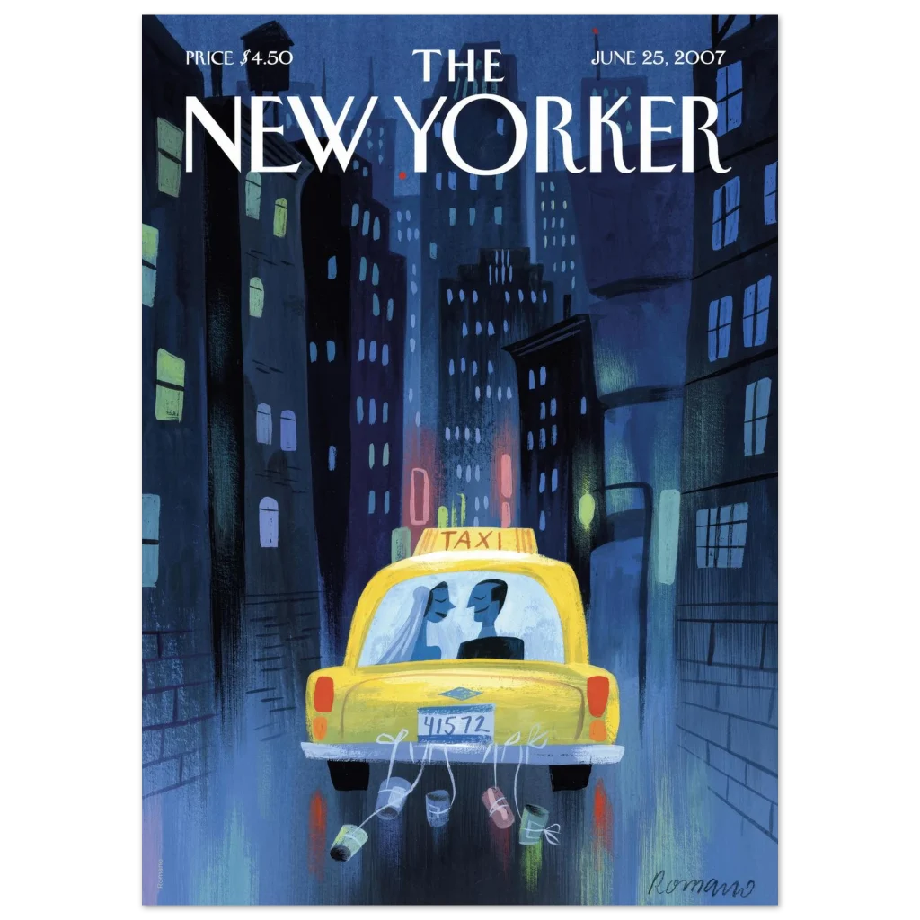Romantic NYC Wedding Taxi Night Scene Premium Matte Paper Poster
