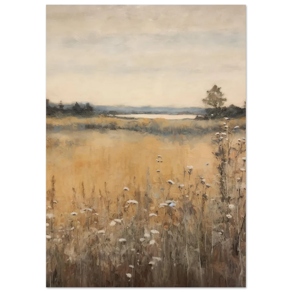 Capture the serene beauty of a peaceful autumn landscape with our ‘Rustic Autumn Field’ premium matte paper poster. This impressionistic artwork brings the warmth of golden fields and the quiet calm of nature into your home or office, evoking a sense of tranquility and timeless charm. Its muted palette and artistic brushstrokes make it a perfect statement piece for any decor.