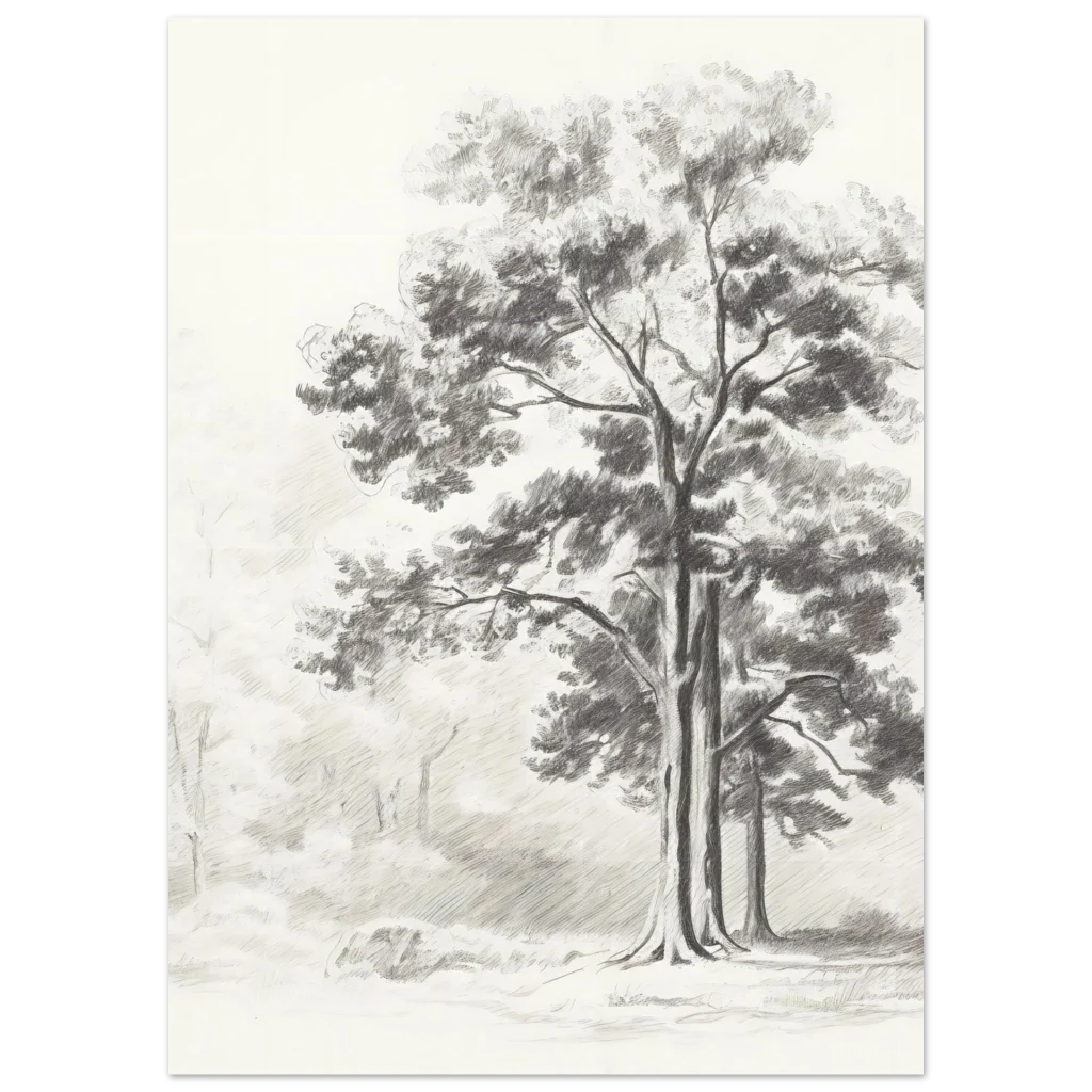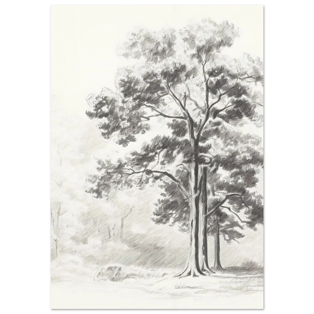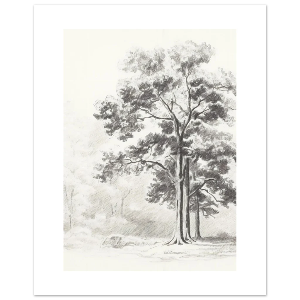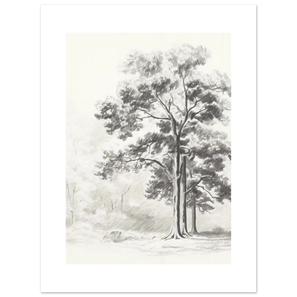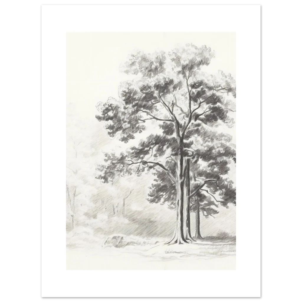 Bring the tranquility of nature indoors with our Rustic Forest Sketch poster. This exquisite piece captures the serene beauty of a peaceful forest with delicate pencil strokes and a timeless, monochrome palette. Perfect for adding a touch of rustic elegance and calm to any room, it evokes the quiet majesty of ancient trees and sun-dappled clearings.