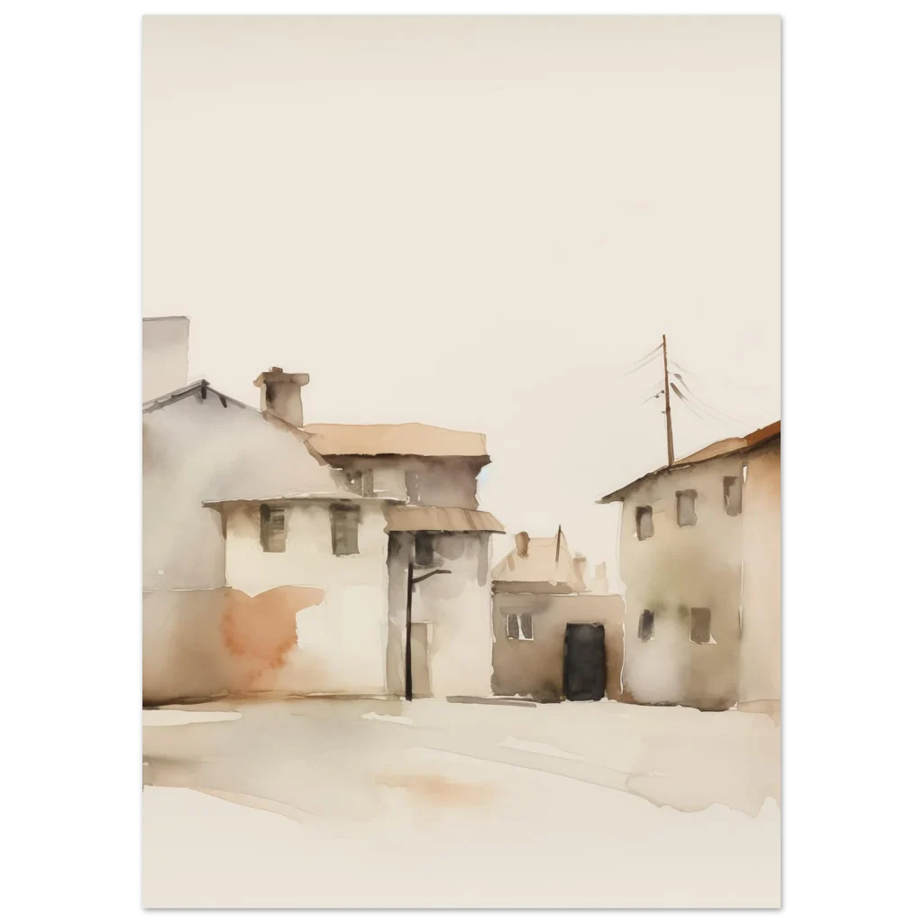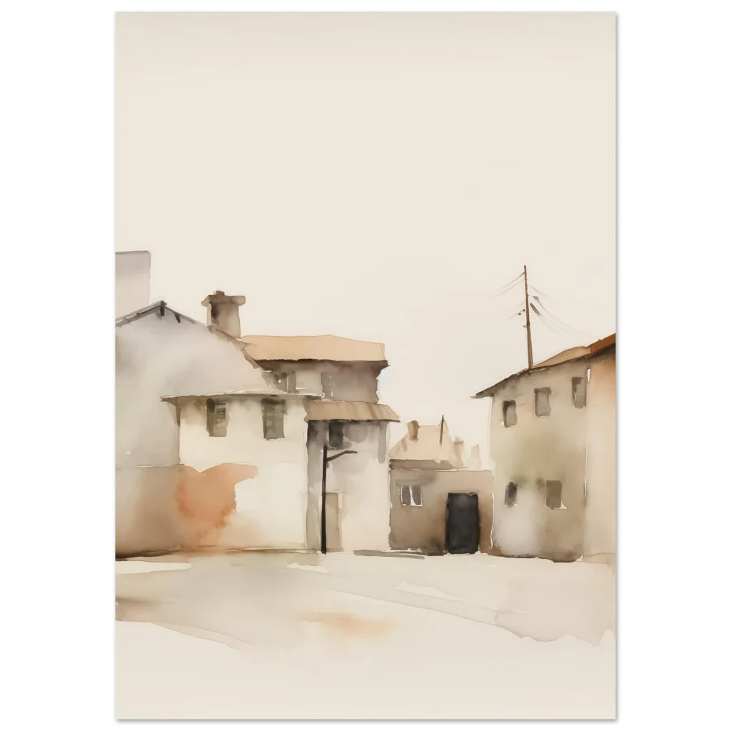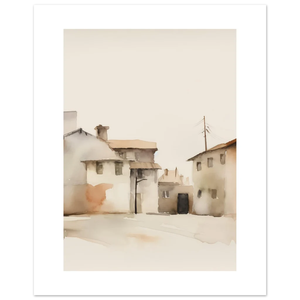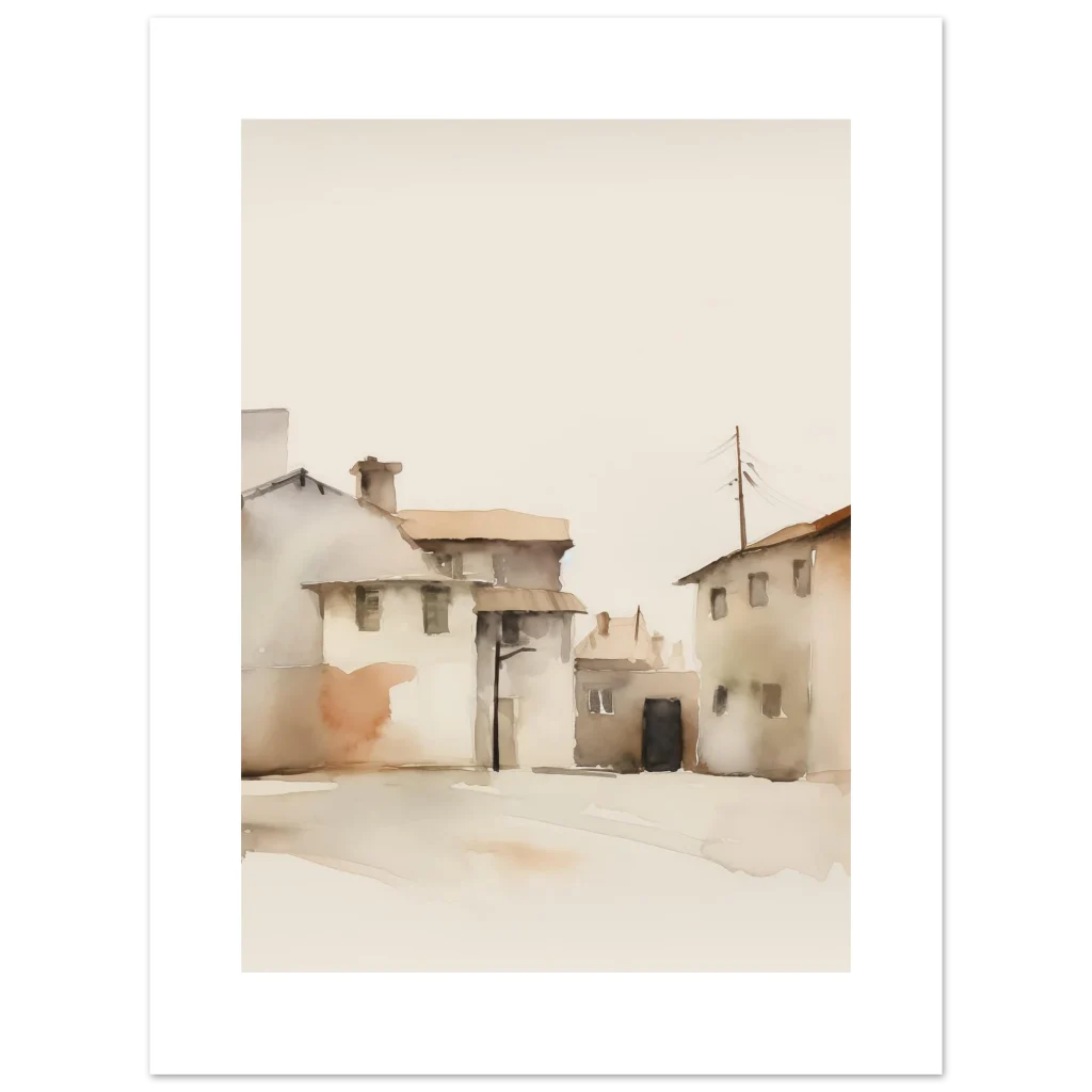 Rustic Village Watercolor Premium Matte Paper Poster – Evocative Architectural Art Print
