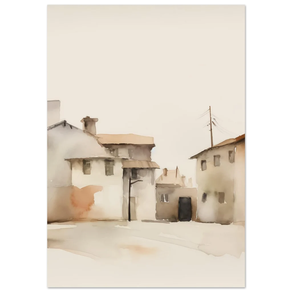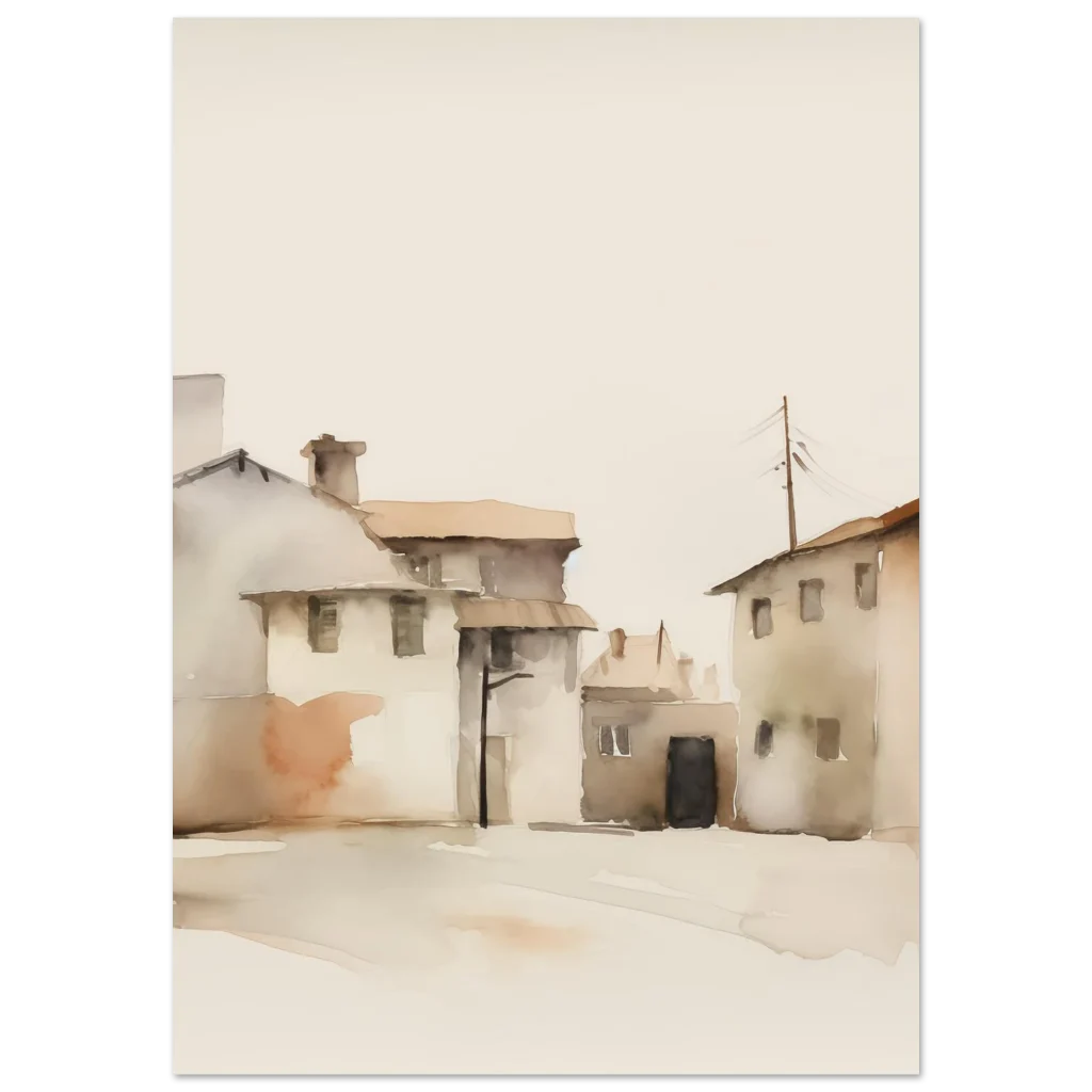 Bring the tranquil charm of a rustic village into your home with this captivating watercolor poster. The soft, muted tones and fluid brushstrokes evoke a sense of peaceful nostalgia, perfect for creating a serene and artistic ambiance in any room. This evocative architectural piece captures the essence of old-world charm, presented on a surface designed to enhance its subtle beauty.
