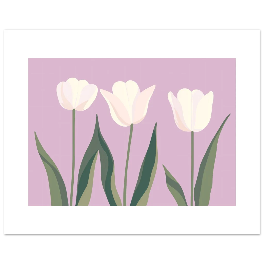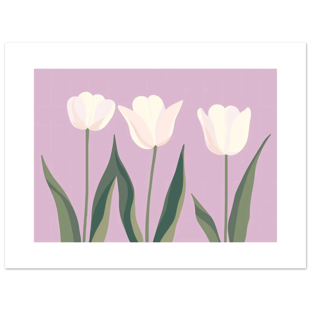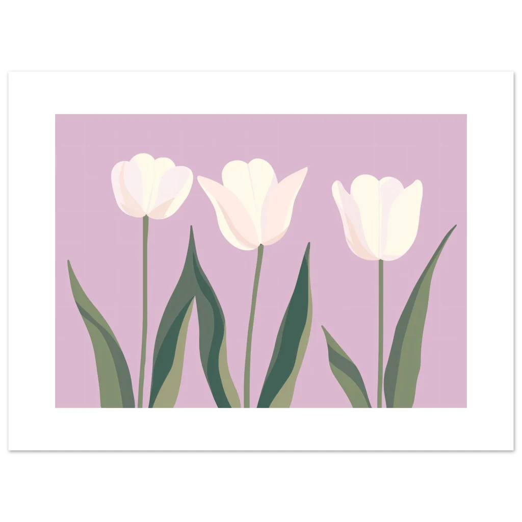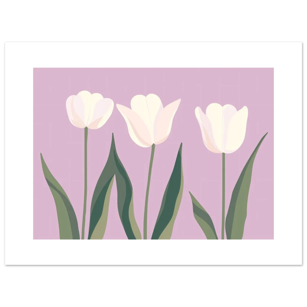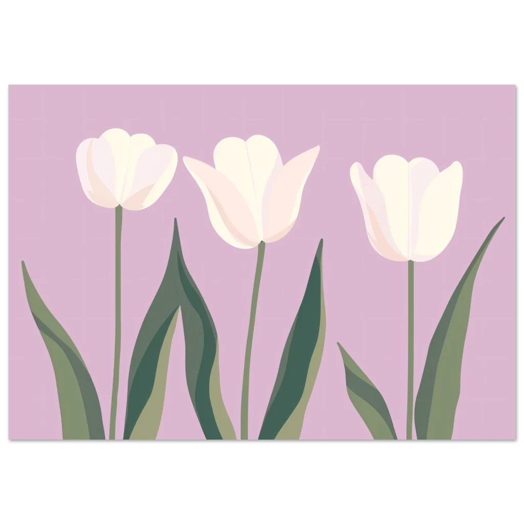 Infuse your space with the tranquil beauty of nature with our ‘Soft Lavender Tulips’ art print. This elegant poster features three delicate, cream-colored tulips set against a dreamy lavender backdrop, creating a minimalist yet captivating floral display. Perfect for adding a touch of serene sophistication to any room, this piece brings the gentle calm of a spring garden into your home.
