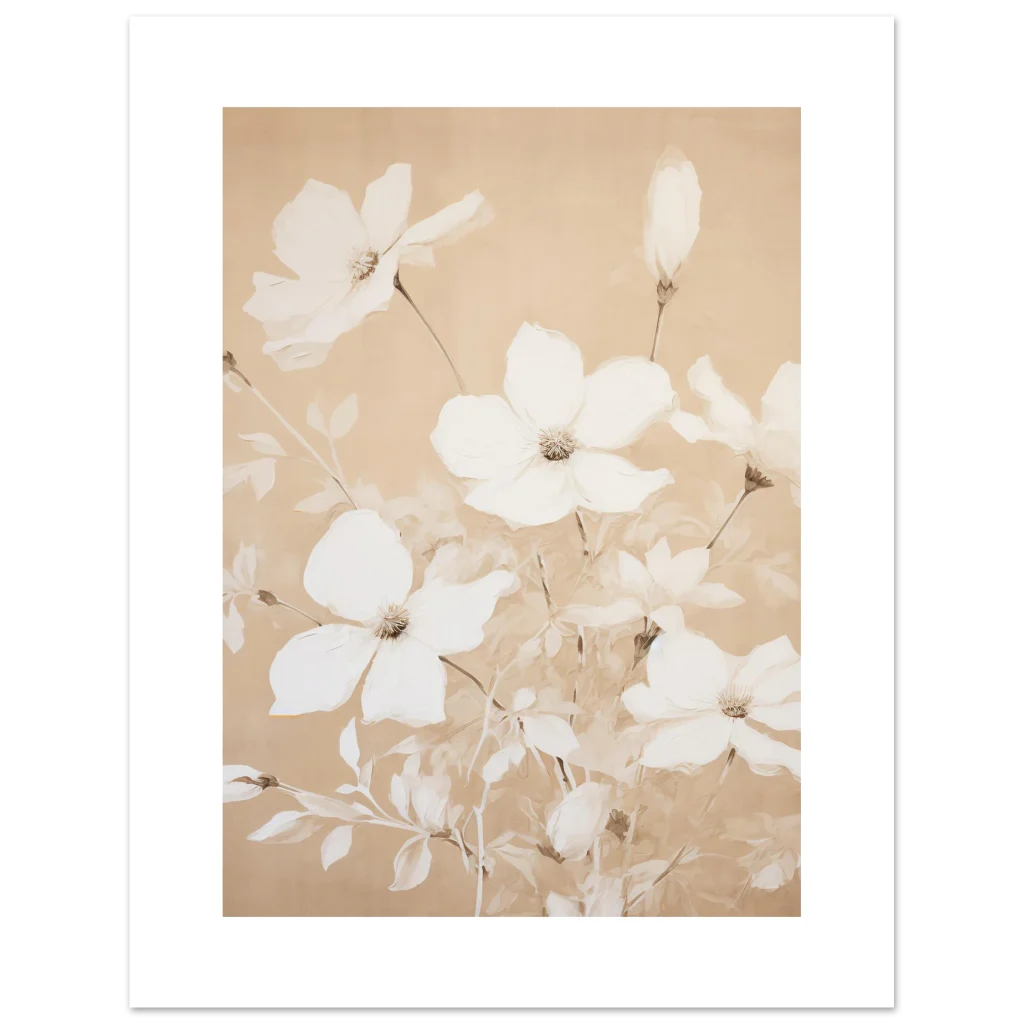 Soft Sepia Floral Elegance Poster – Delicate Botanical Art in Premium Matte Finish