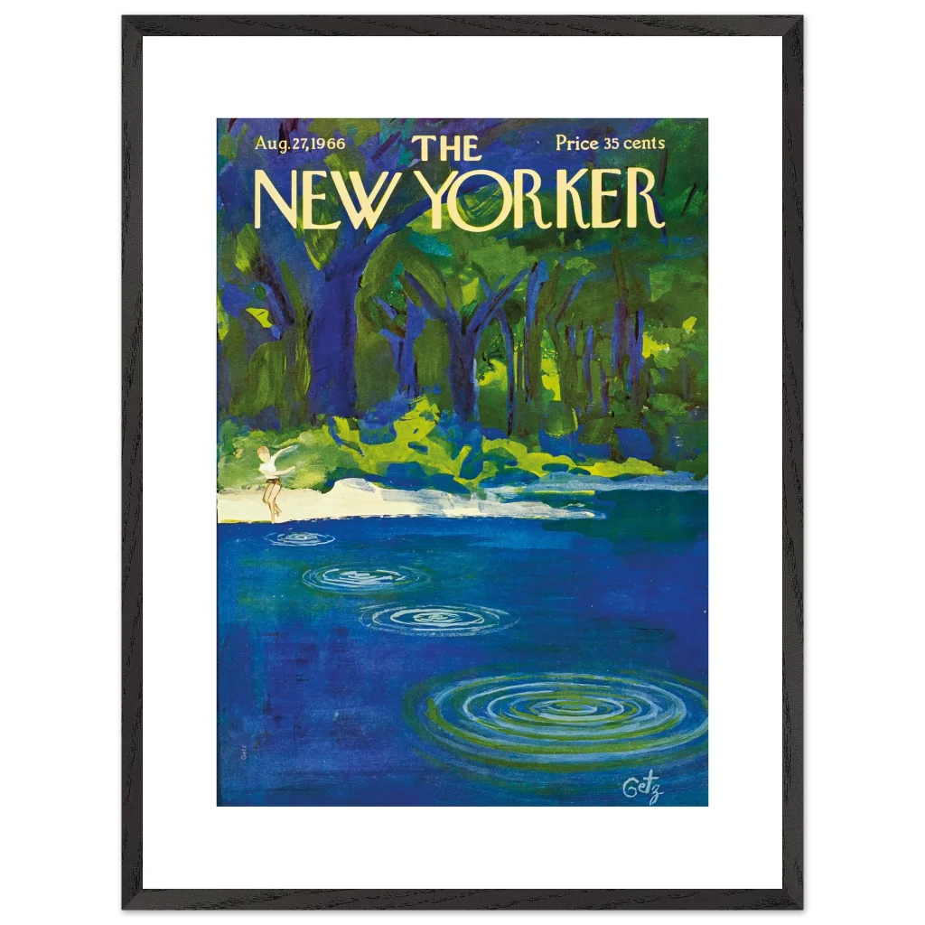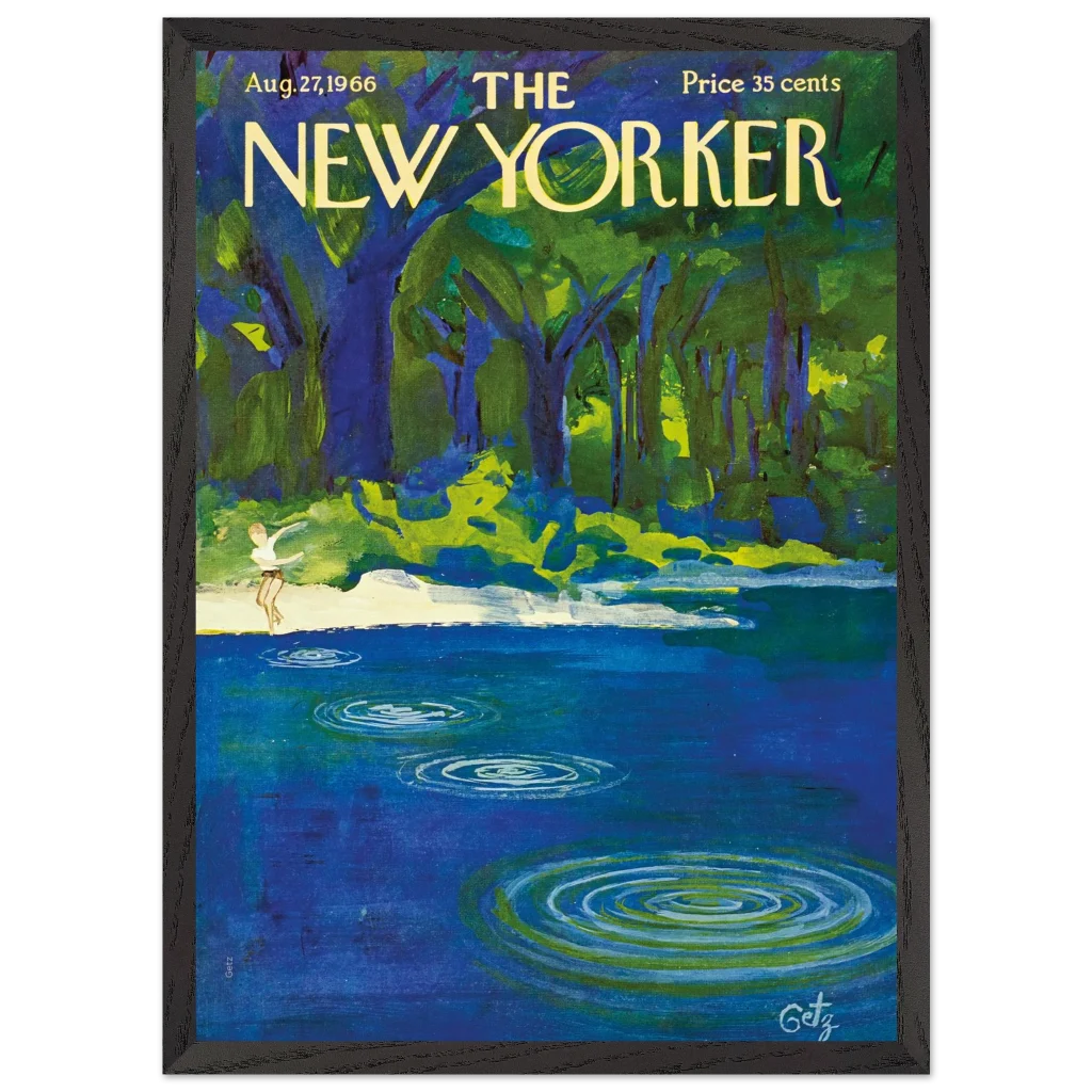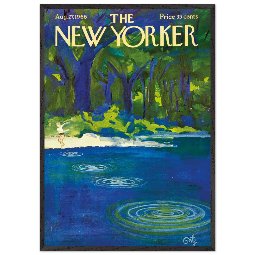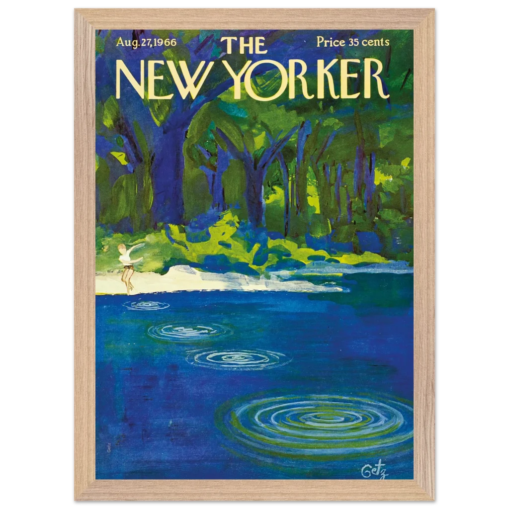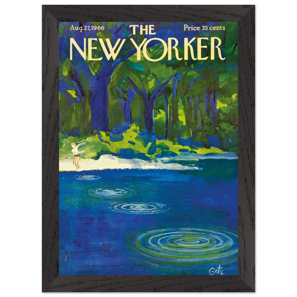 Summer Reverie Art Print – Mid-Century New Yorker Cover Framed Poster, Deep Blue & Green Impressionistic Wall Art