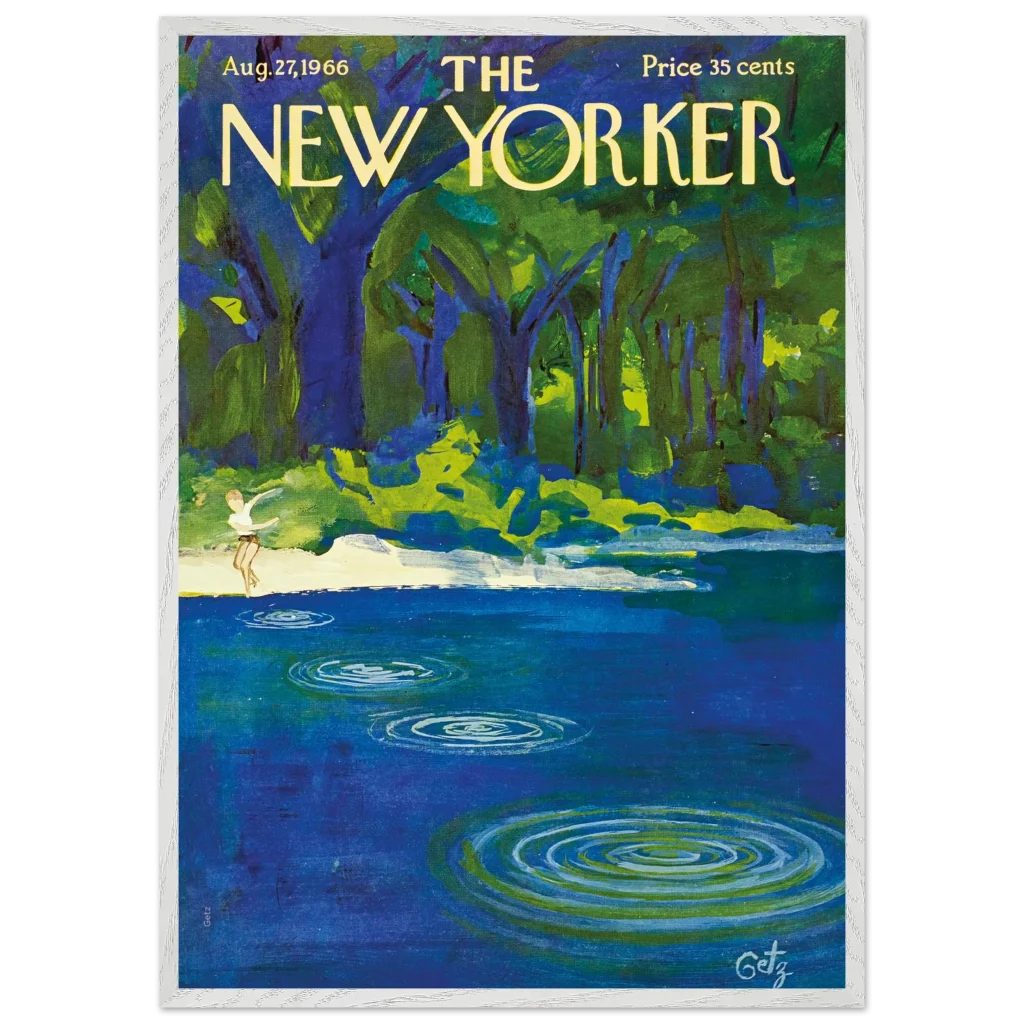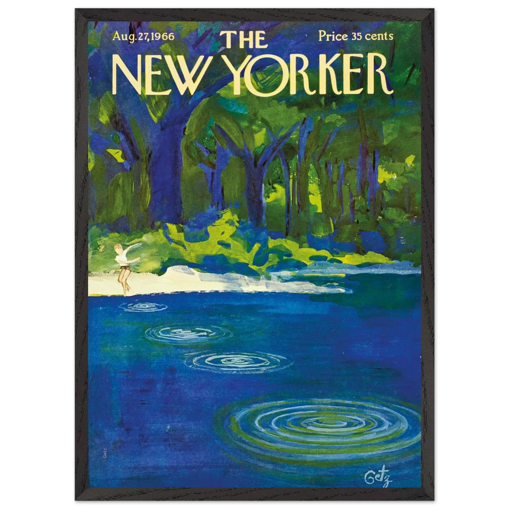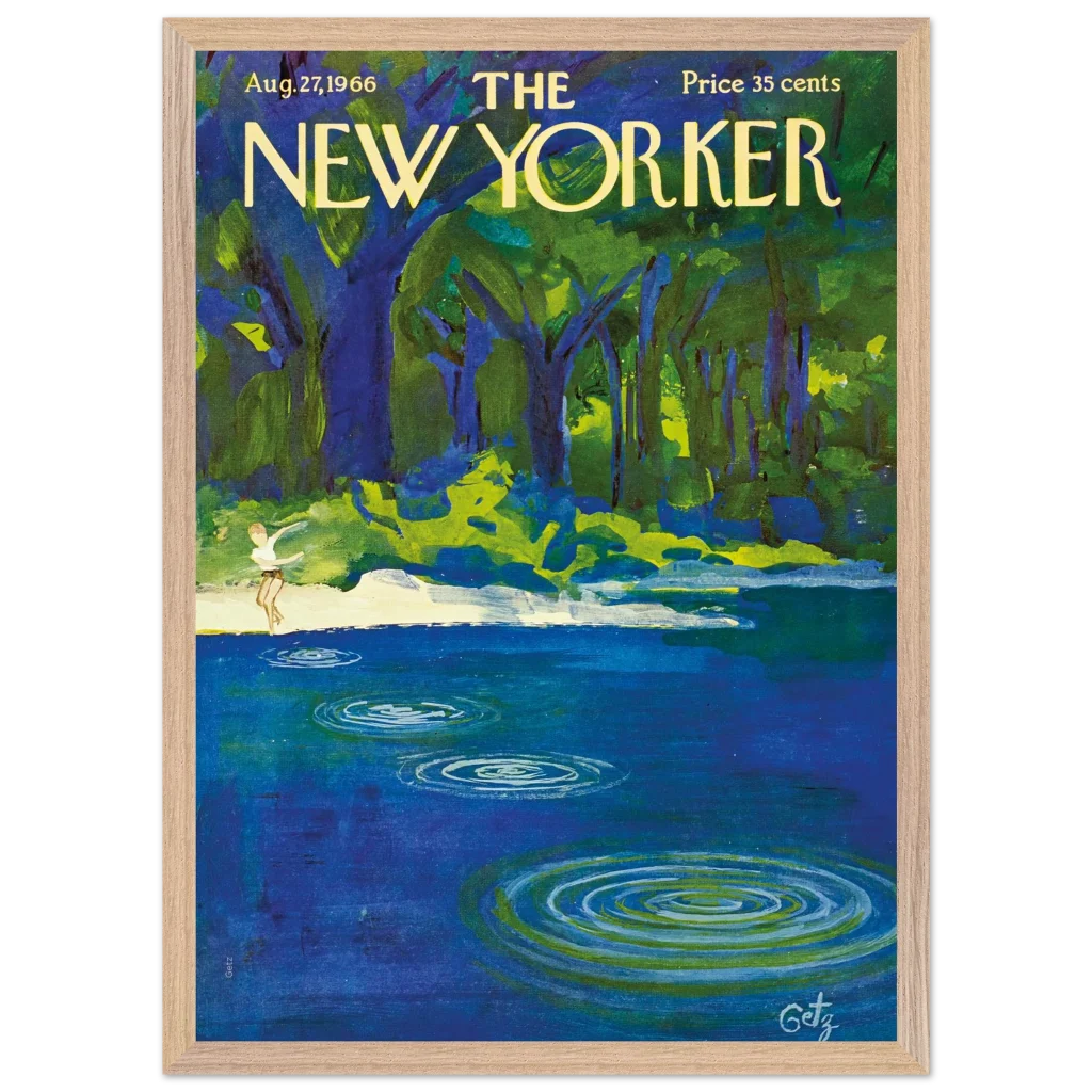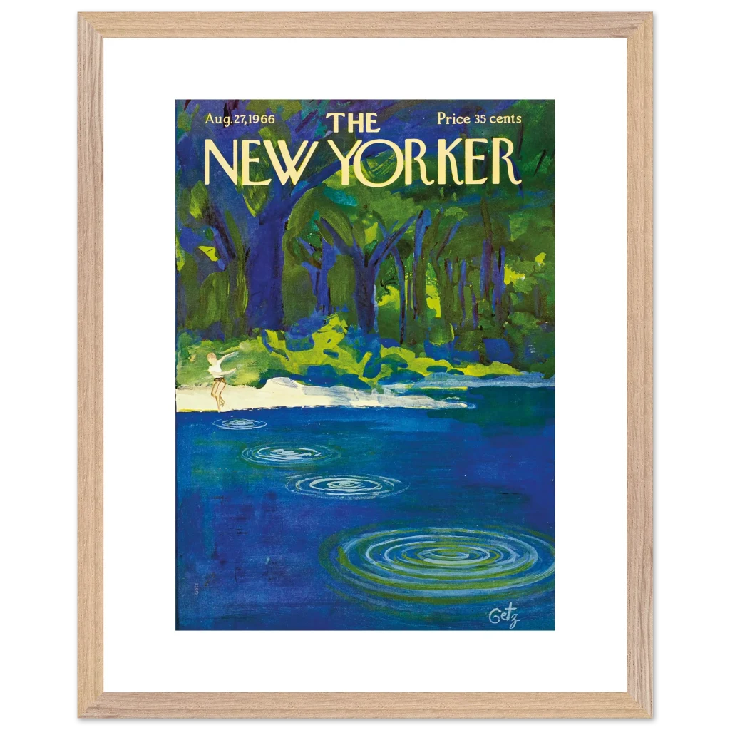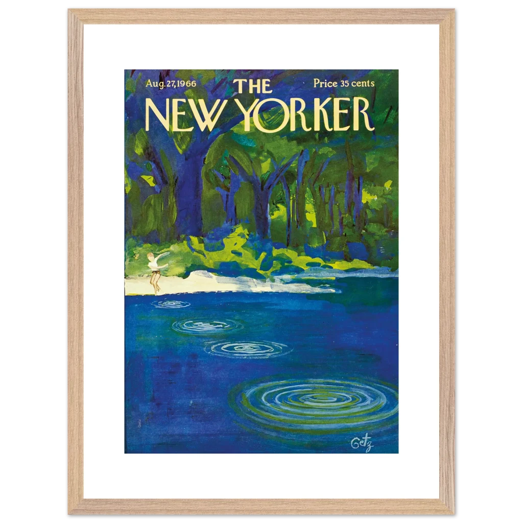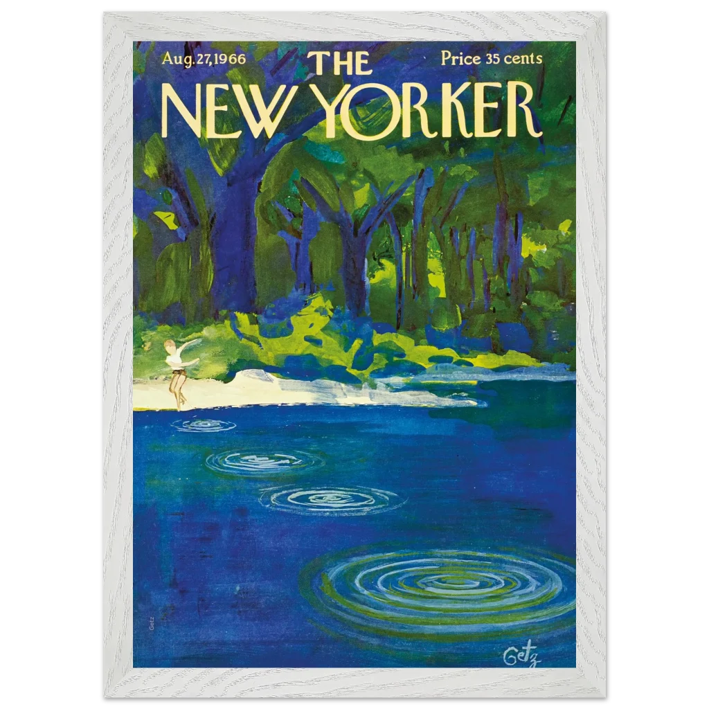 Summer Reverie Art Print – Mid-Century New Yorker Cover Framed Poster, Deep Blue & Green Impressionistic Wall Art