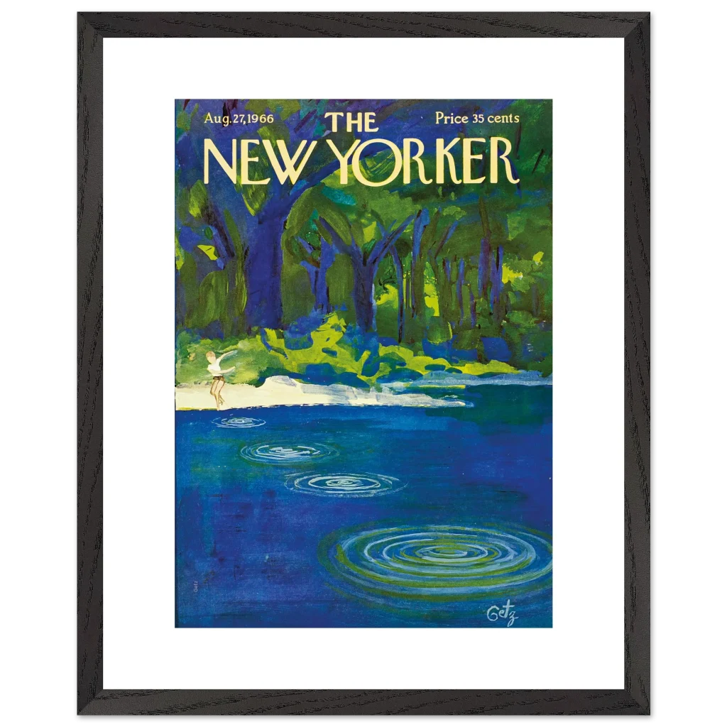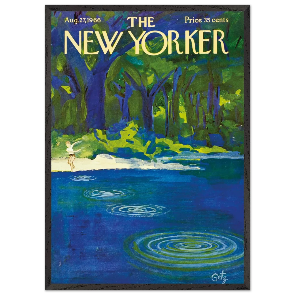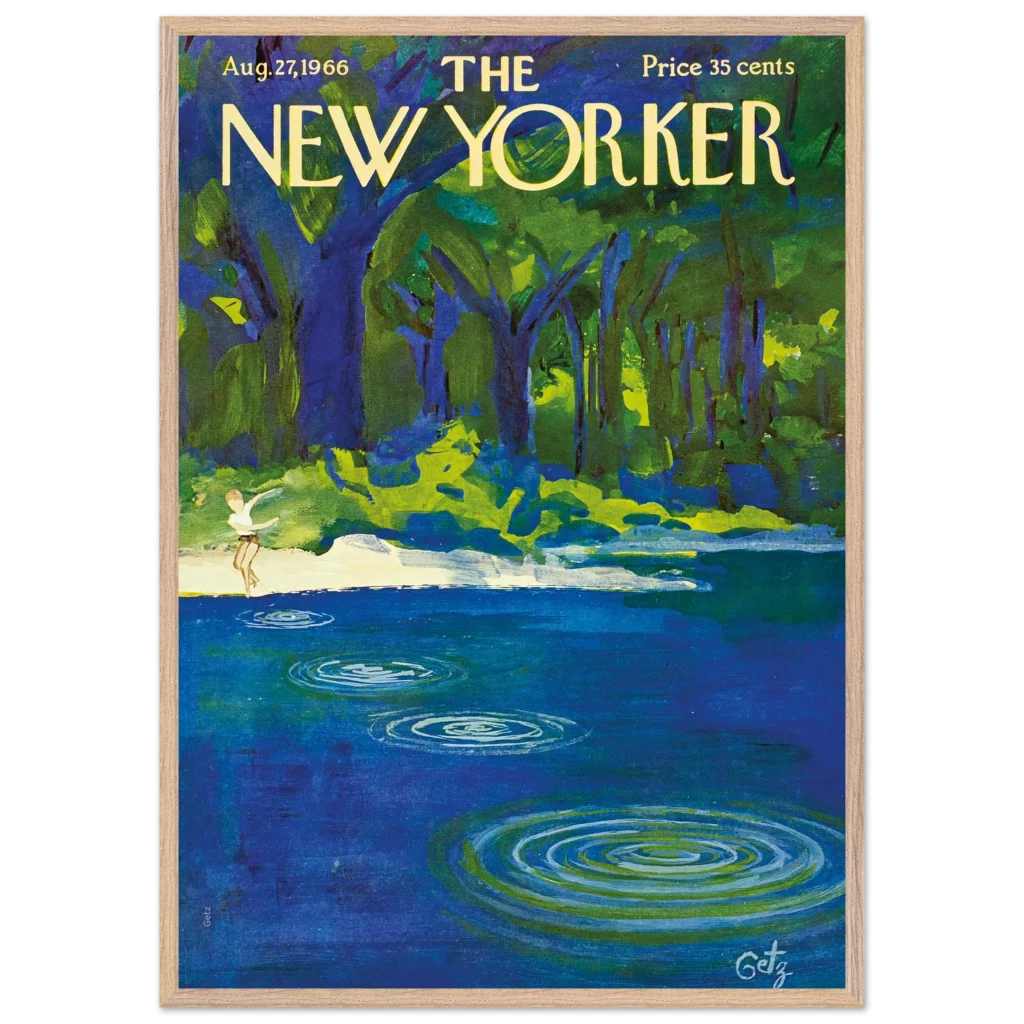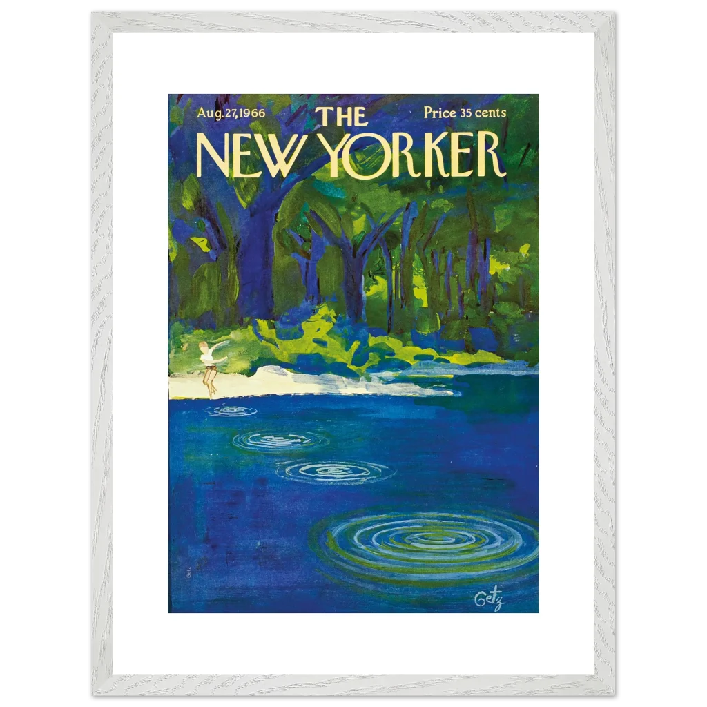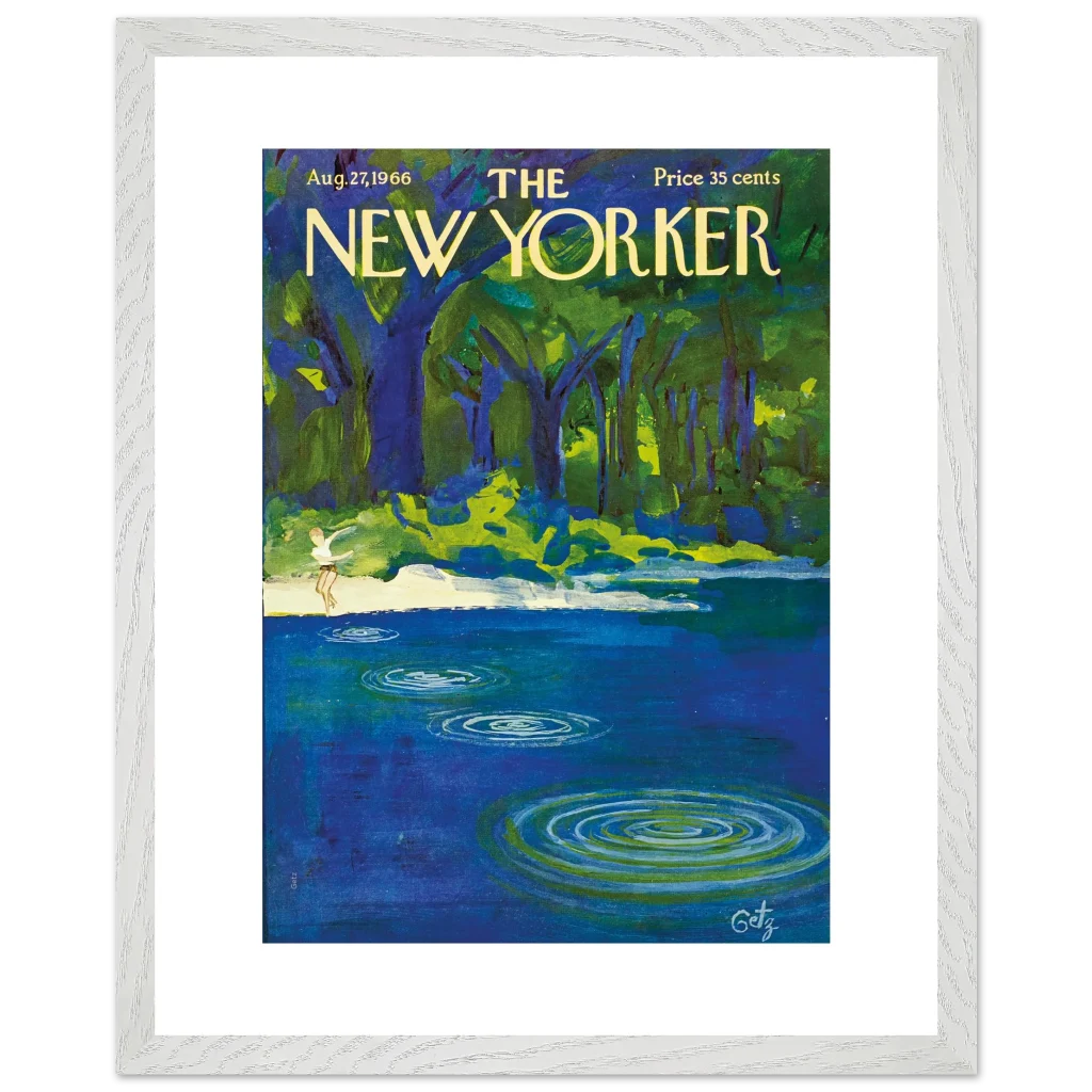 Summer Reverie Art Print – Mid-Century New Yorker Cover Framed Poster, Deep Blue & Green Impressionistic Wall Art