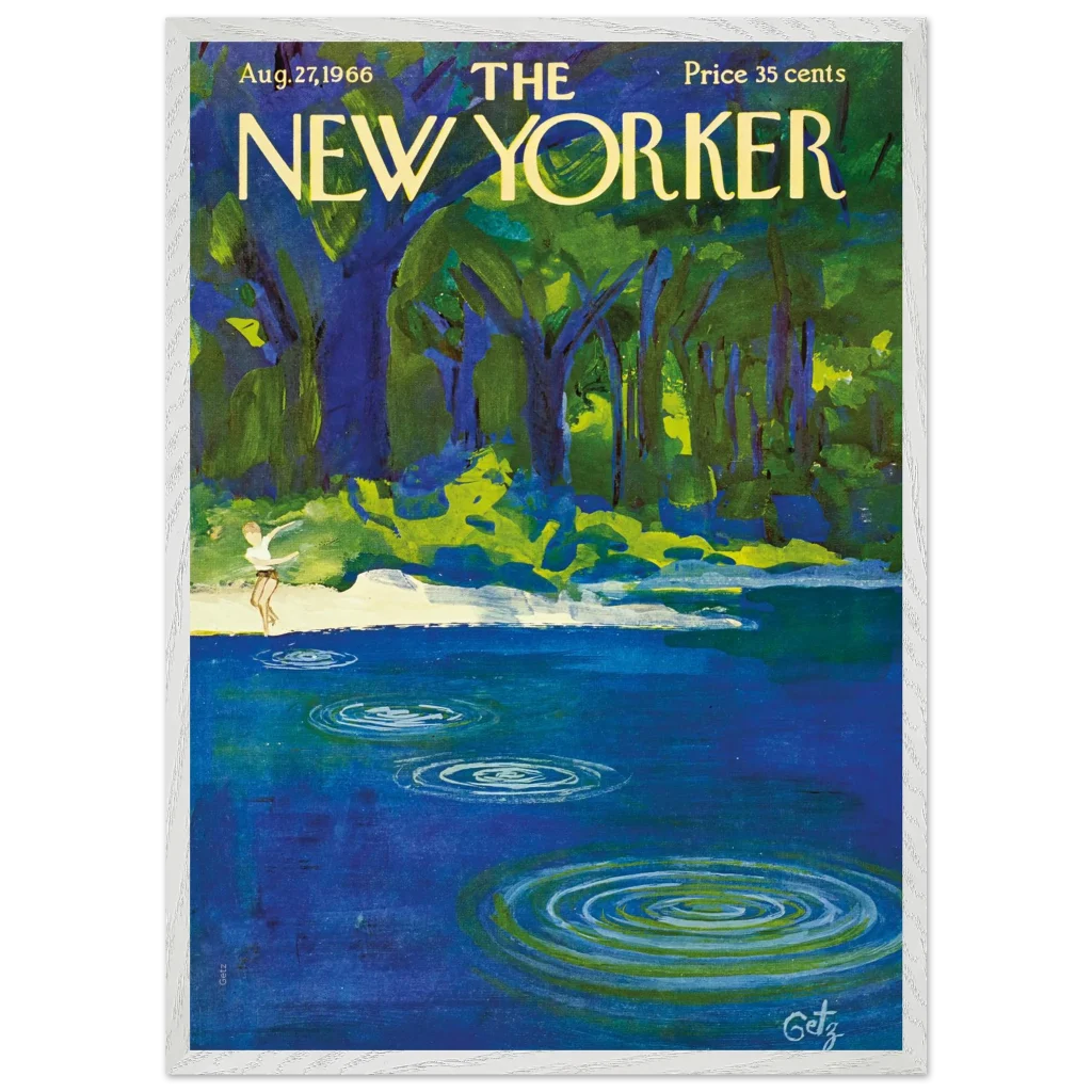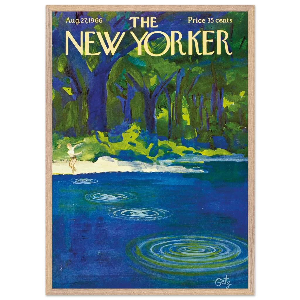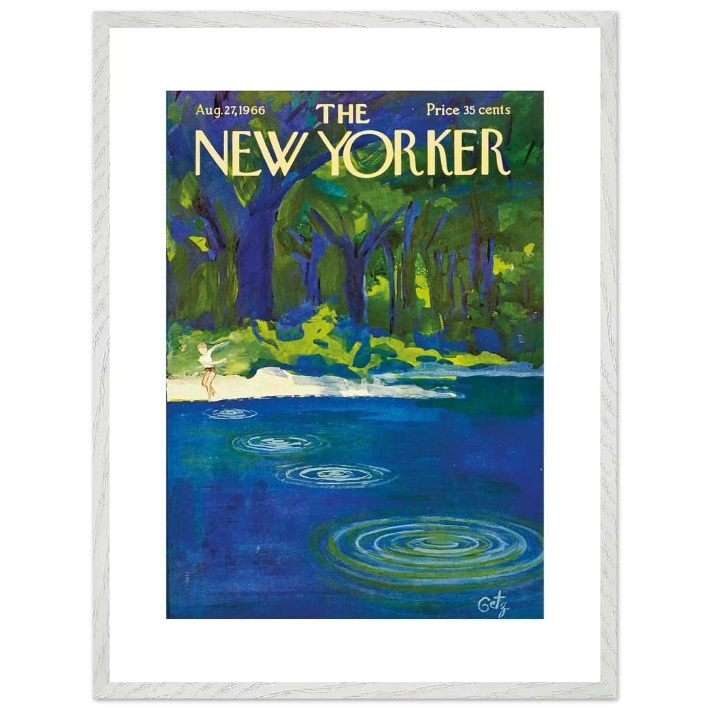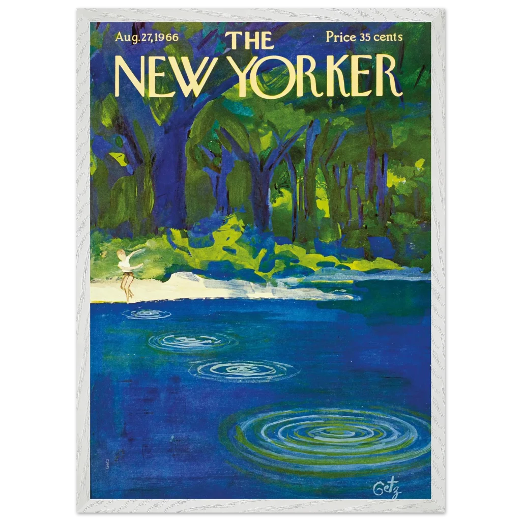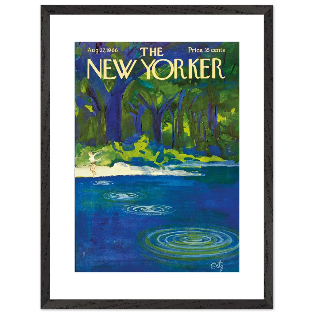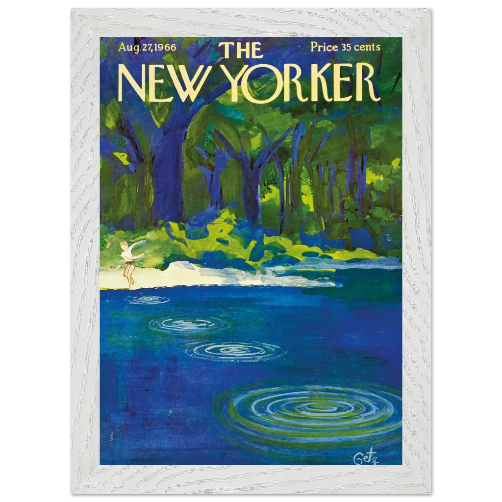 Summer Reverie Art Print – Mid-Century New Yorker Cover Framed Poster, Deep Blue & Green Impressionistic Wall Art