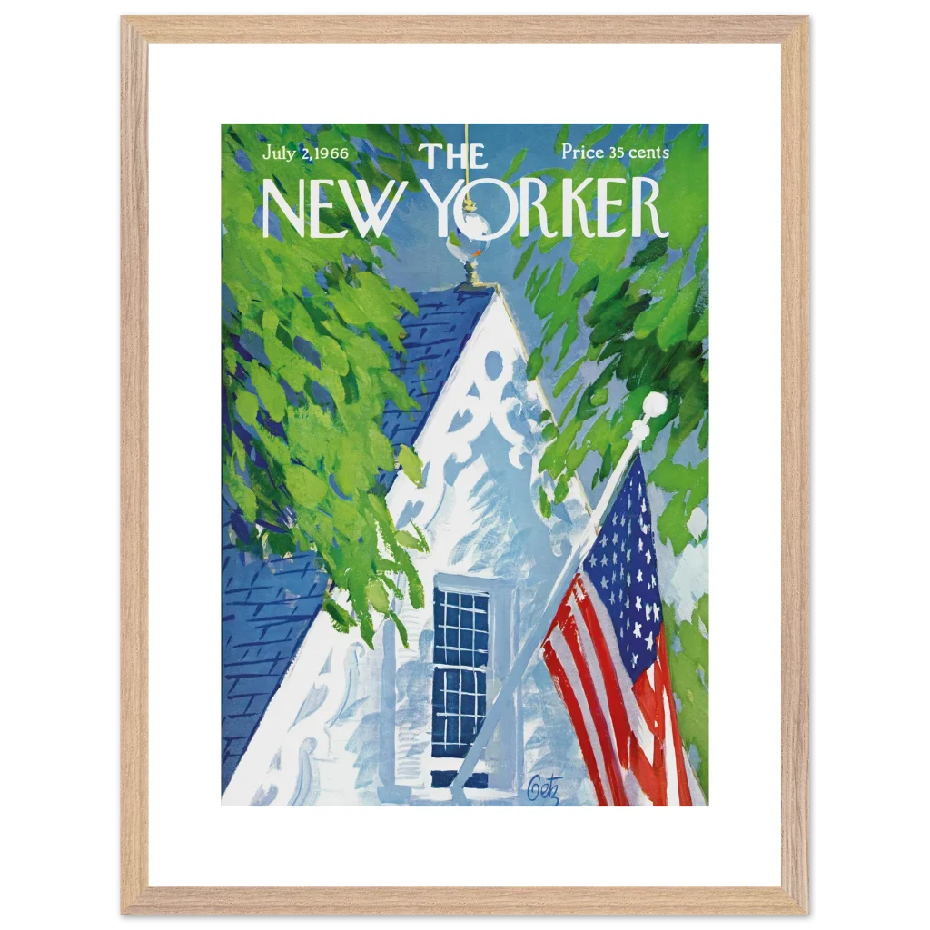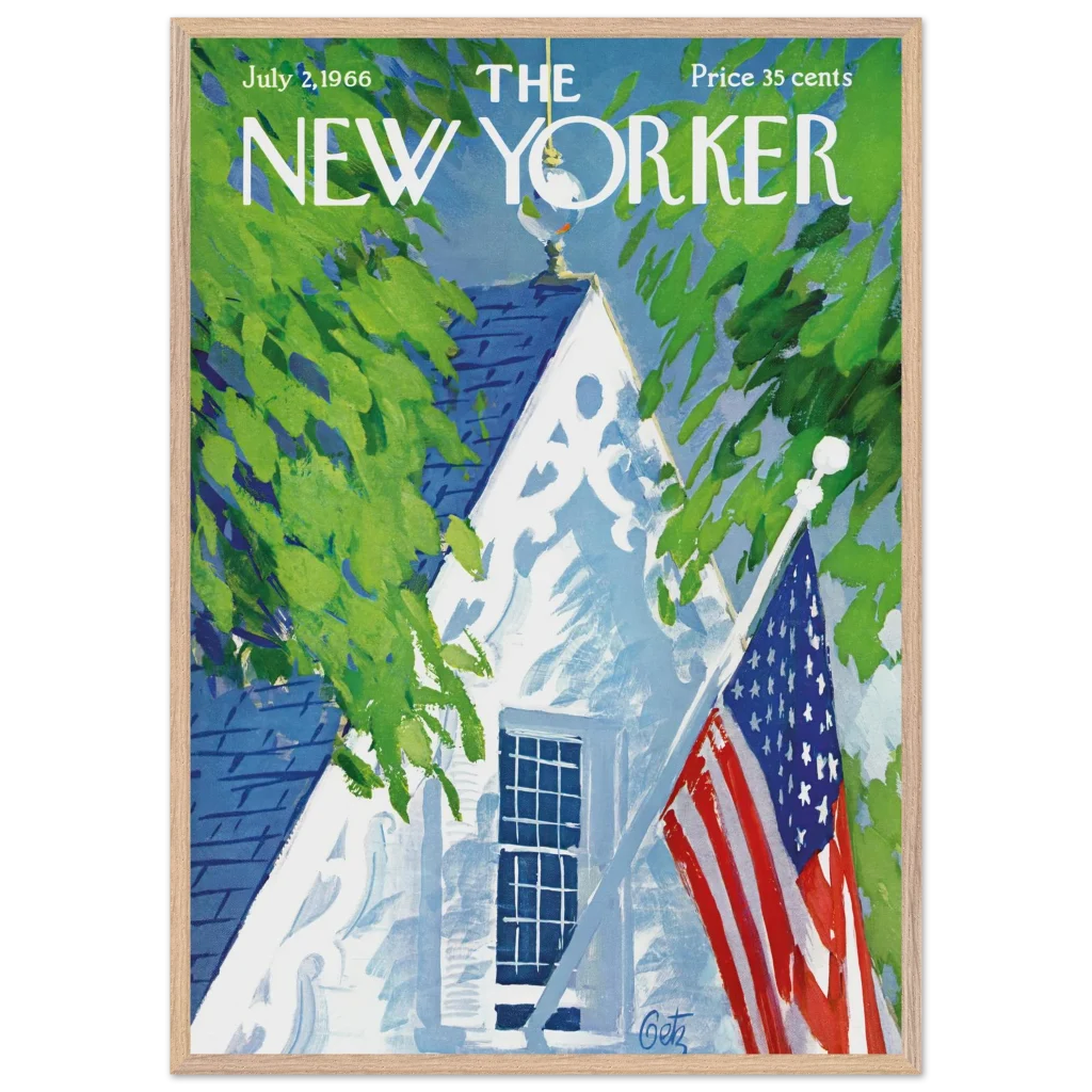 Summer Serenity New Yorker Cover Poster – Vintage Art House Flag Decor with Premium Wooden Frame & Matte Paper