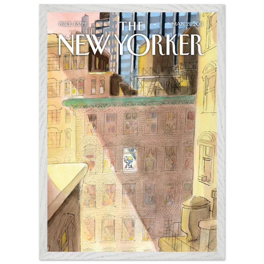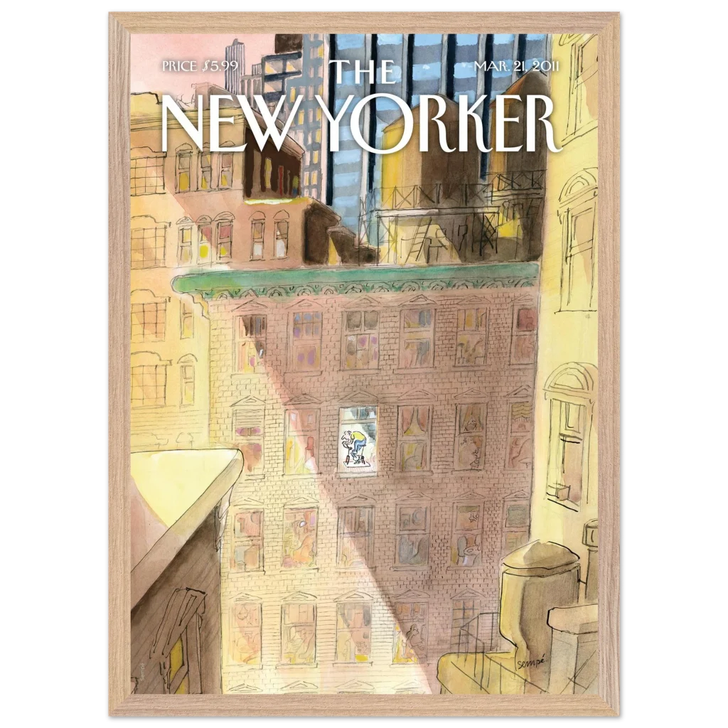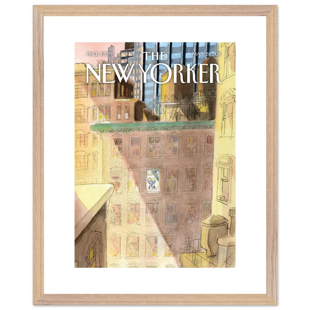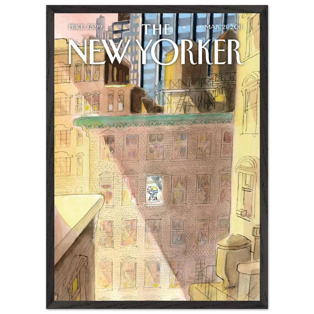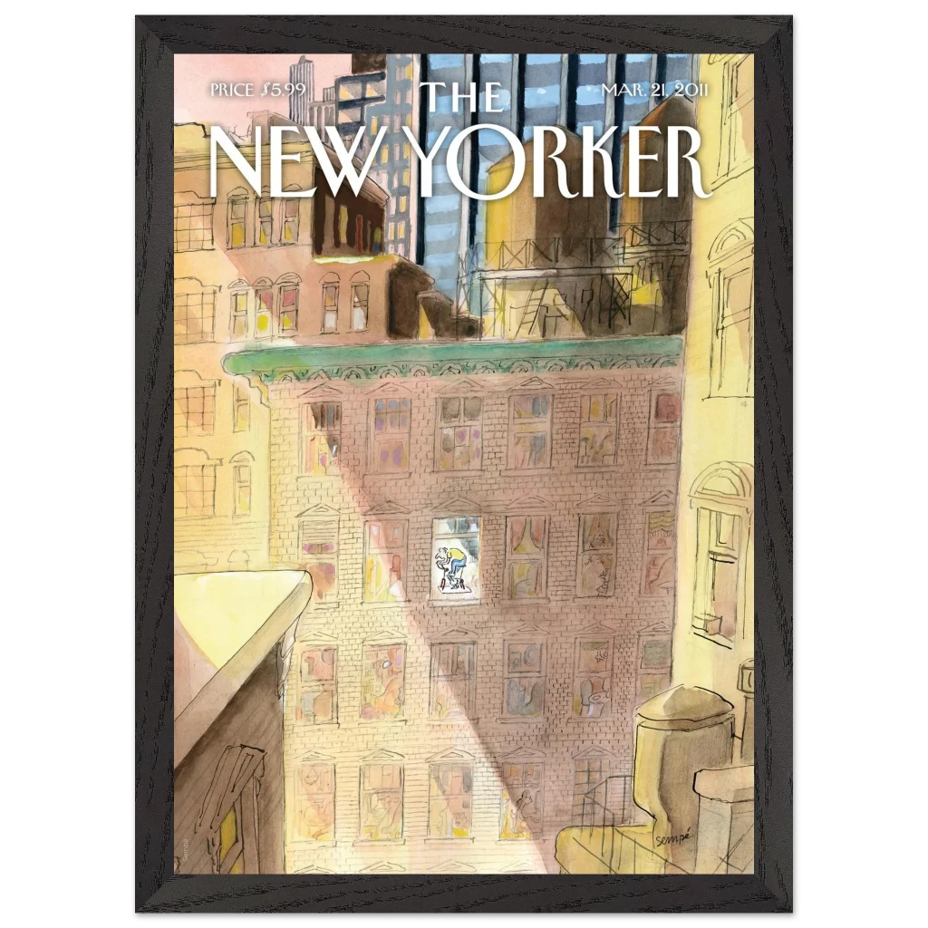 The New Yorker ‘Spring Training’ Cover Print – Sempé Watercolor Cityscape Wall Art with Premium Wooden Frame