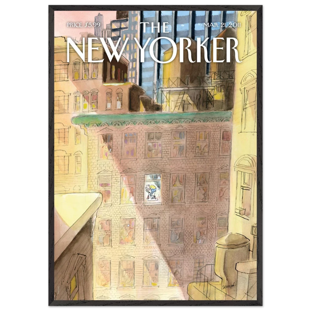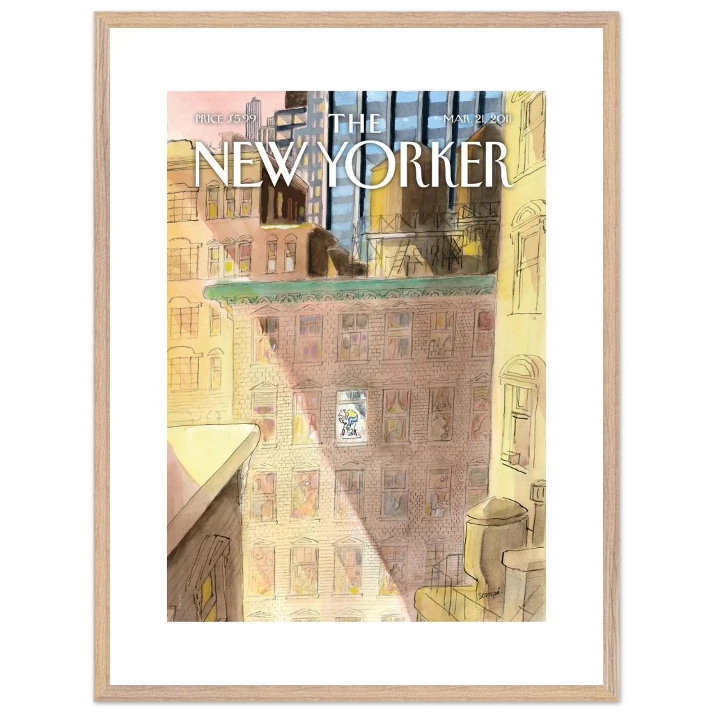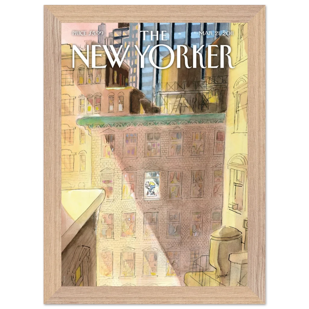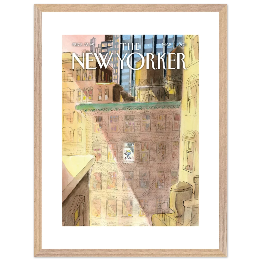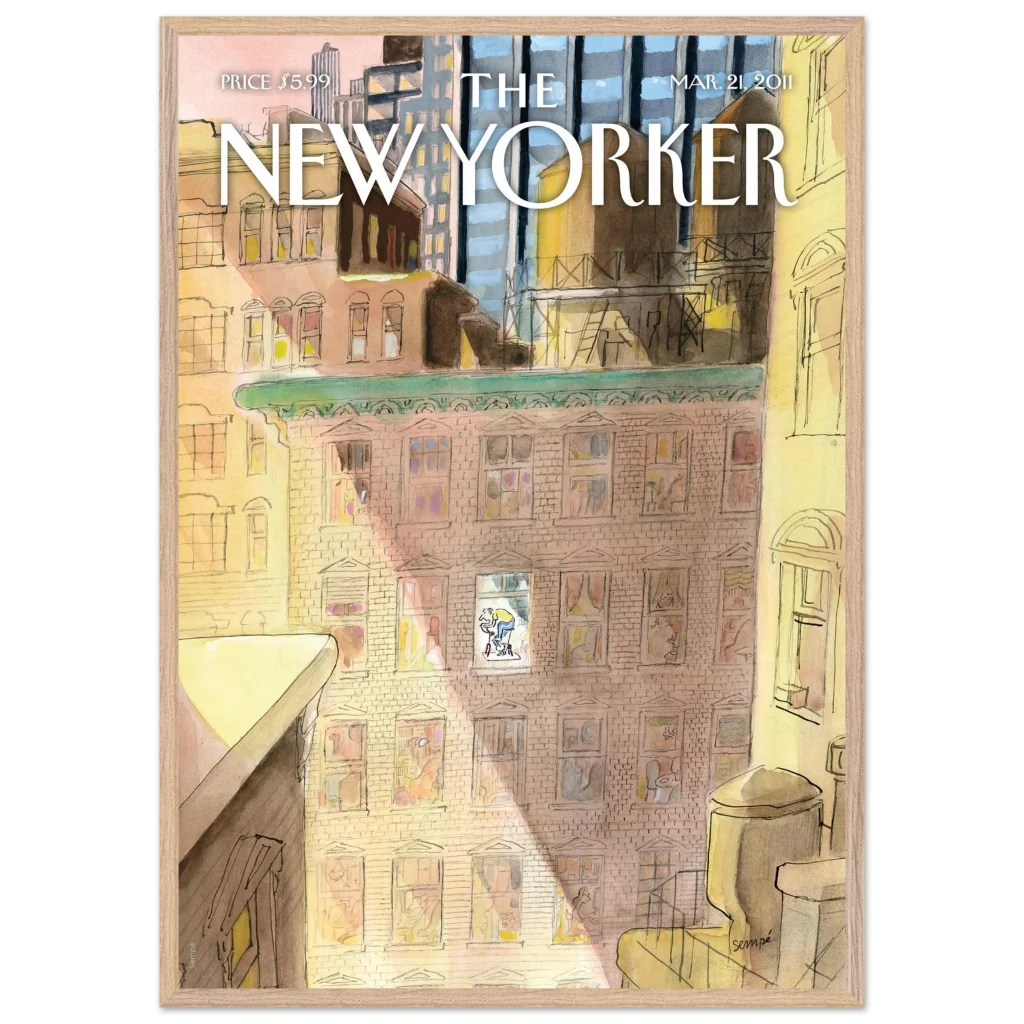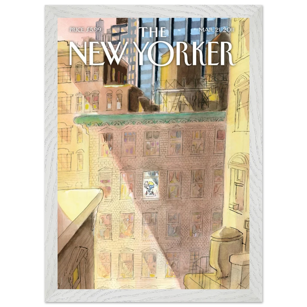 The New Yorker ‘Spring Training’ Cover Print – Sempé Watercolor Cityscape Wall Art with Premium Wooden Frame