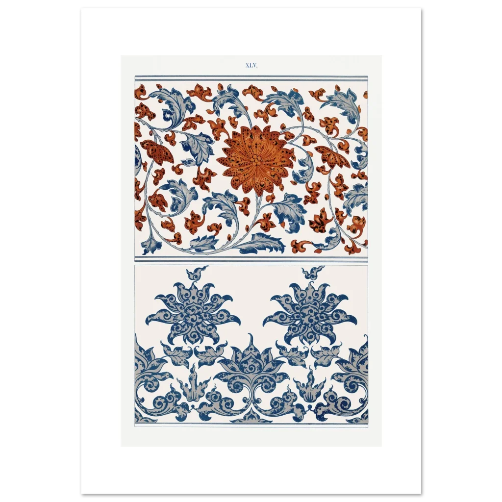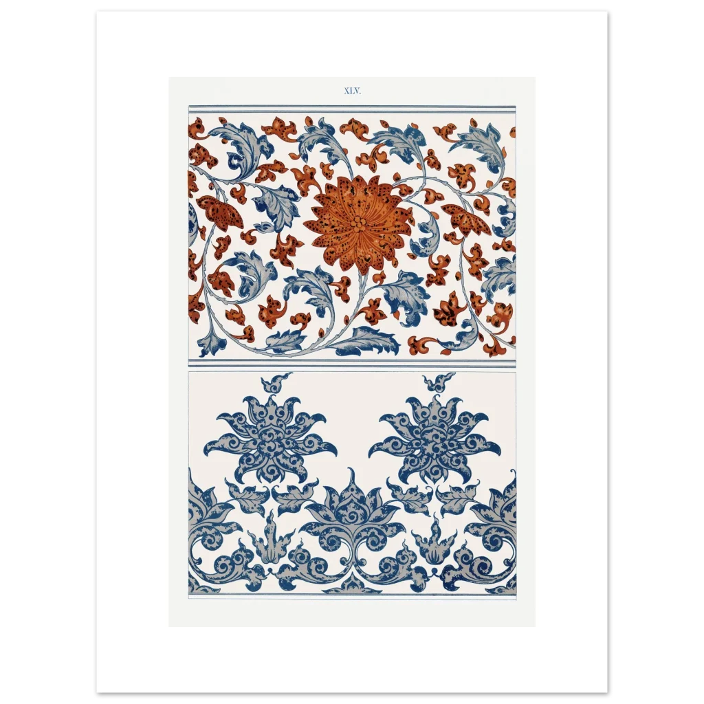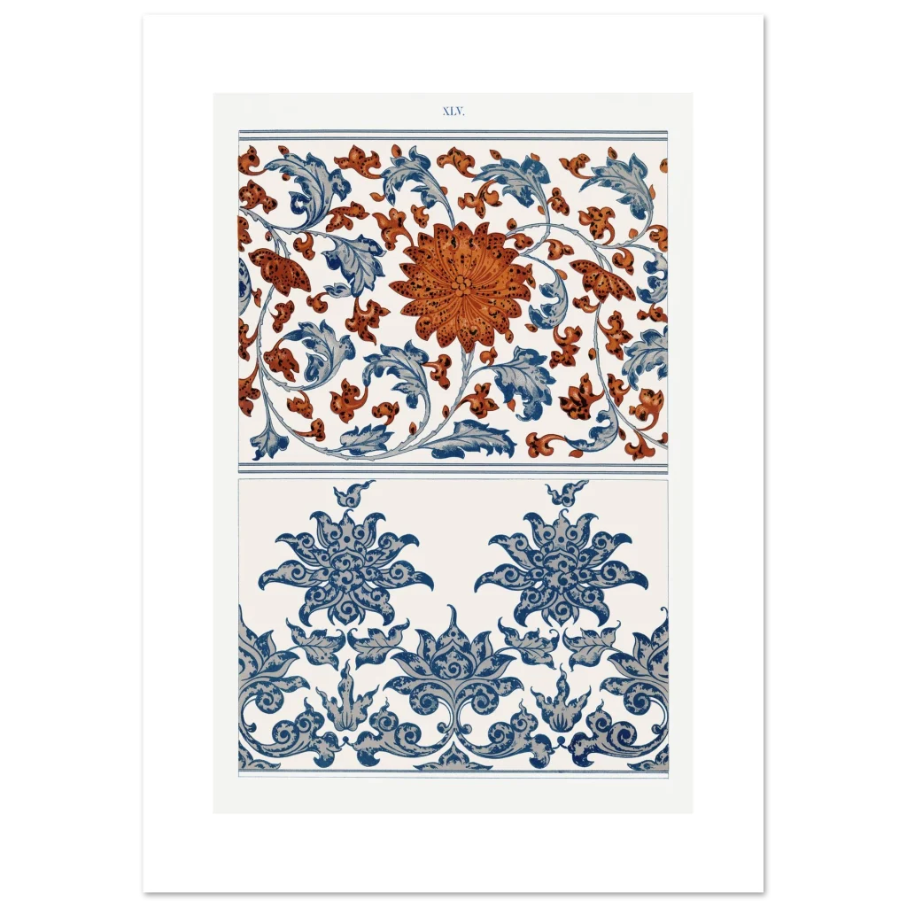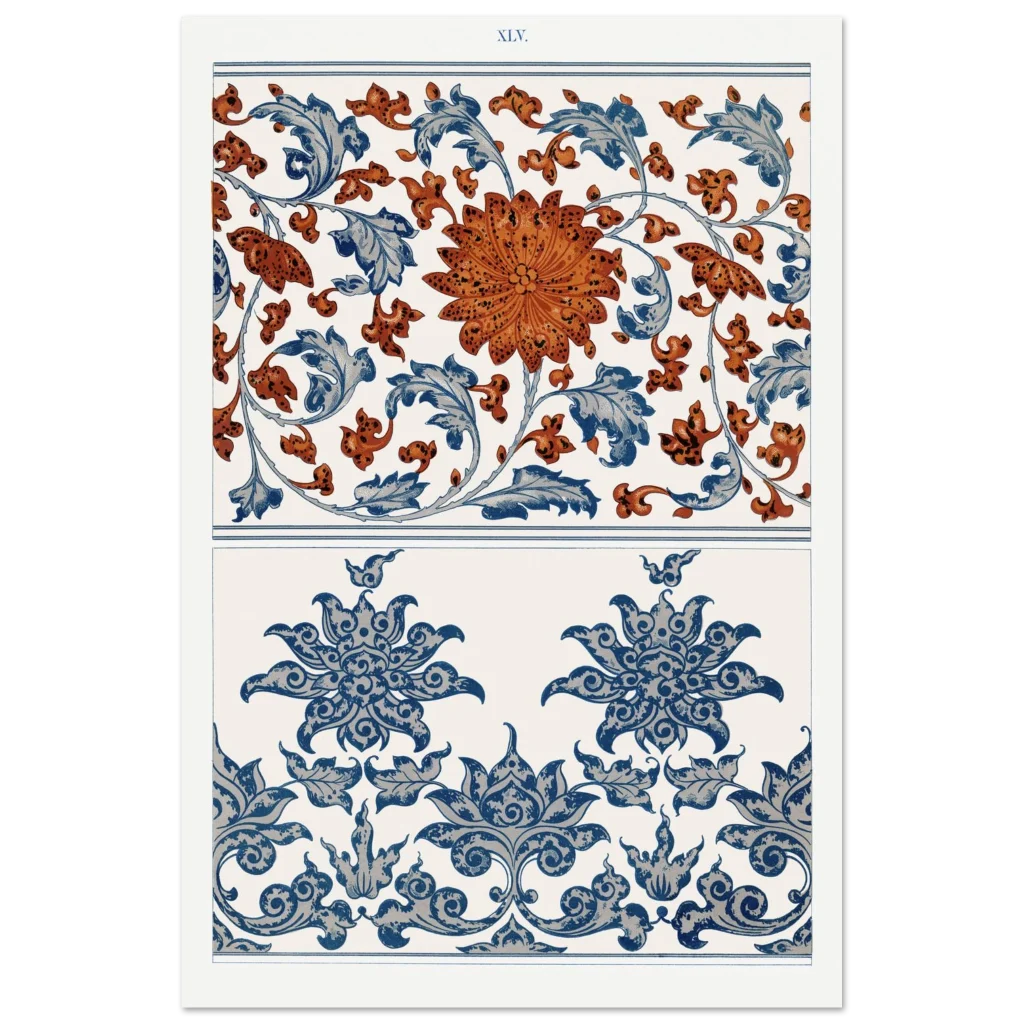 Immerse your space in the serene elegance of Asian-inspired artistry with our stunning floral poster. Featuring a captivating blend of deep blues and vibrant terracotta, this piece captures the intricate beauty of traditional botanical motifs, bringing a touch of refined tranquility and vibrant history to any room. It’s more than just a print; it’s a statement of classic taste and cultural appreciation.