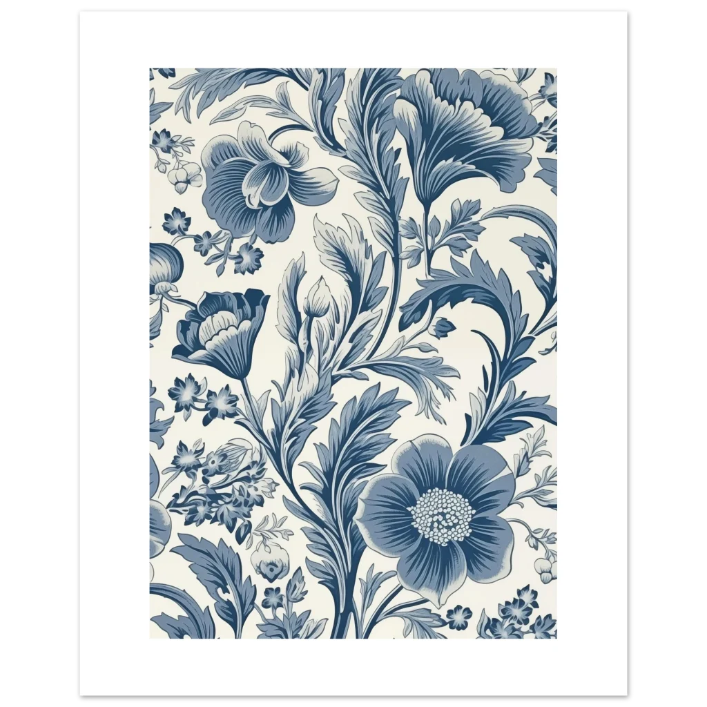 Bring a touch of timeless elegance into your home with our Delft Blue Floral Premium Matte Paper Poster. Inspired by classic botanical illustrations and the serene beauty of traditional blue and white ceramics, this exquisite piece features an intricate floral pattern in shades of deep indigo and soft sky blue against a crisp, creamy background. It’s the perfect accent to create a sophisticated and calming atmosphere in any room, from a cozy reading nook to a chic living area.
