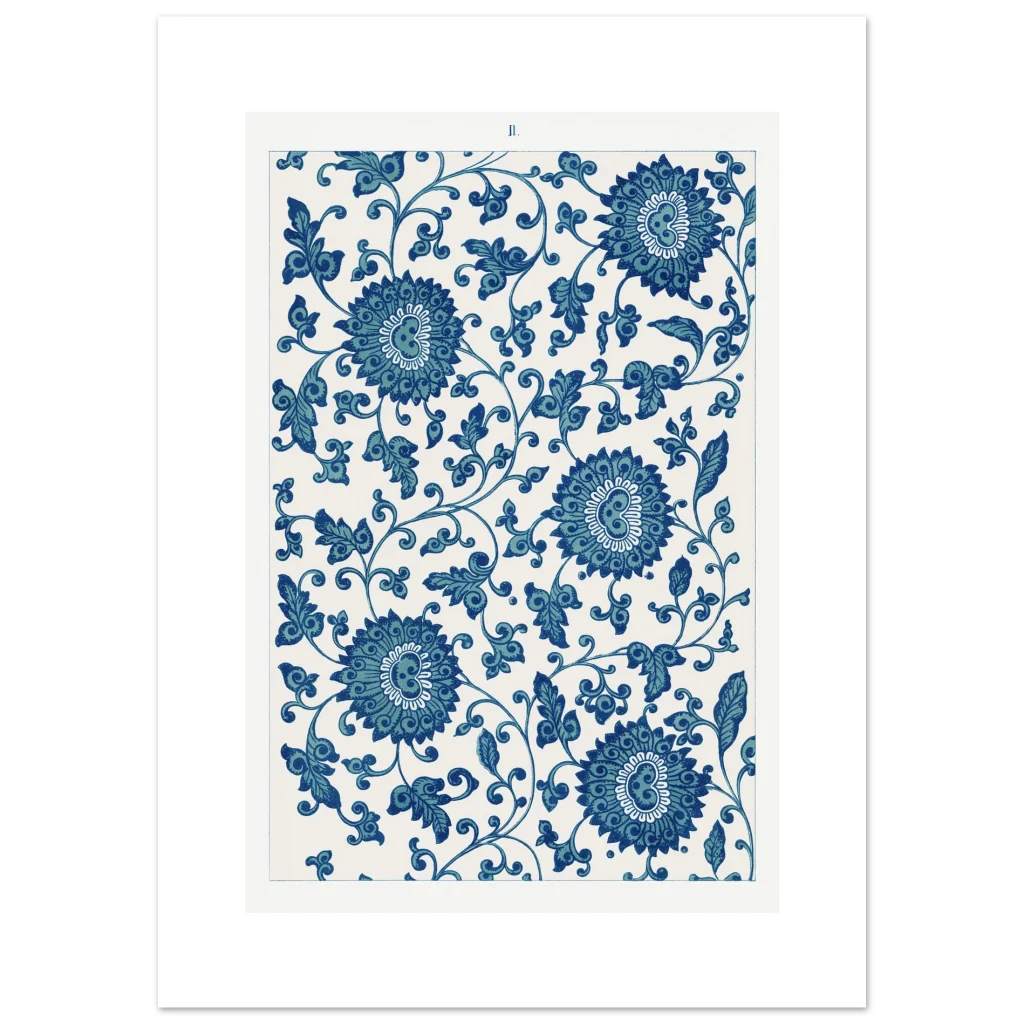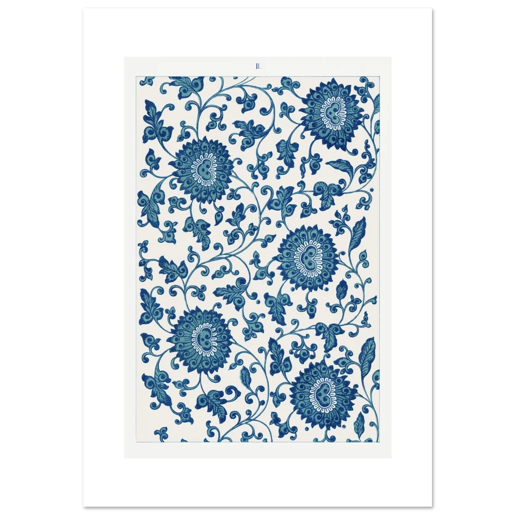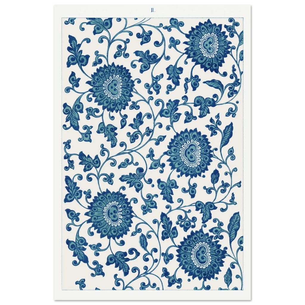 Bring a touch of timeless elegance and serene beauty into your space with this exquisite floral pattern poster. Featuring an intricate design in captivating teal and deep blue hues against a soft, light background, this artwork evokes a sense of calm and classic artistry. Perfect for enhancing any living room, bedroom, or office, it offers a sophisticated visual retreat.