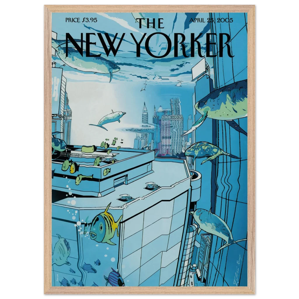 Underwater Metropolis – The New Yorker Inspired Wall Art – Premium Framed Poster with Playful Ocean Life