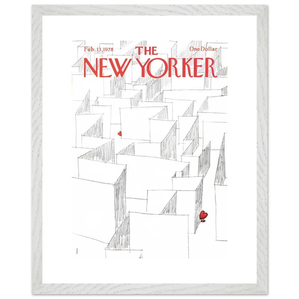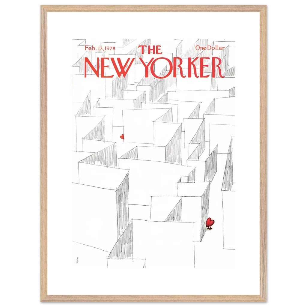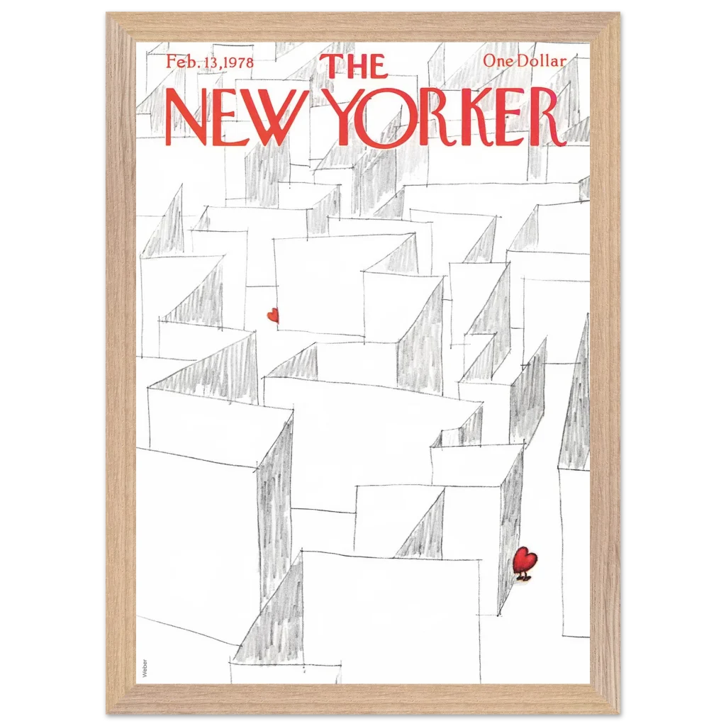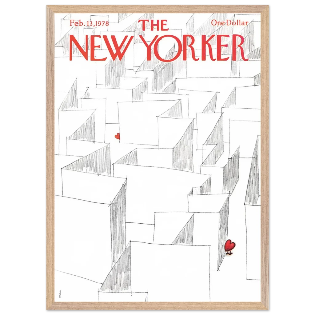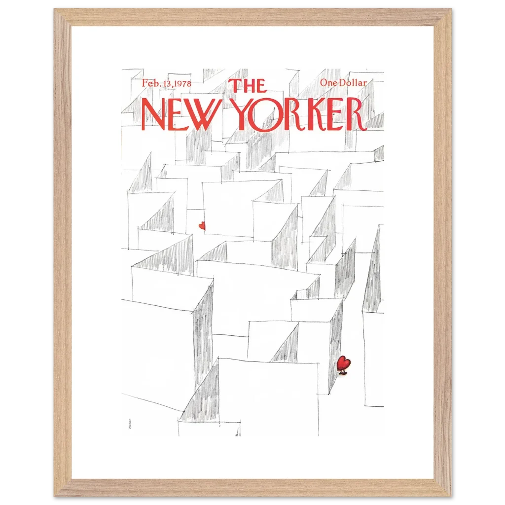 Valentine’s Maze Heart Poster – Playful New Yorker Art Print with Premium Wooden Frame & Matte Paper – Find Your Love Story