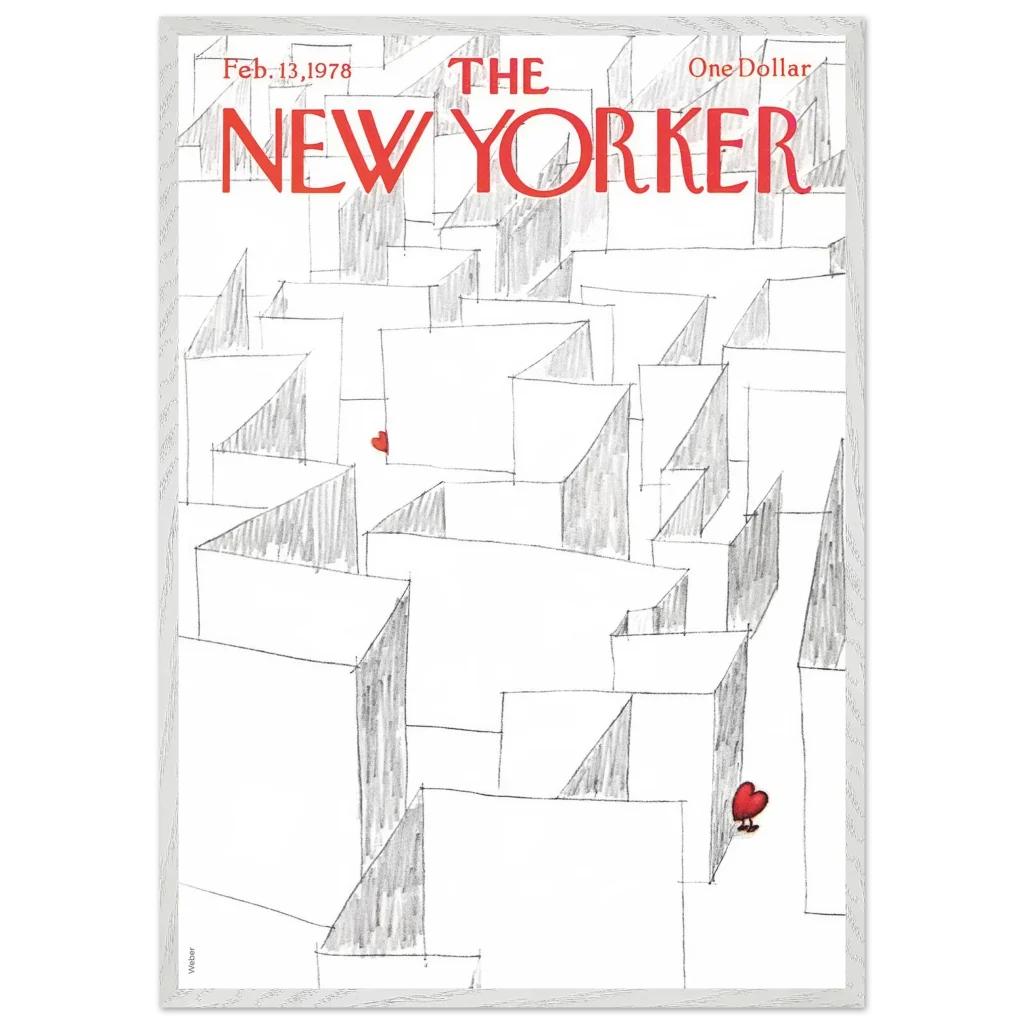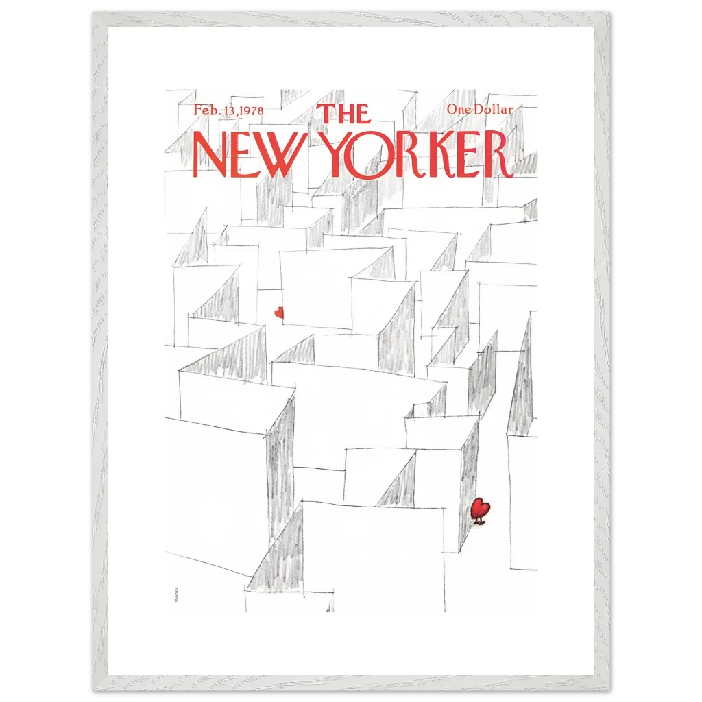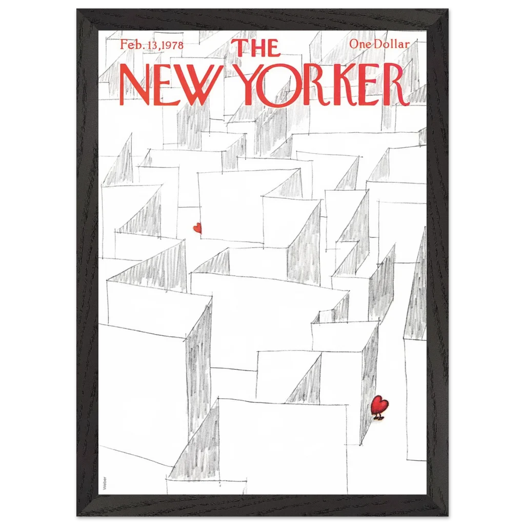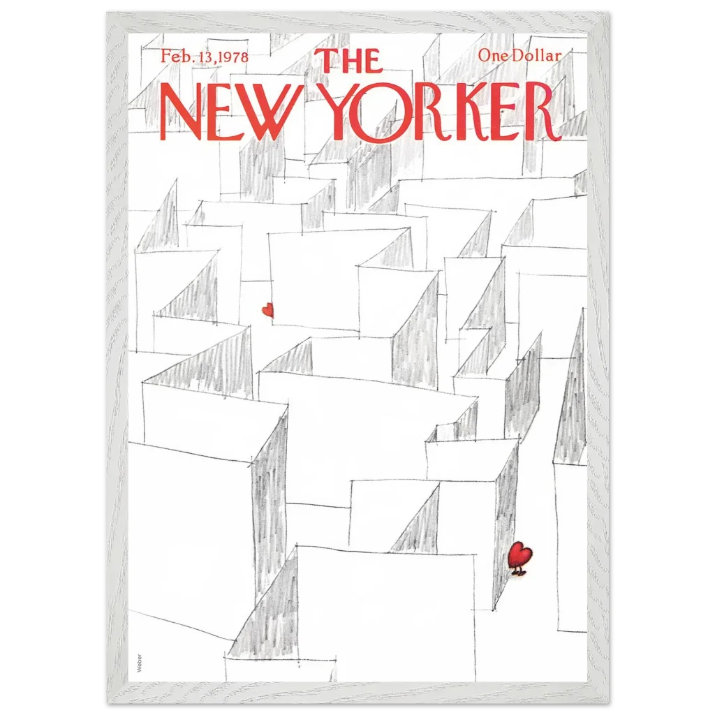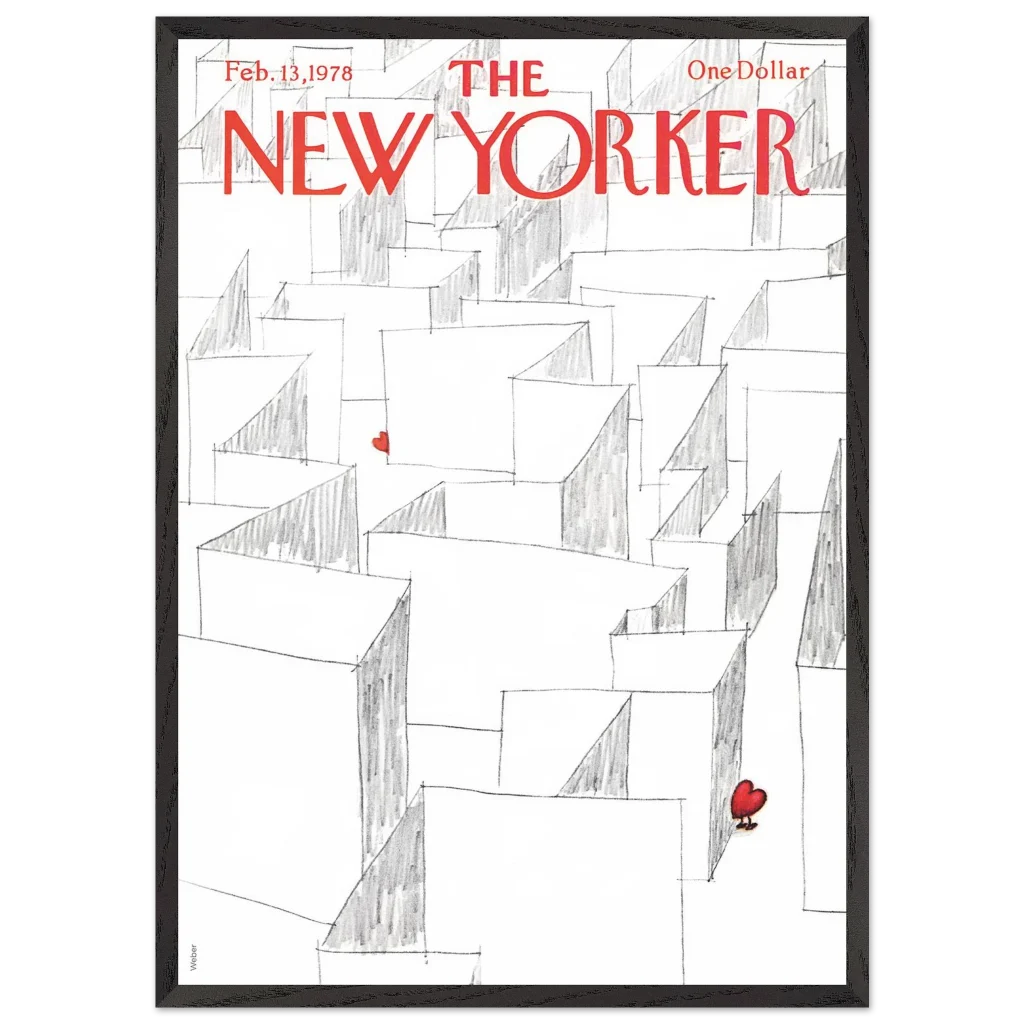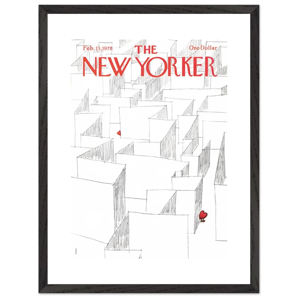 Valentine’s Maze Heart Poster – Playful New Yorker Art Print with Premium Wooden Frame & Matte Paper – Find Your Love Story