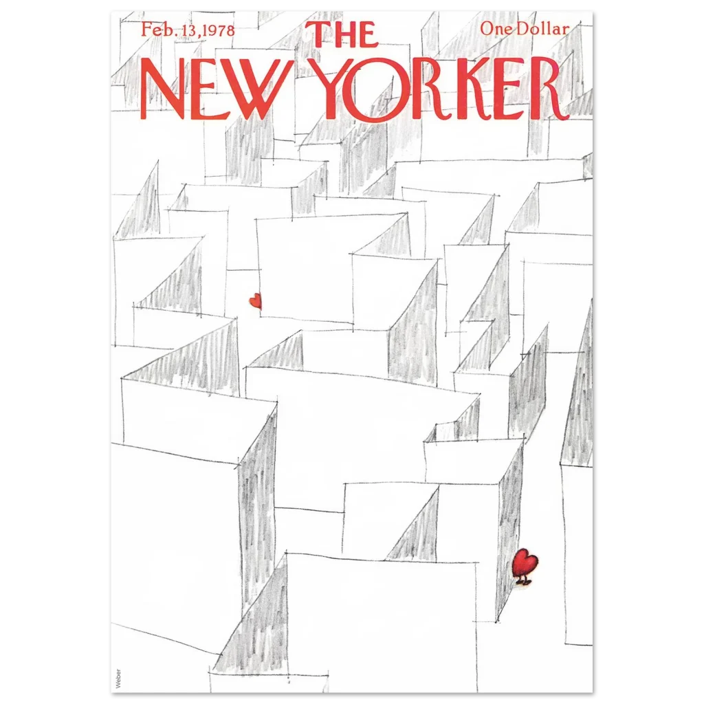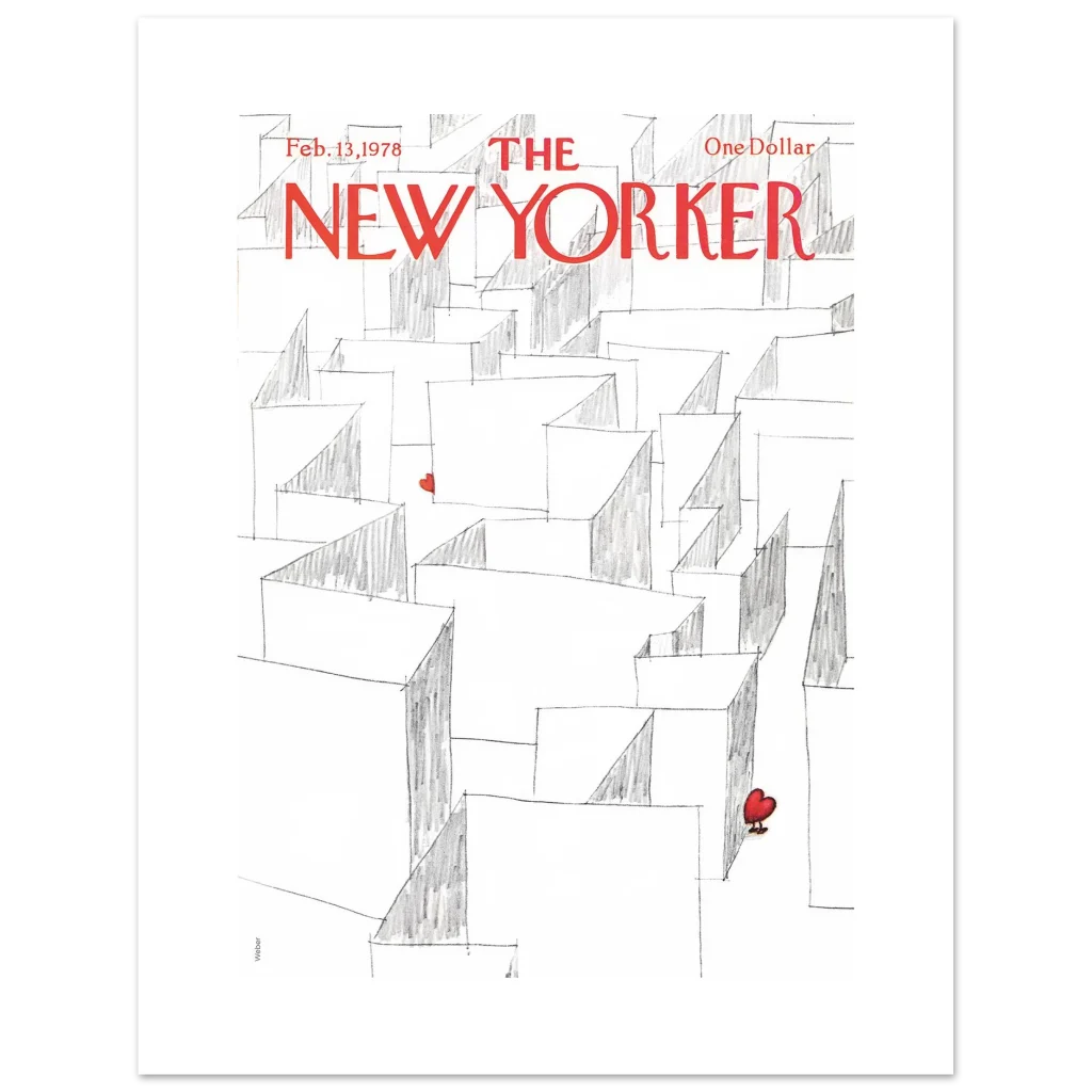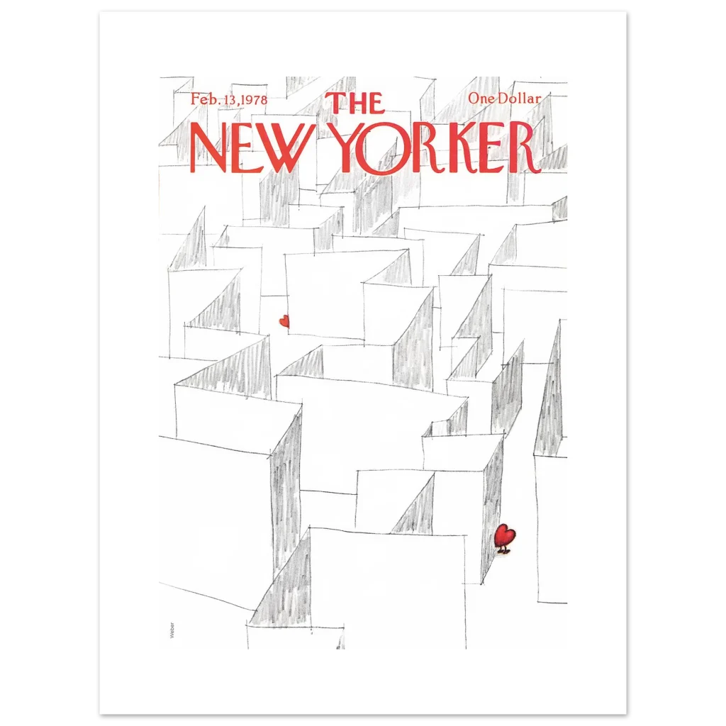 Valentine’s Maze Hearts Premium Matte Paper Poster – New Yorker Cover Print