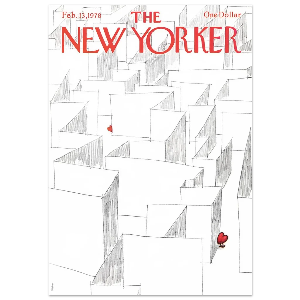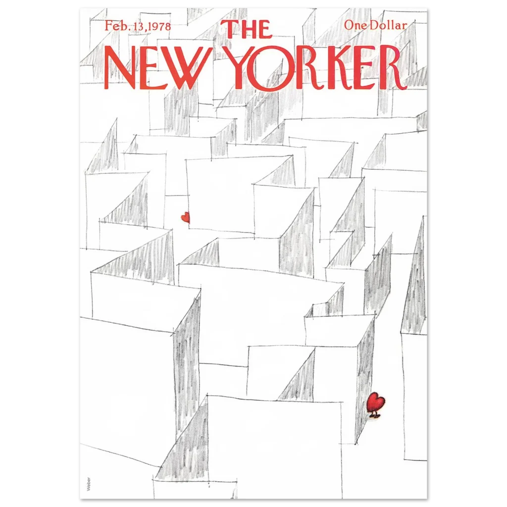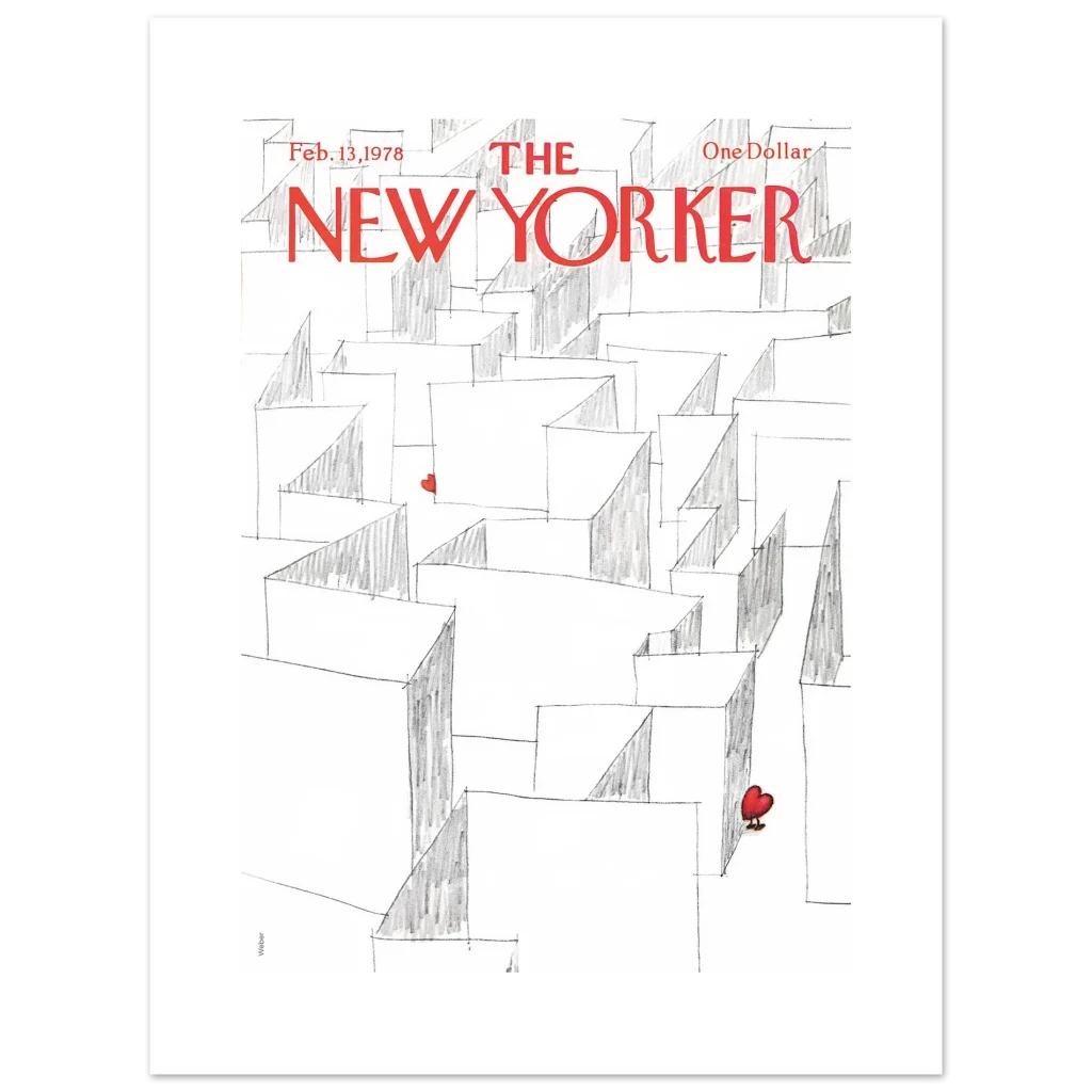Valentine’s Maze Hearts Premium Matte Paper Poster – New Yorker Cover Print