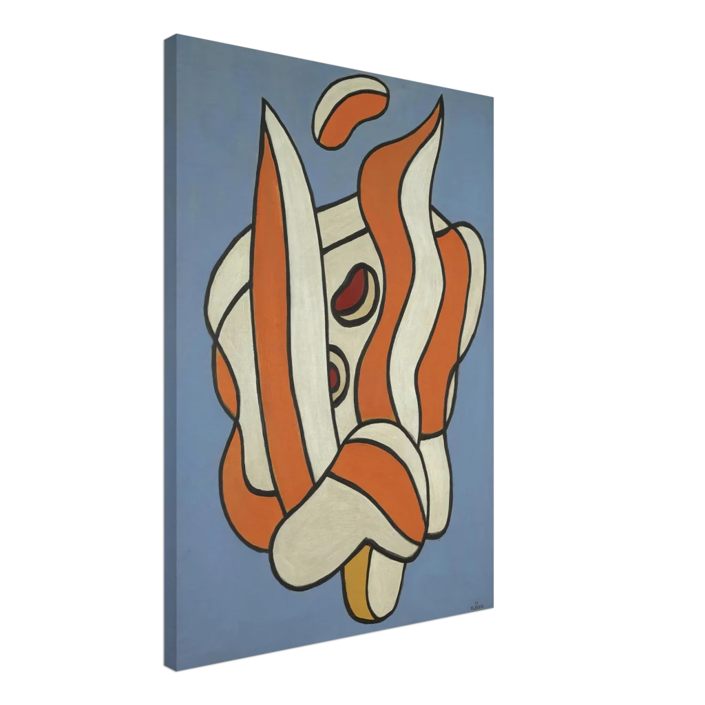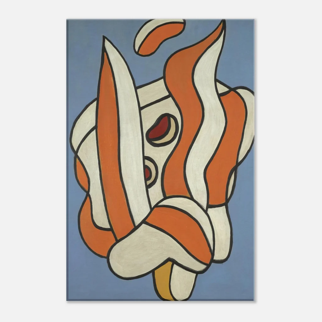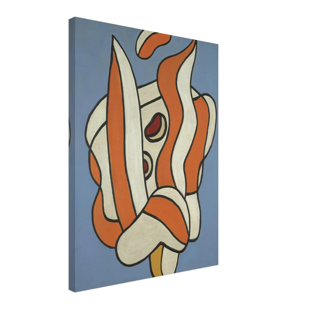 Infuse your space with a burst of dynamic energy and sophisticated modern art. This captivating canvas print features an interplay of bold orange and creamy white abstract forms, outlined in stark black against a serene, muted blue background. It’s a striking piece designed to spark conversation and add a contemporary edge to any room, offering both enhanced texture and timeless beauty.