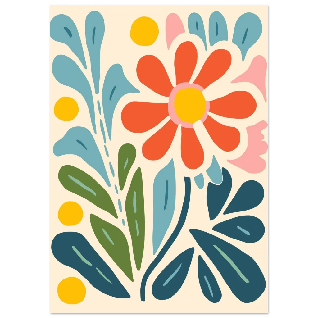 Vibrant Abstract Floral Poster – Mid-Century Modern Art Print in Various Sizes