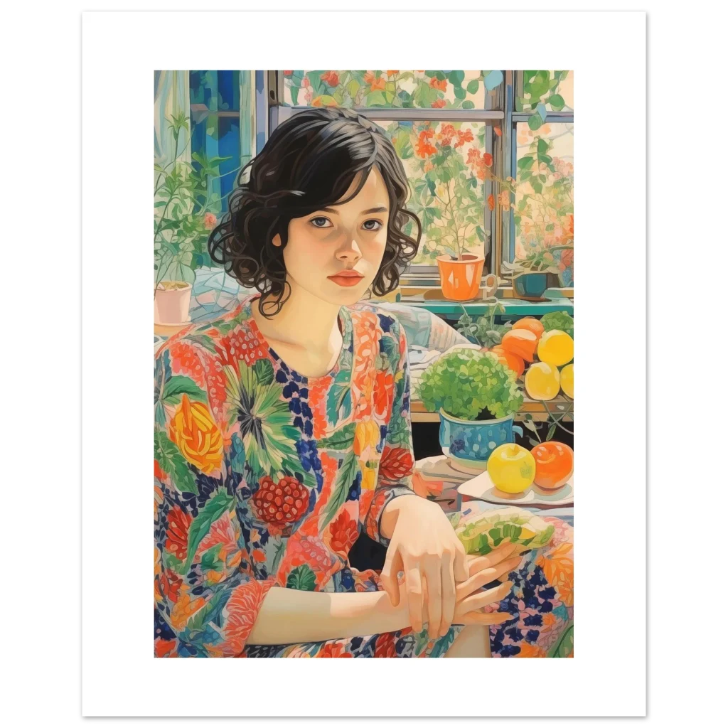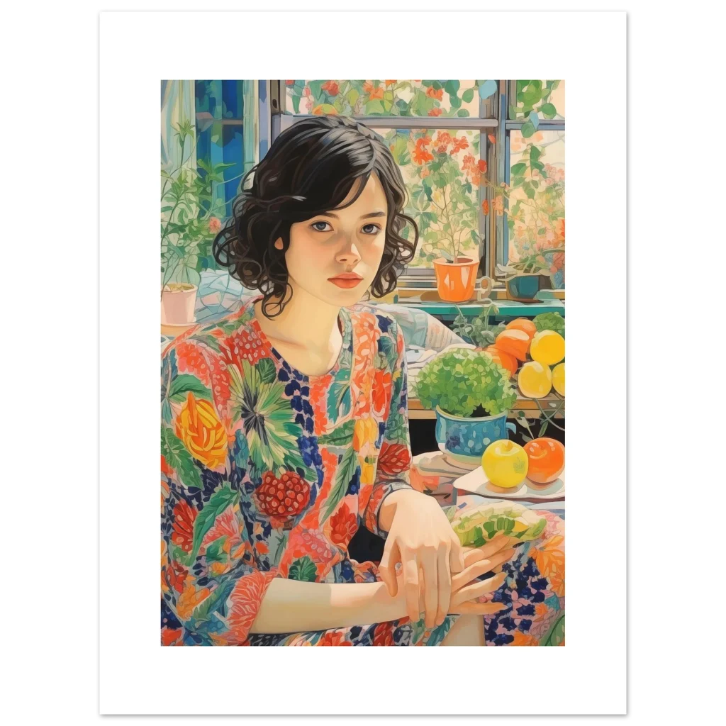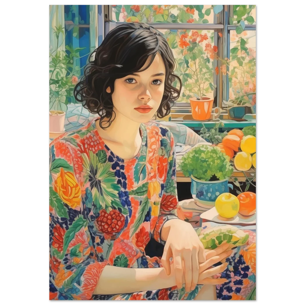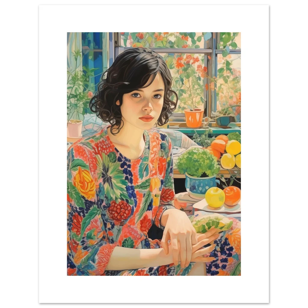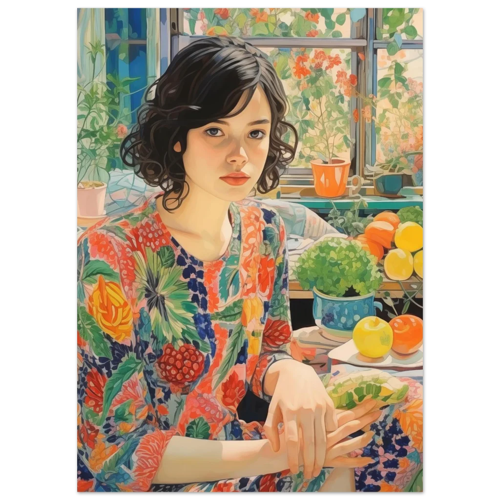 Bring a touch of vibrant, artistic flair into your living space with this captivating botanical portrait poster. Inspired by the lush beauty of nature and rich, lively colors, this piece exudes a whimsical charm that brightens any room. Perfect for art lovers seeking to infuse their home with joy and a unique sense of style, this poster captures a moment of serene contemplation amidst a riot of floral patterns.