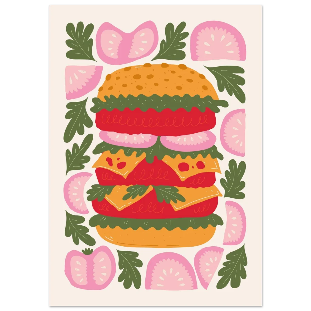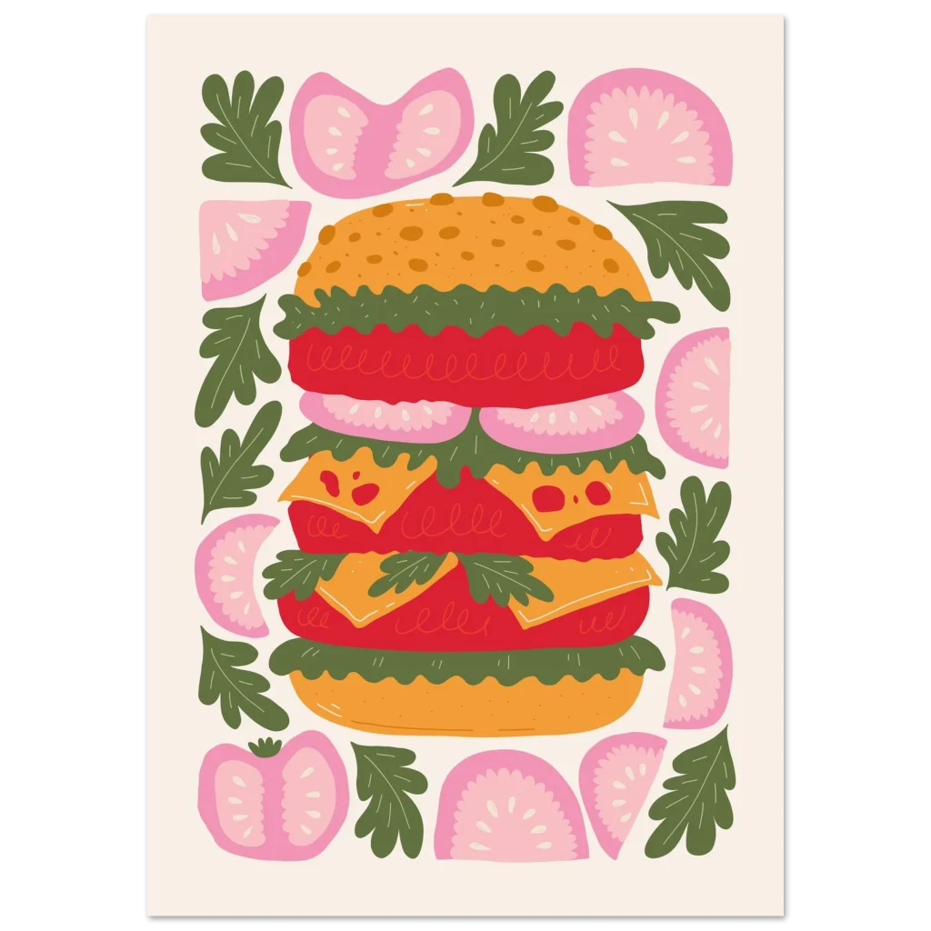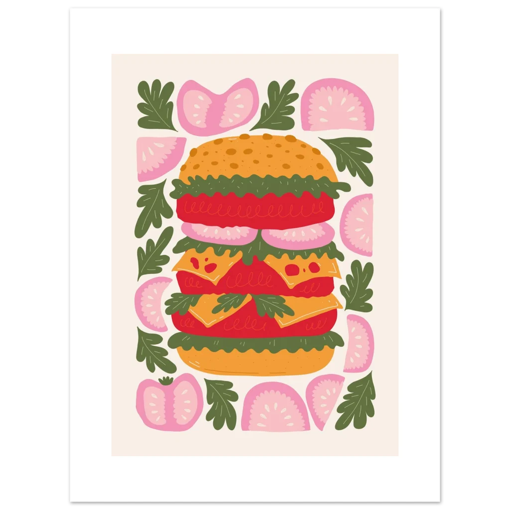 Select the ideal size to complement your decor and infuse your surroundings with this fun, contemporary design. Elevate your walls with a touch of culinary creativity – choose your dimensions and order your pop art burger poster today!