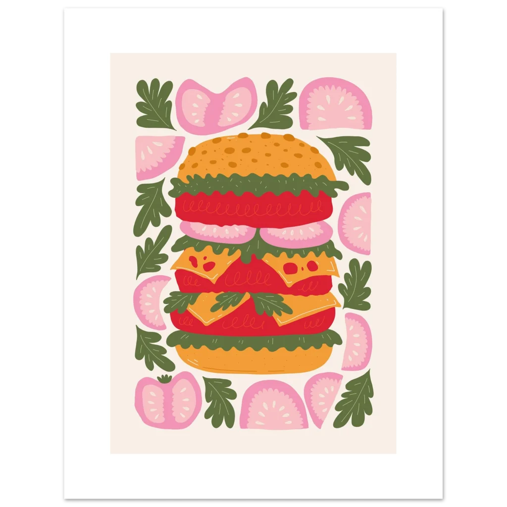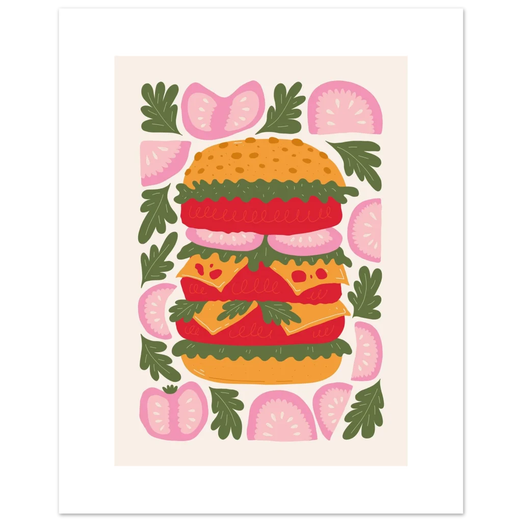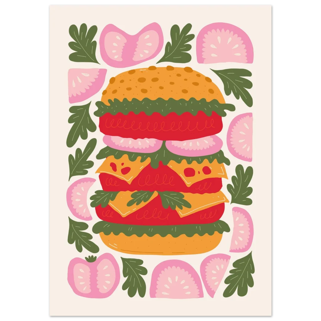 Select the ideal size to complement your decor and infuse your surroundings with this fun, contemporary design. Elevate your walls with a touch of culinary creativity – choose your dimensions and order your pop art burger poster today!