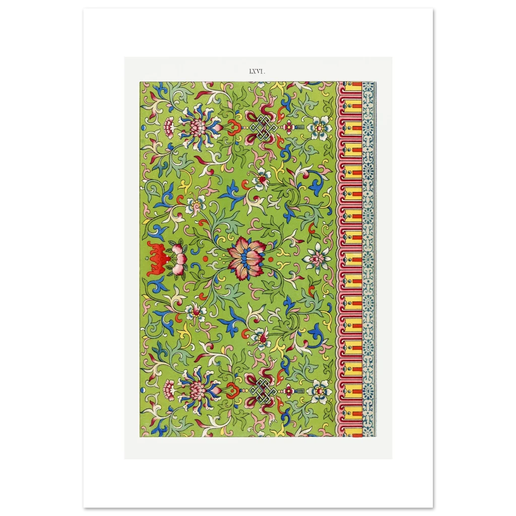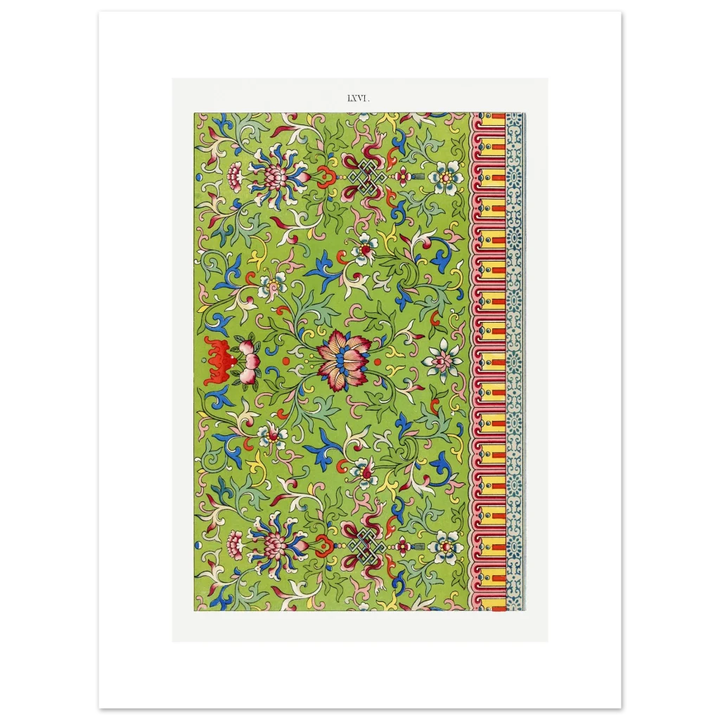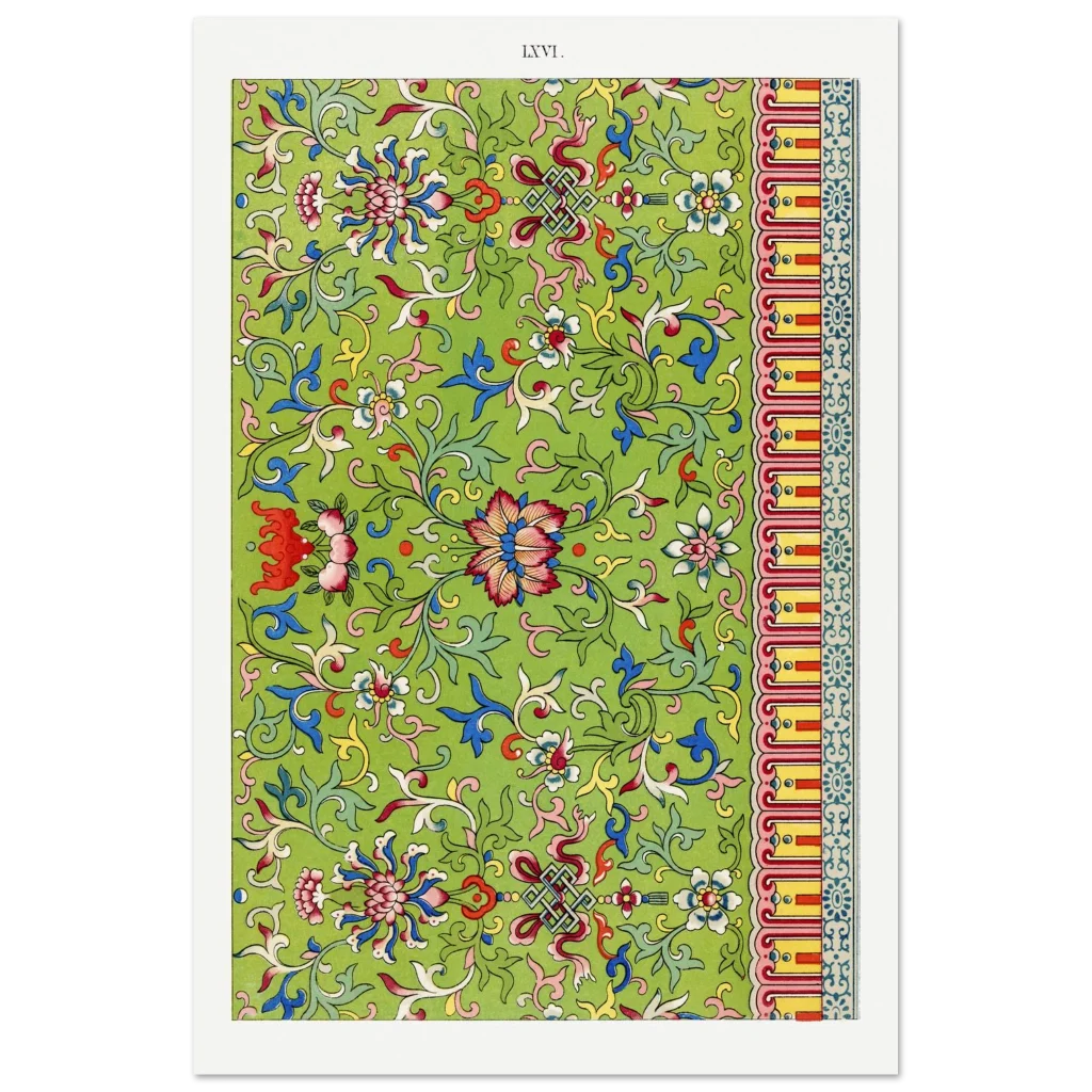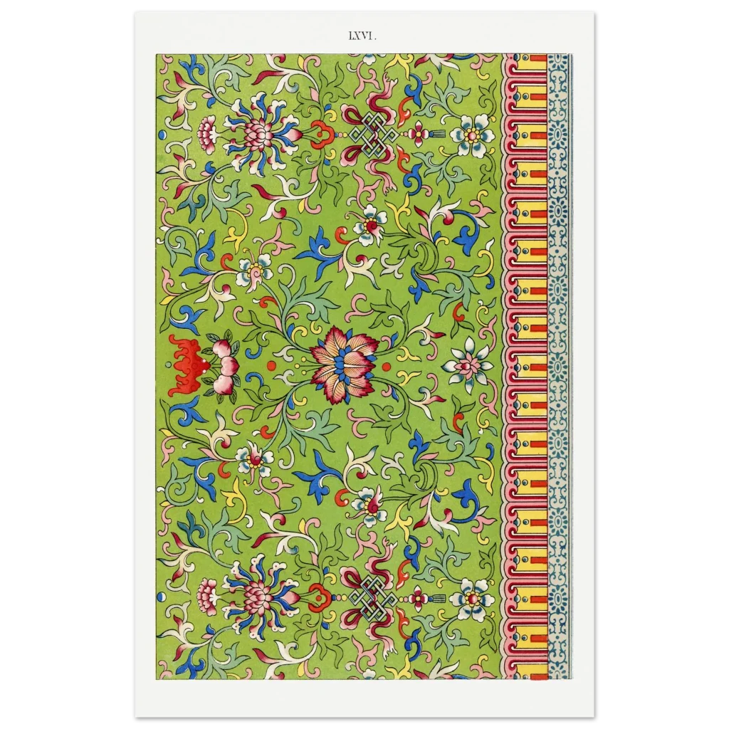 Vibrant Chinese Floral Tapestry Art Print – Premium Matte Paper Poster with Intricate Folk Design