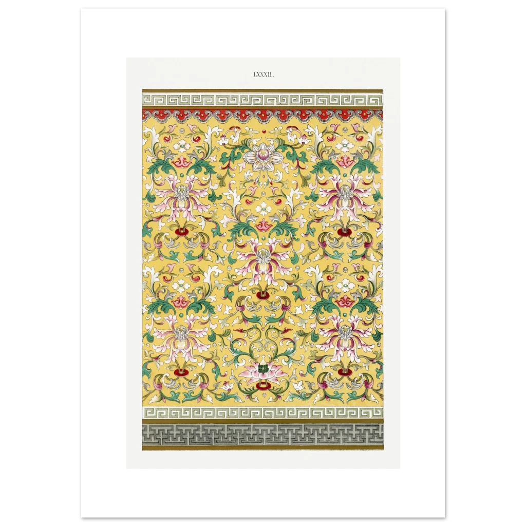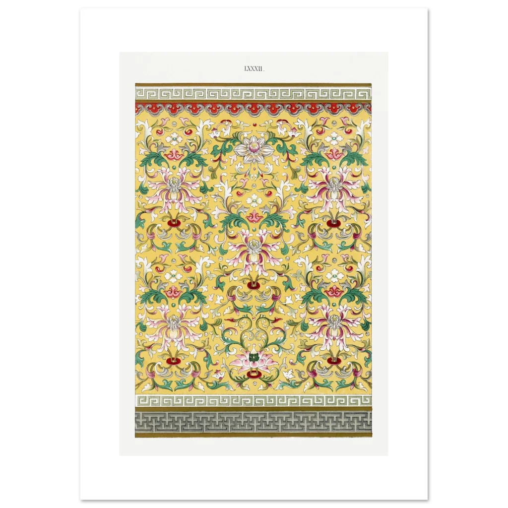 Vibrant Chinoiserie Floral & Geometric Pattern Poster – Premium Matte Paper Print in Multiple Sizes