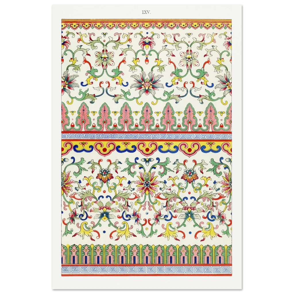Vibrant Chinoiserie Floral & Pattern Art Print – Premium Matte Paper Poster in Multiple Sizes