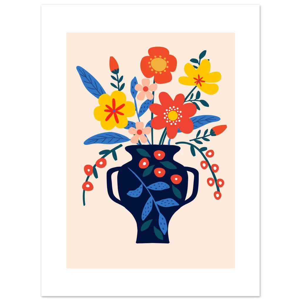 Vibrant Folk Floral Bouquet Semi-Glossy Paper Poster – Choose Your Size