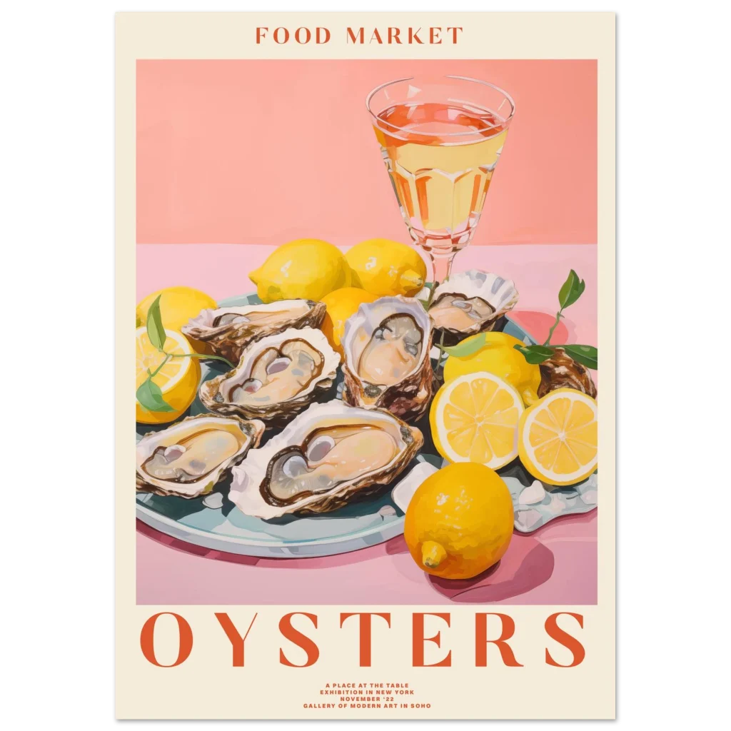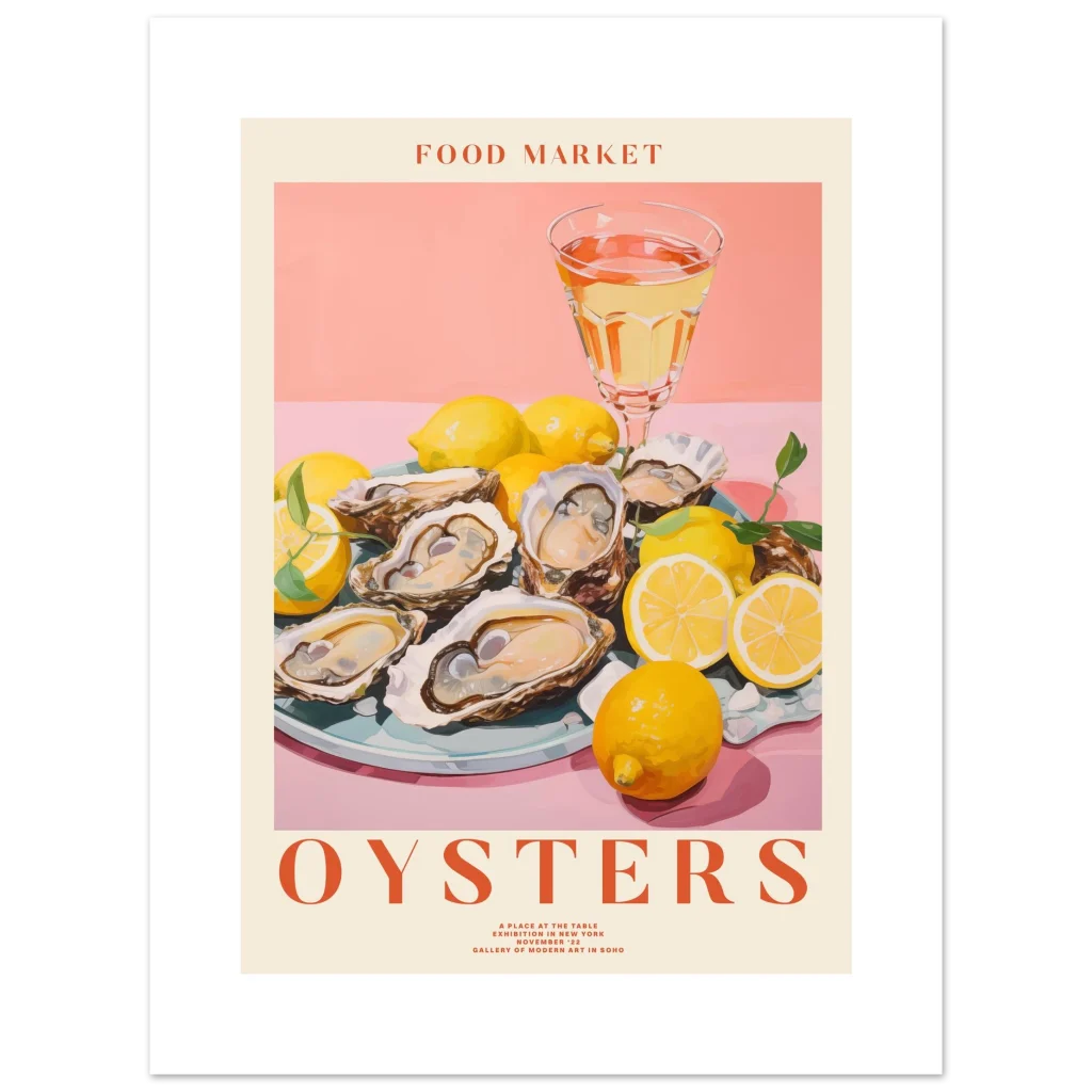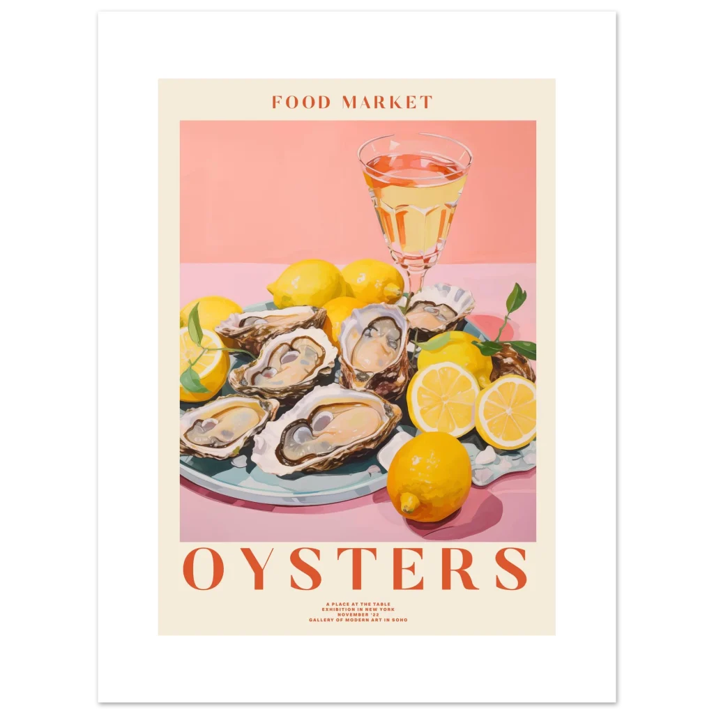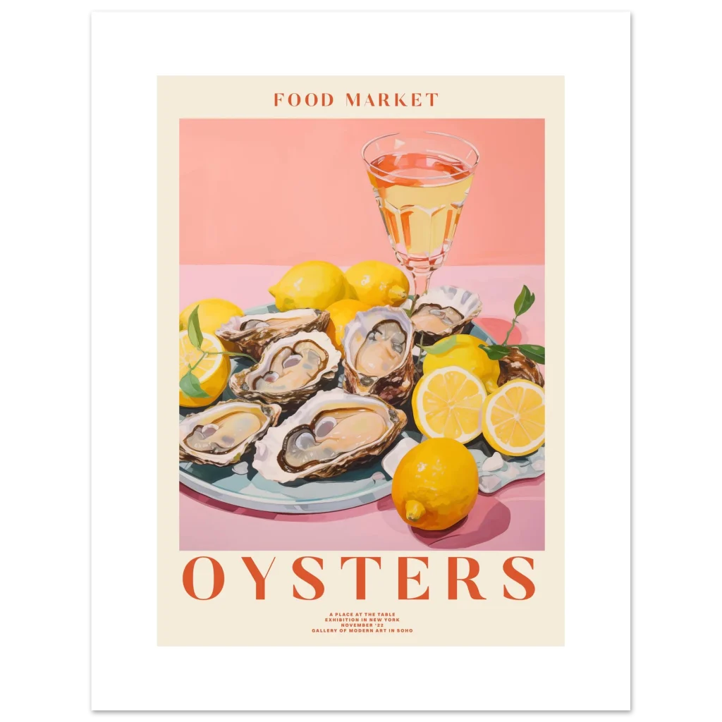Select the ideal size to complement your home and bring this delightful scene to life. Order your “Food Market Oysters” poster today and infuse your surroundings with sophisticated taste and a touch of sun-drenched elegance!