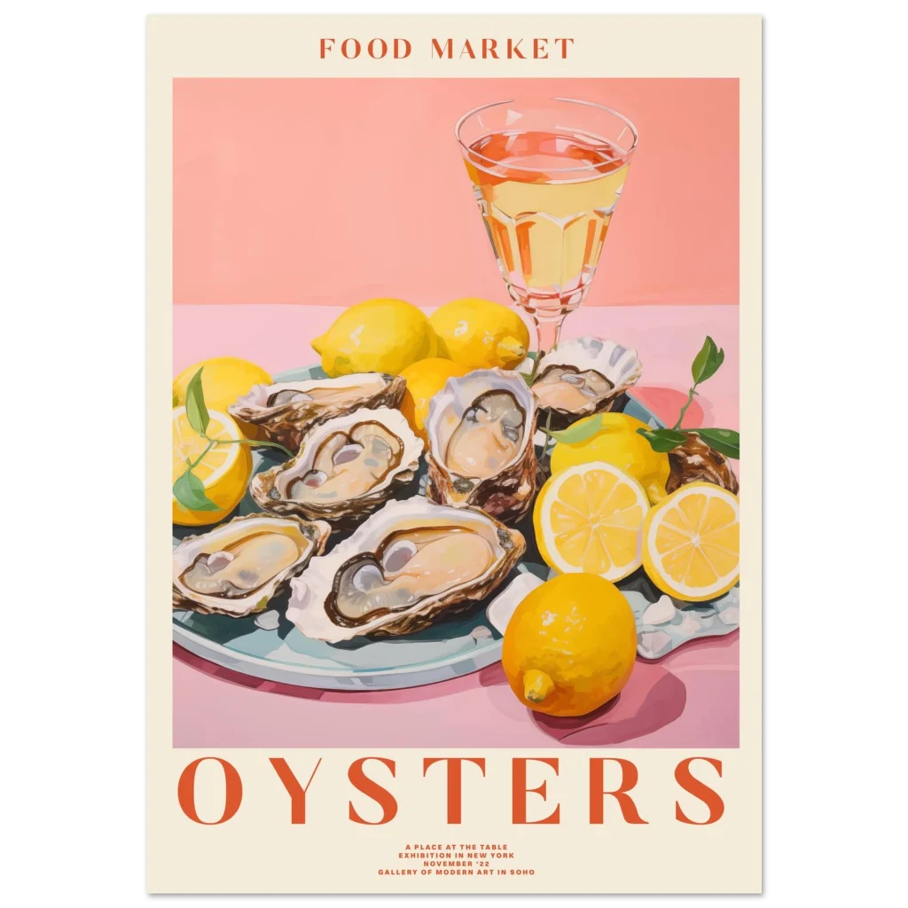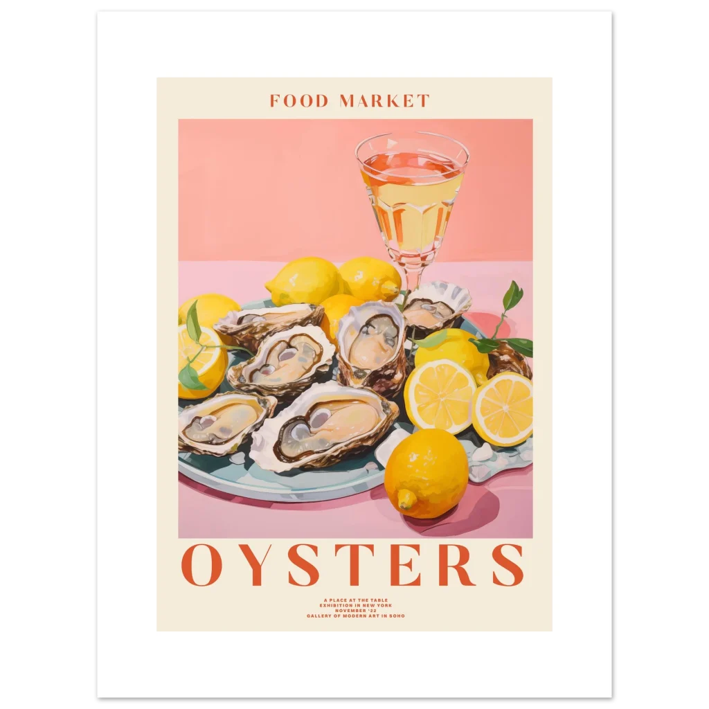 Vibrant “Food Market Oysters” Print: Classic Semi-Glossy Paper Poster for a Touch of Coastal Charm
