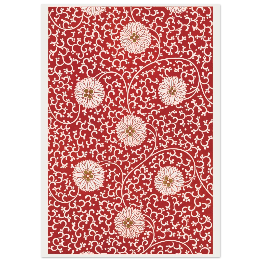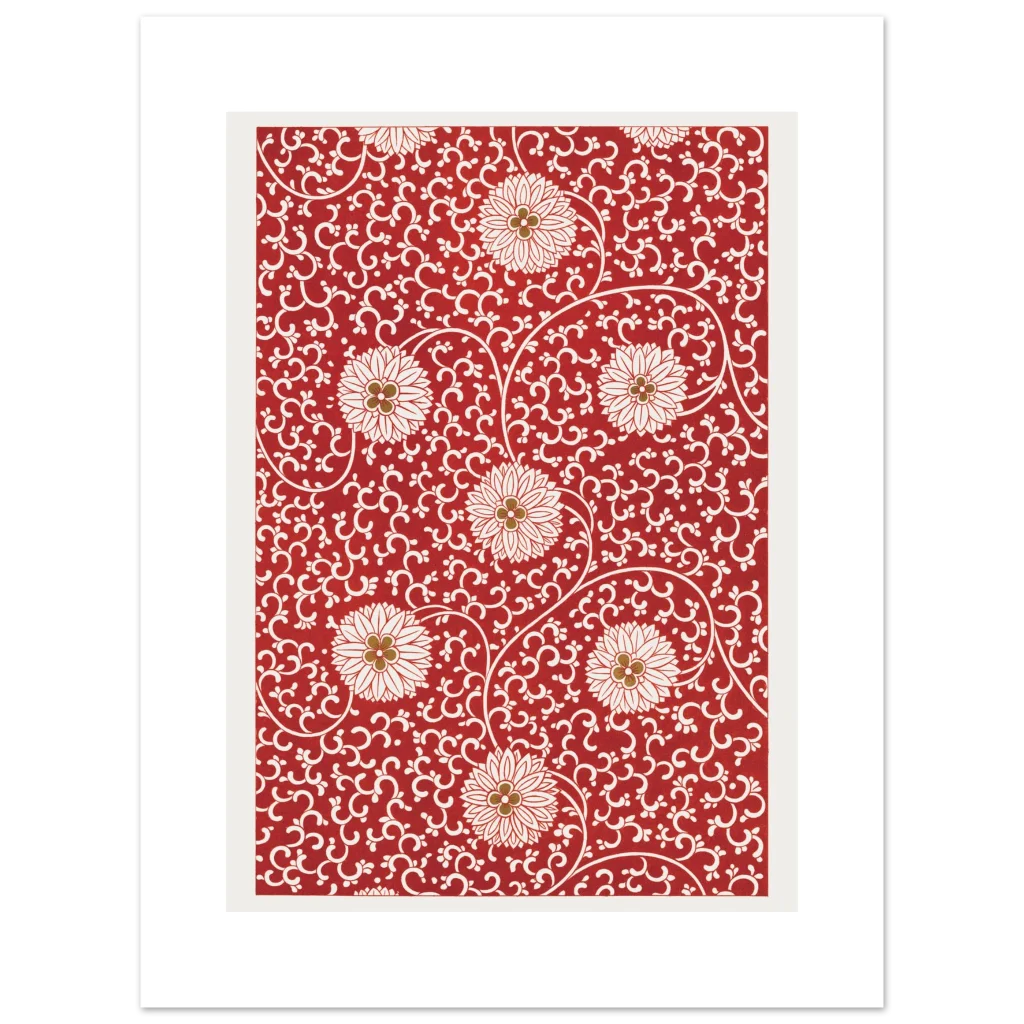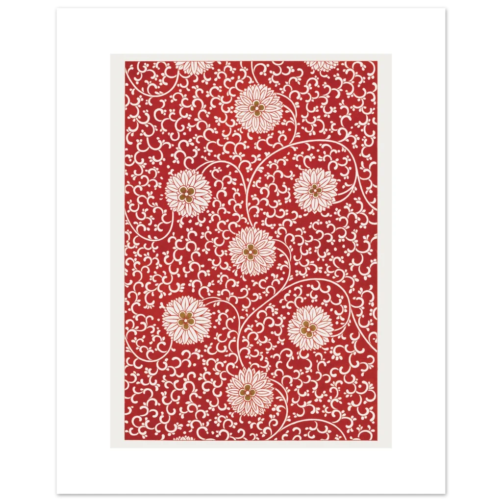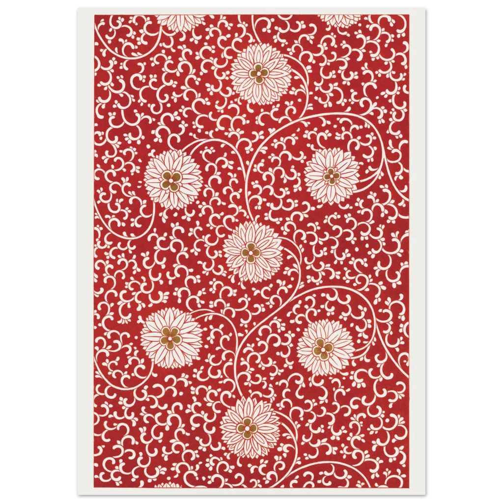 Bring the timeless elegance of Japanese artistry into your home with this vibrant floral pattern poster. Featuring a rich, ruby-red background adorned with delicate white and gold chrysanthemums and intricate swirling vines, this piece captures a mood of refined beauty and serene complexity. It’s the perfect way to add a sophisticated pop of color and cultural flair to any room, transforming your space into a sanctuary of classic design.