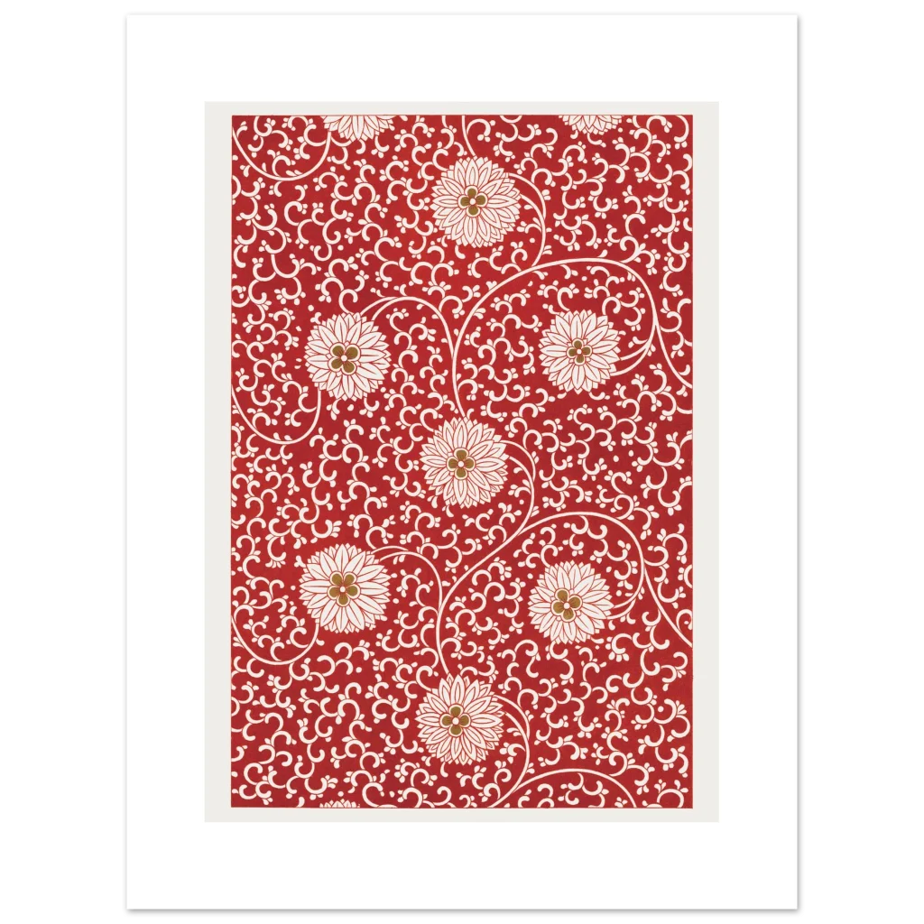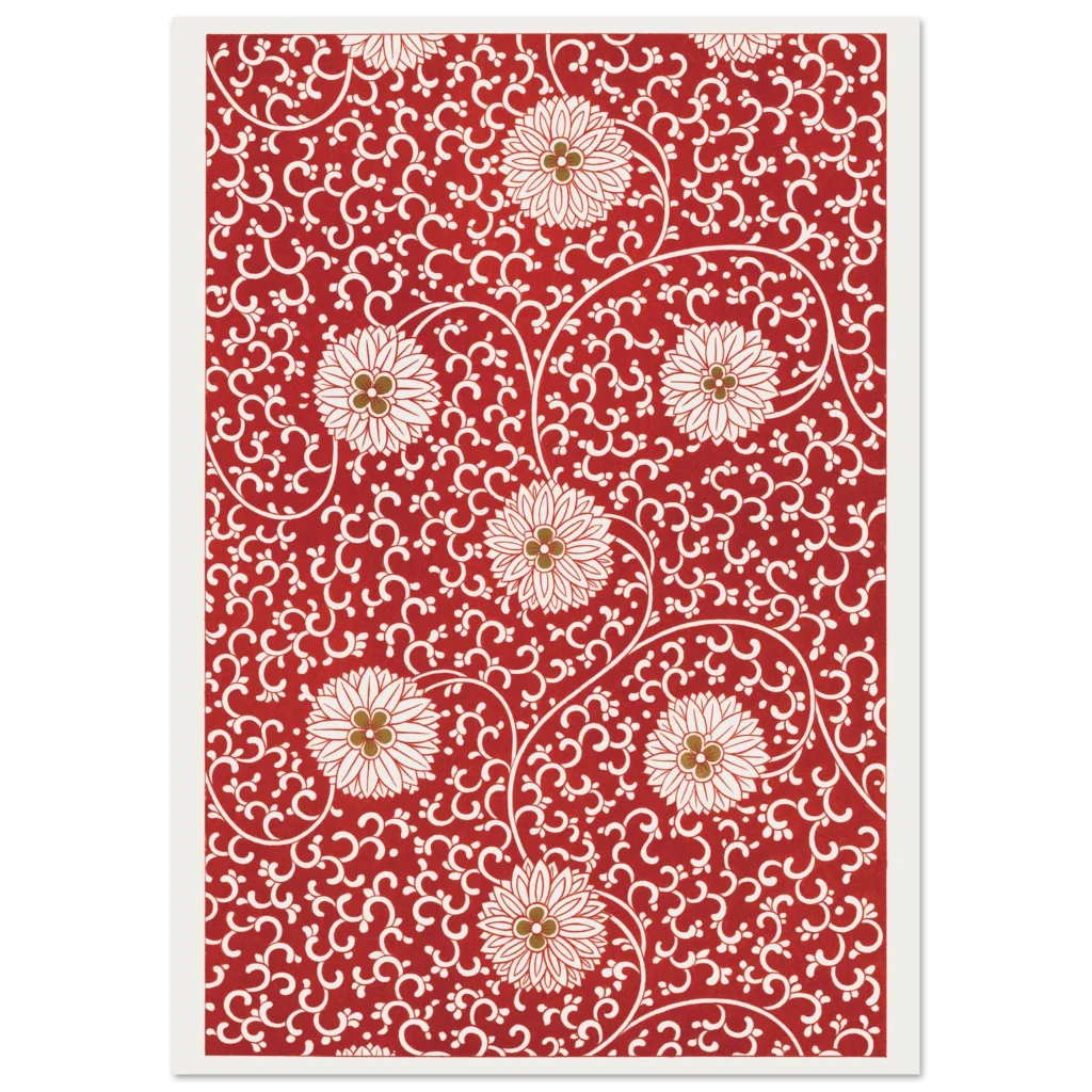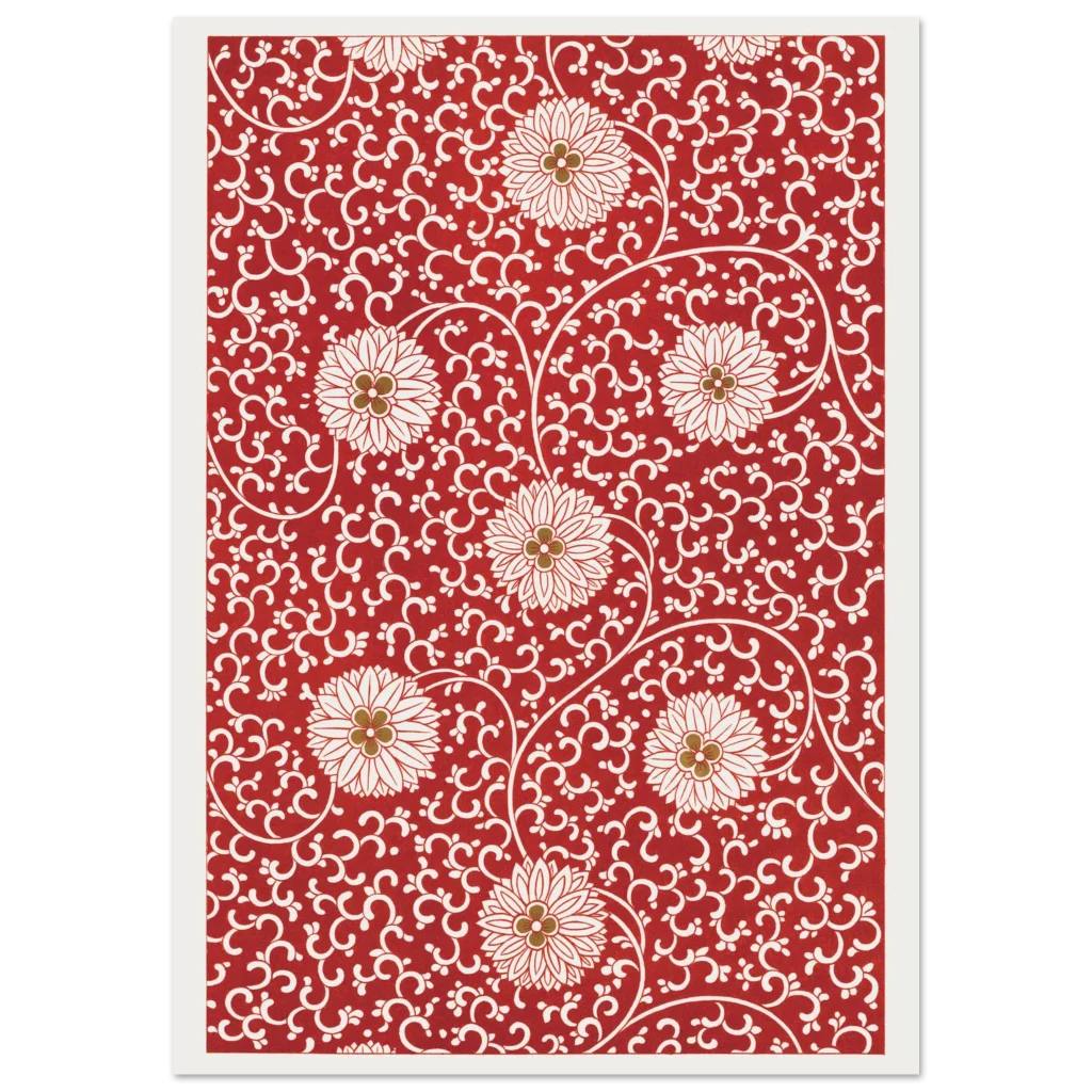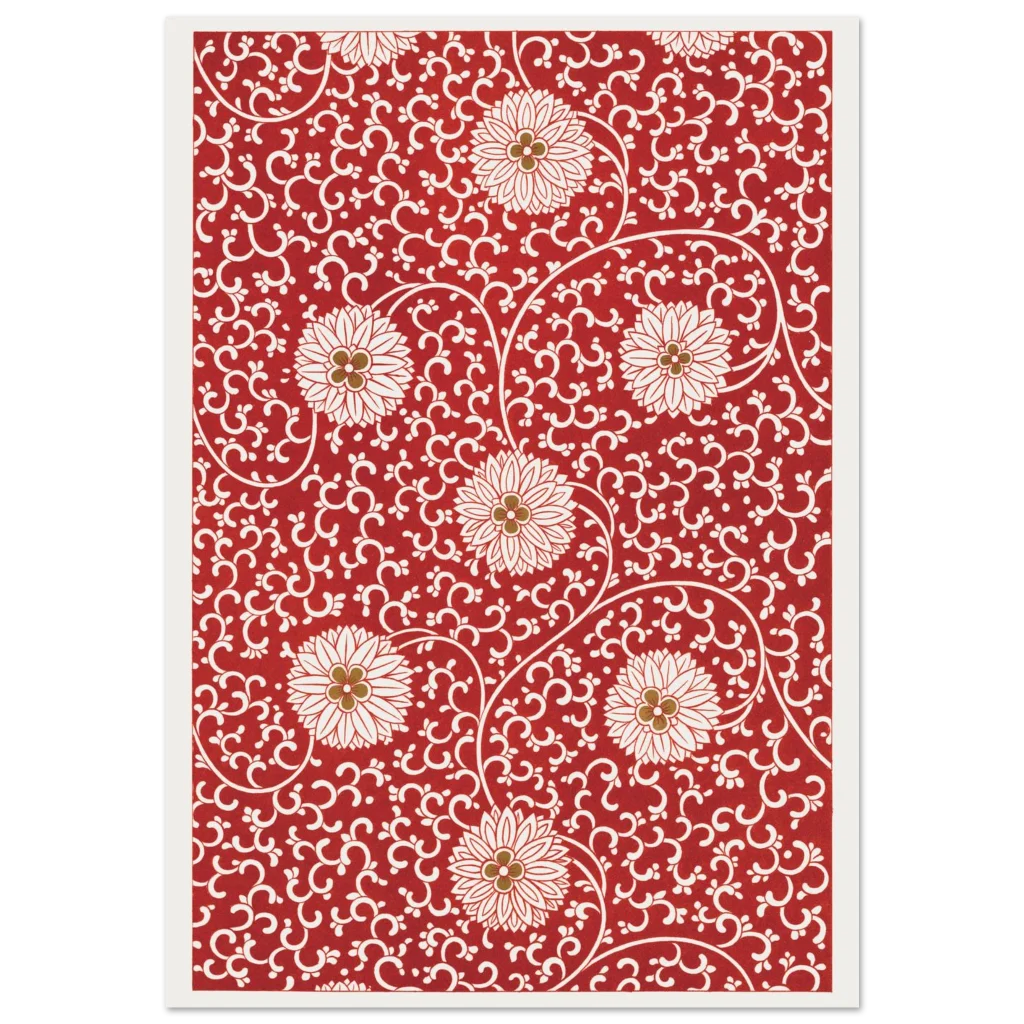 Bring the timeless elegance of Japanese artistry into your home with this vibrant floral pattern poster. Featuring a rich, ruby-red background adorned with delicate white and gold chrysanthemums and intricate swirling vines, this piece captures a mood of refined beauty and serene complexity. It’s the perfect way to add a sophisticated pop of color and cultural flair to any room, transforming your space into a sanctuary of classic design.