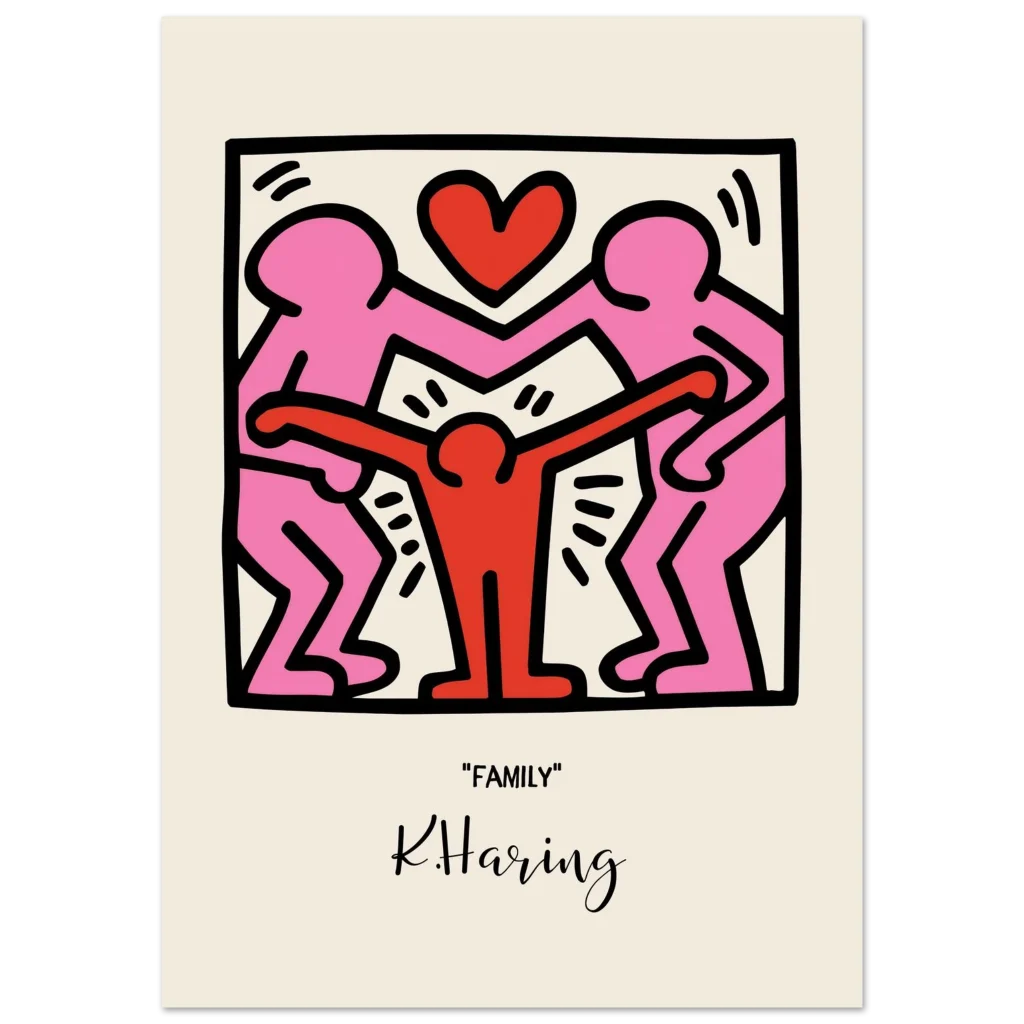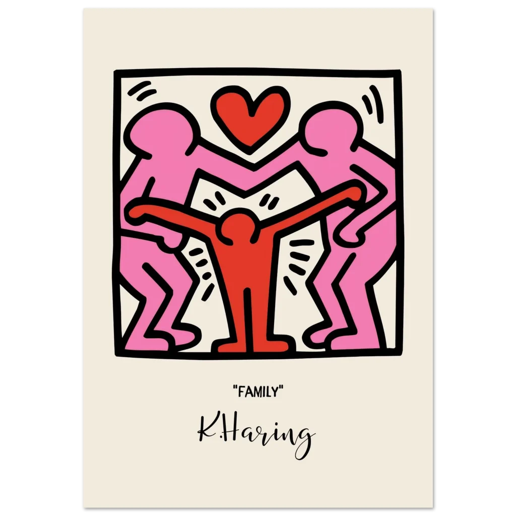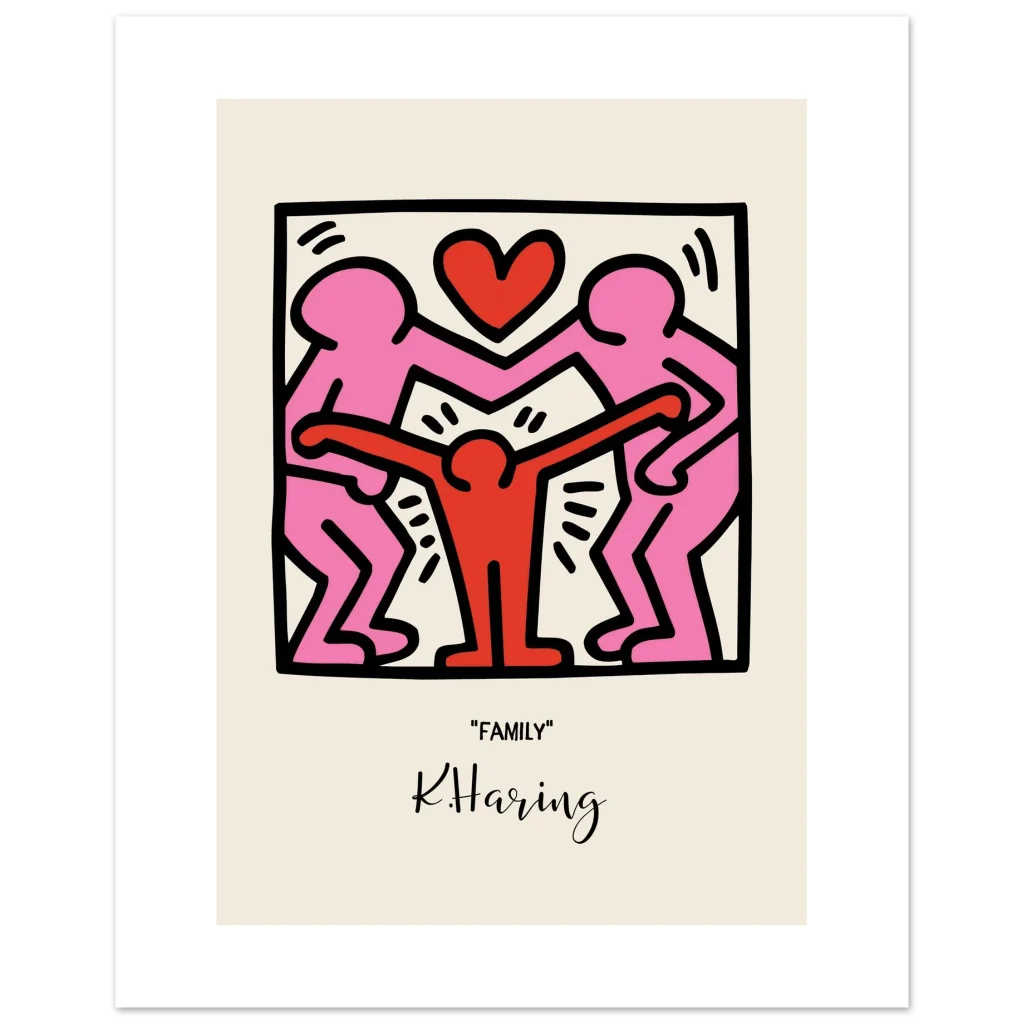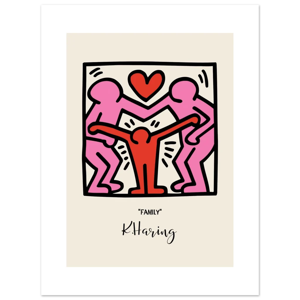 Celebrate the universal bond of family with this vibrant art print, deeply inspired by the iconic, pop-art style of Keith Haring. Featuring bold lines, dynamic figures, and a heartwarming red hue that symbolizes love and connection, this piece adds a touch of playful sophistication and meaningful sentiment to any space. It’s a perfect focal point for a living room, a charming addition to a child’s bedroom, or a thoughtful gift that speaks volumes.