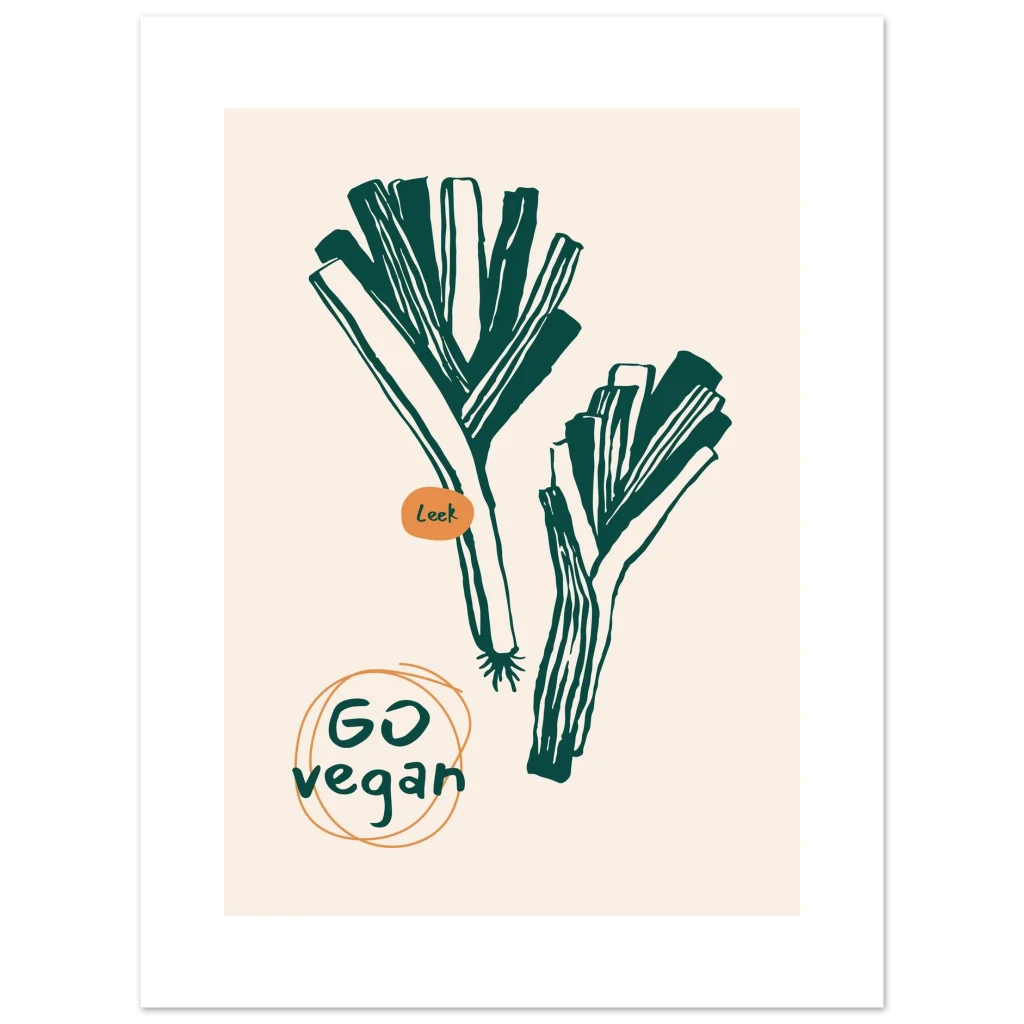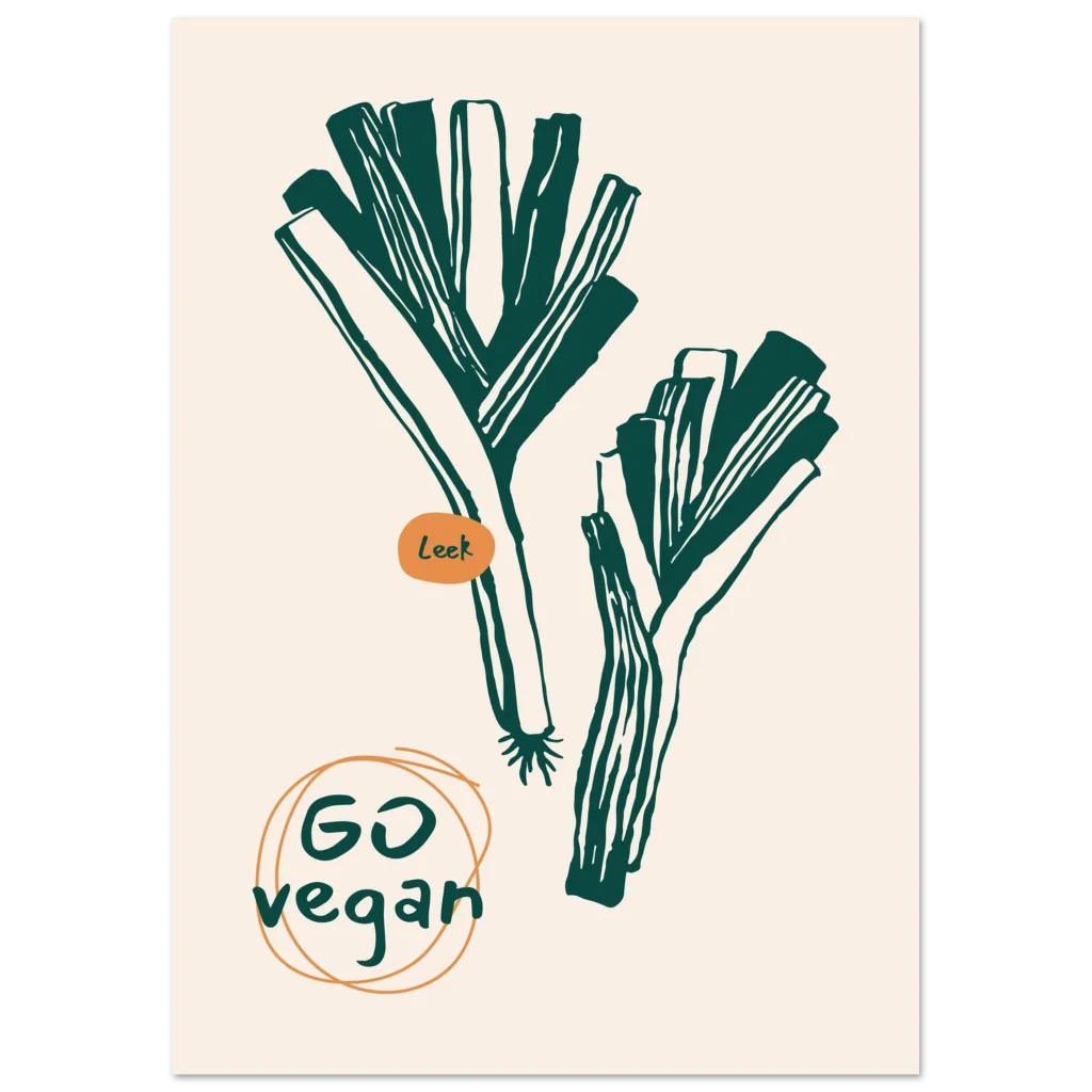 Vibrant Leek “Go Vegan” Kitchen Art Poster – Classic Semi-Glossy Print for Modern Homes