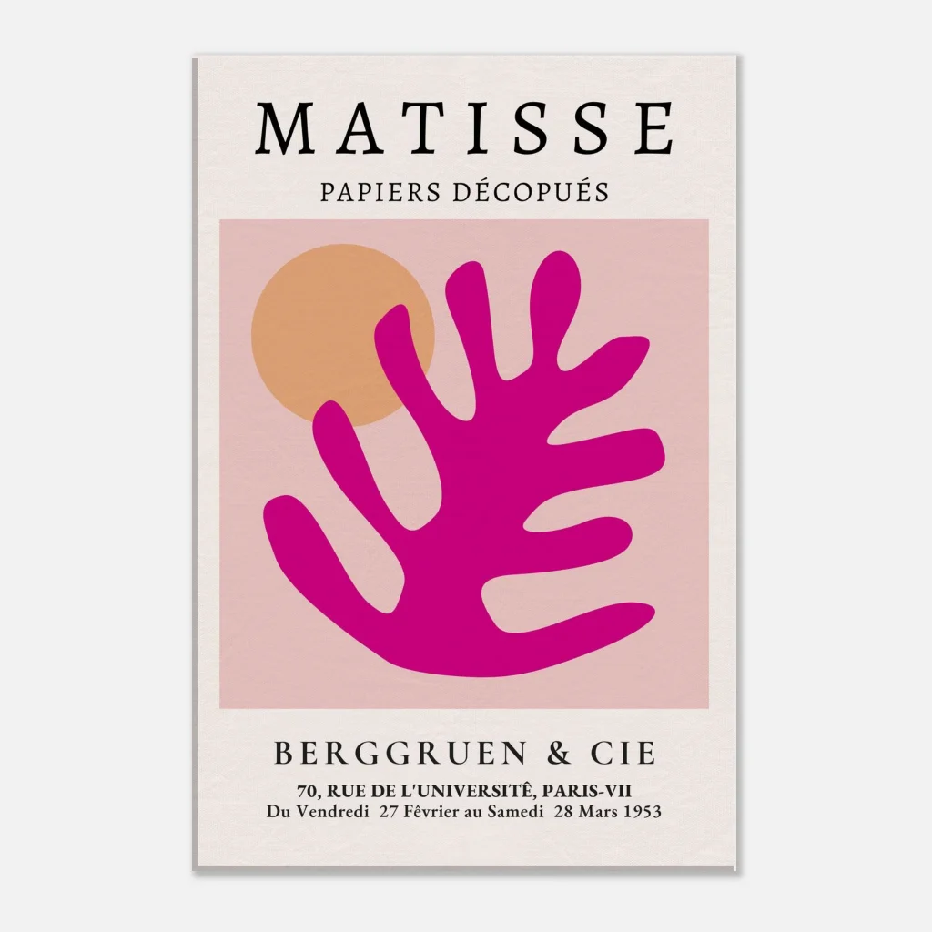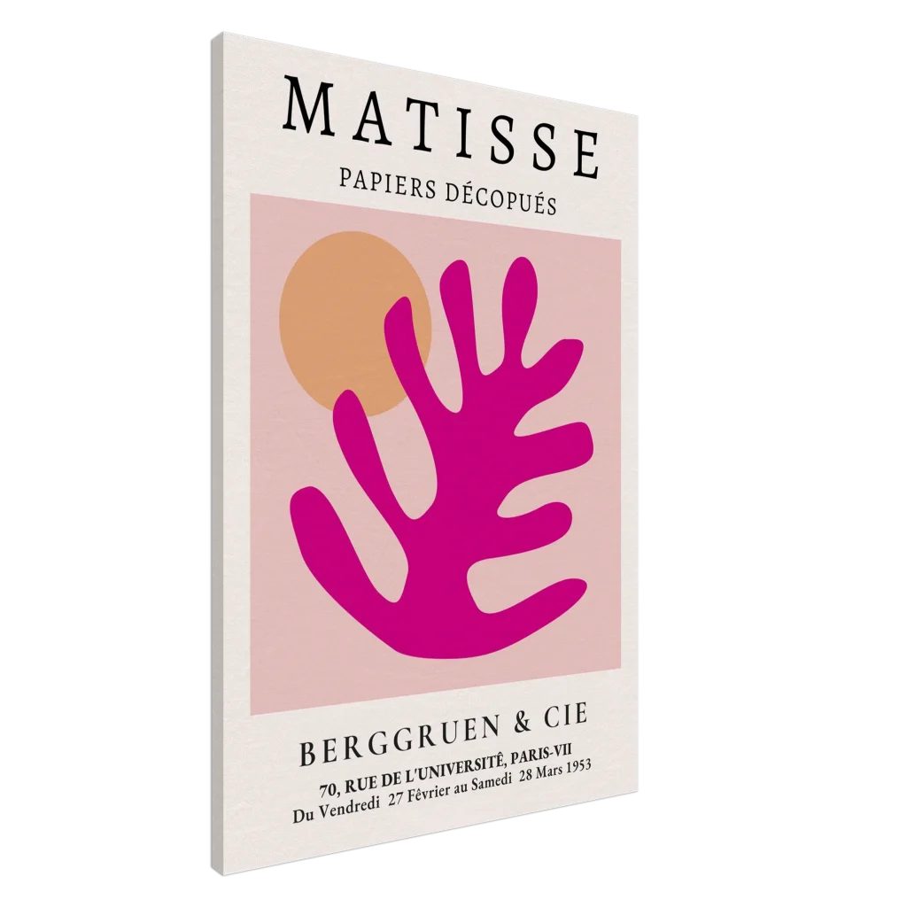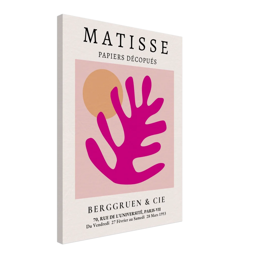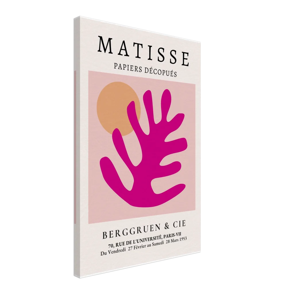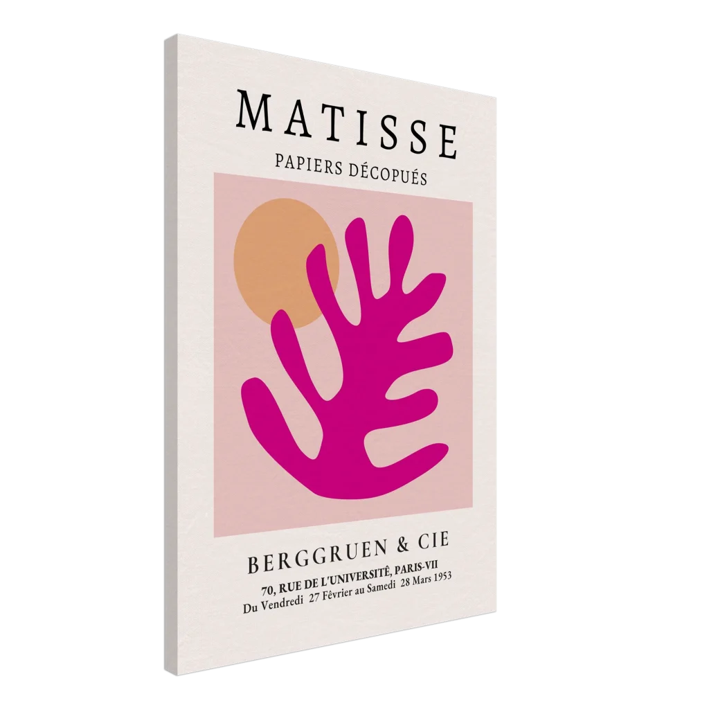 Bring the joyful spirit of Matisse’s iconic cutouts into your home with this vibrant canvas print. The striking combination of bold fuchsia and warm orange against a soft pink backdrop evokes a sense of playful sophistication, perfect for adding a pop of color and artistic flair to any room. Each print captures the tactile beauty of the original paper cutouts, transforming your space into a gallery of modern elegance.
