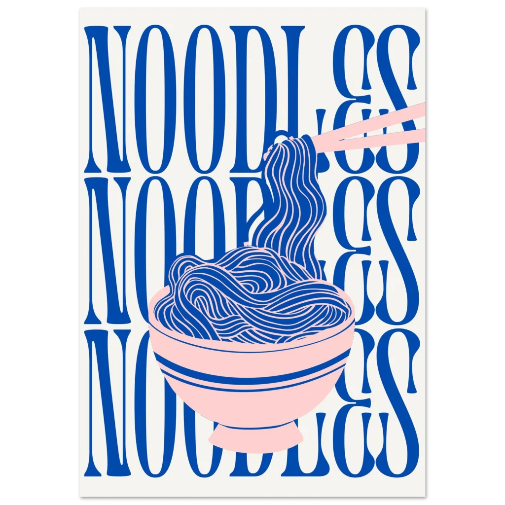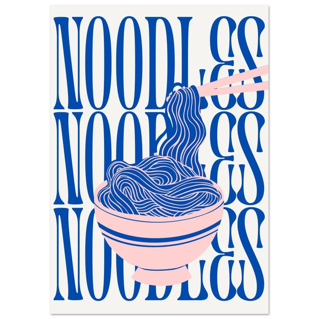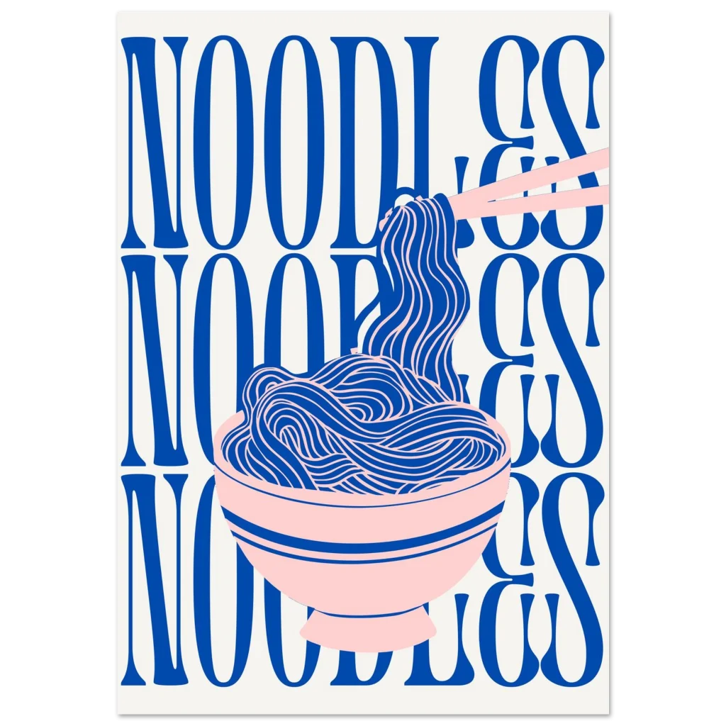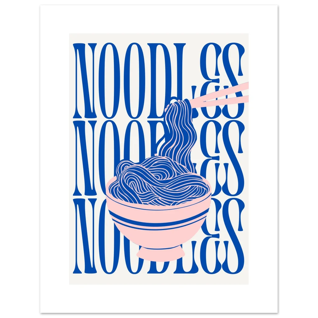 Infuse your space with a playful touch of mid-century modern flair and a dash of culinary delight! This eye-catching ‘Noodles’ art print, featuring a stylish bowl of noodles with chopsticks in a striking blue and pink palette, brings a vibrant, retro vibe to any room. It’s the perfect statement piece for foodies, design enthusiasts, or anyone looking to add a unique, conversation-starting accent to their home or office.