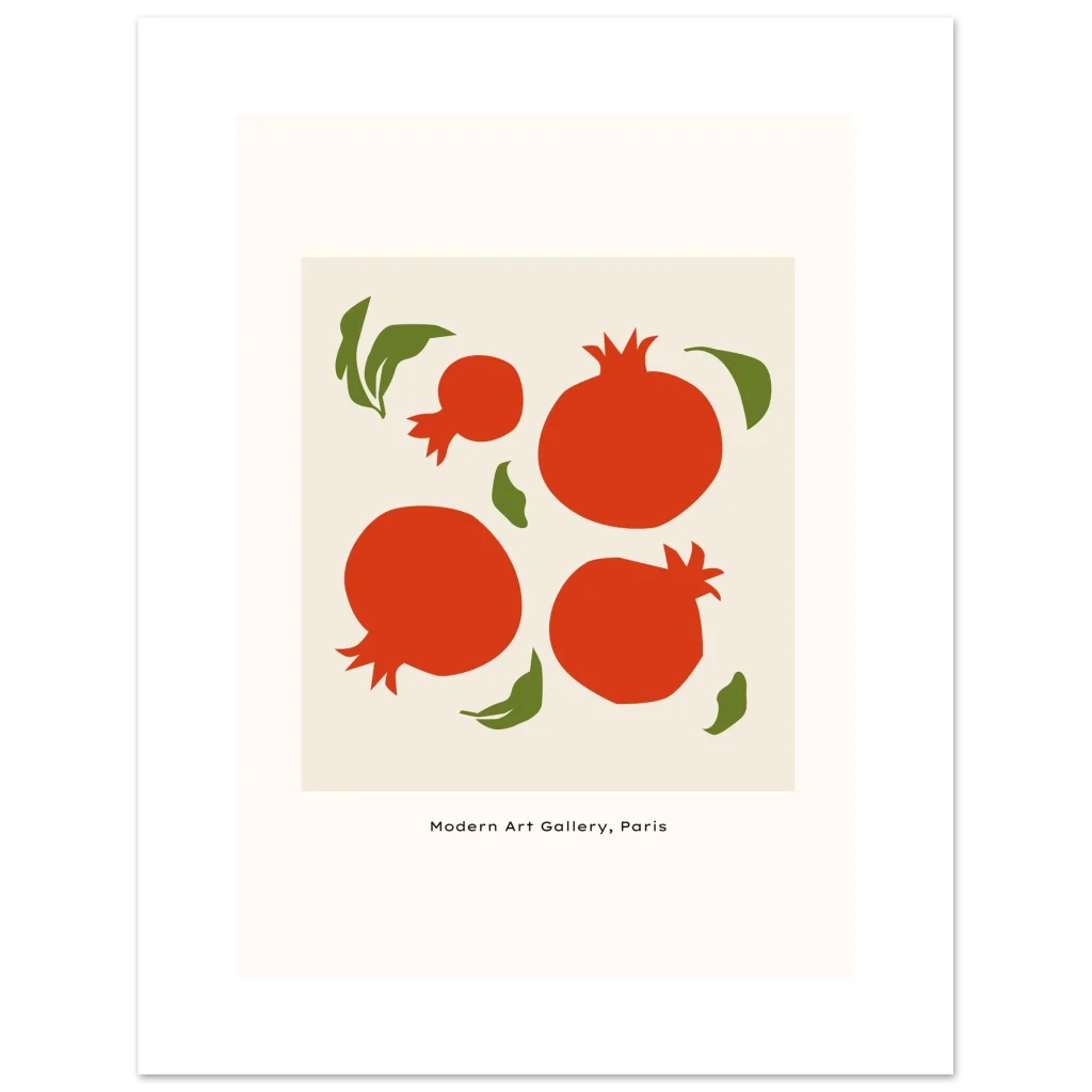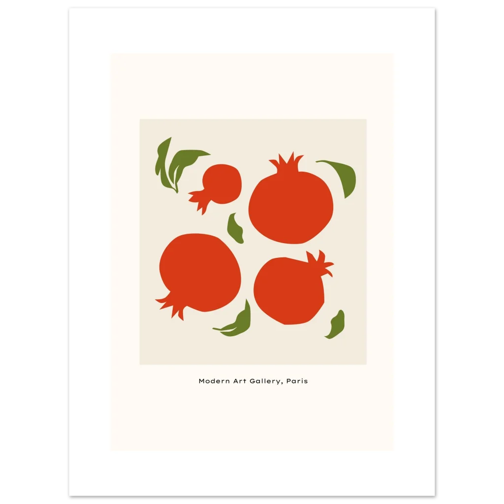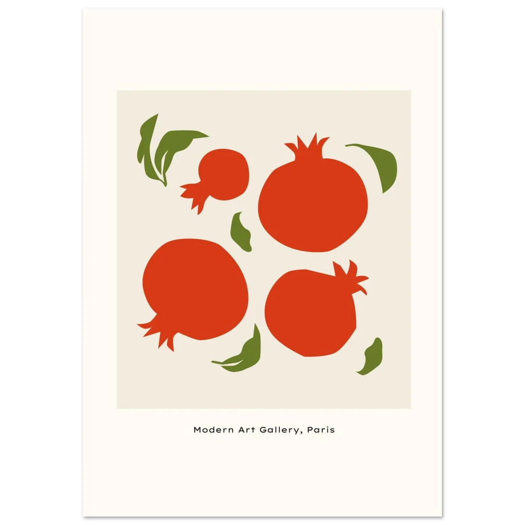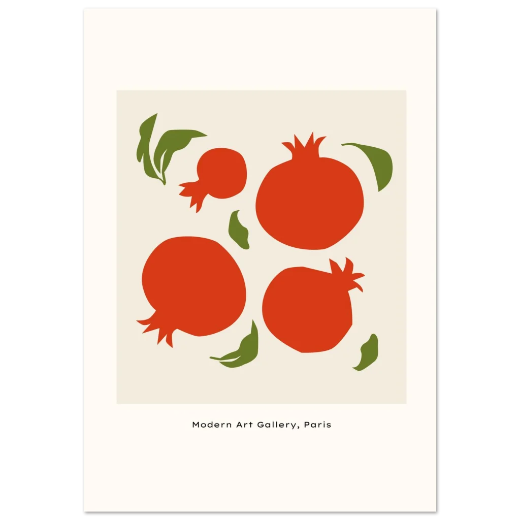 Vibrant Mid-Century Pomegranate Art Print – Classic Semi-Glossy Paper Poster in Multiple Sizes
